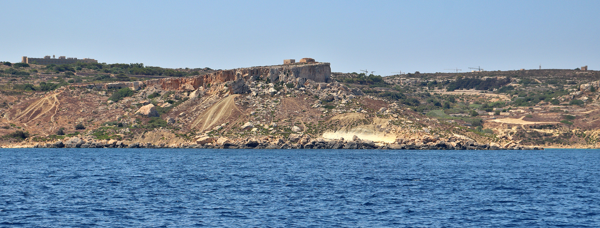 Teraz z oddali widzimy północną część tego półwyspu, na skałach Wieża Għajn Ħadid i kawałek dalej Ras il-Griebeg.