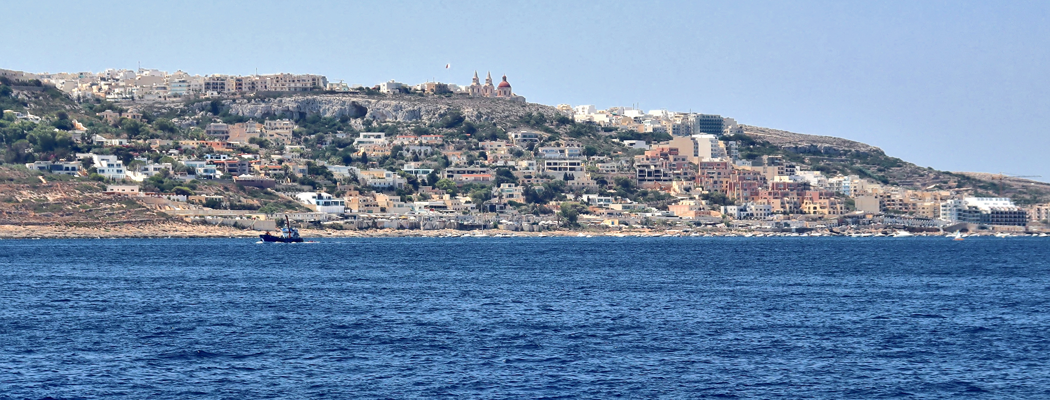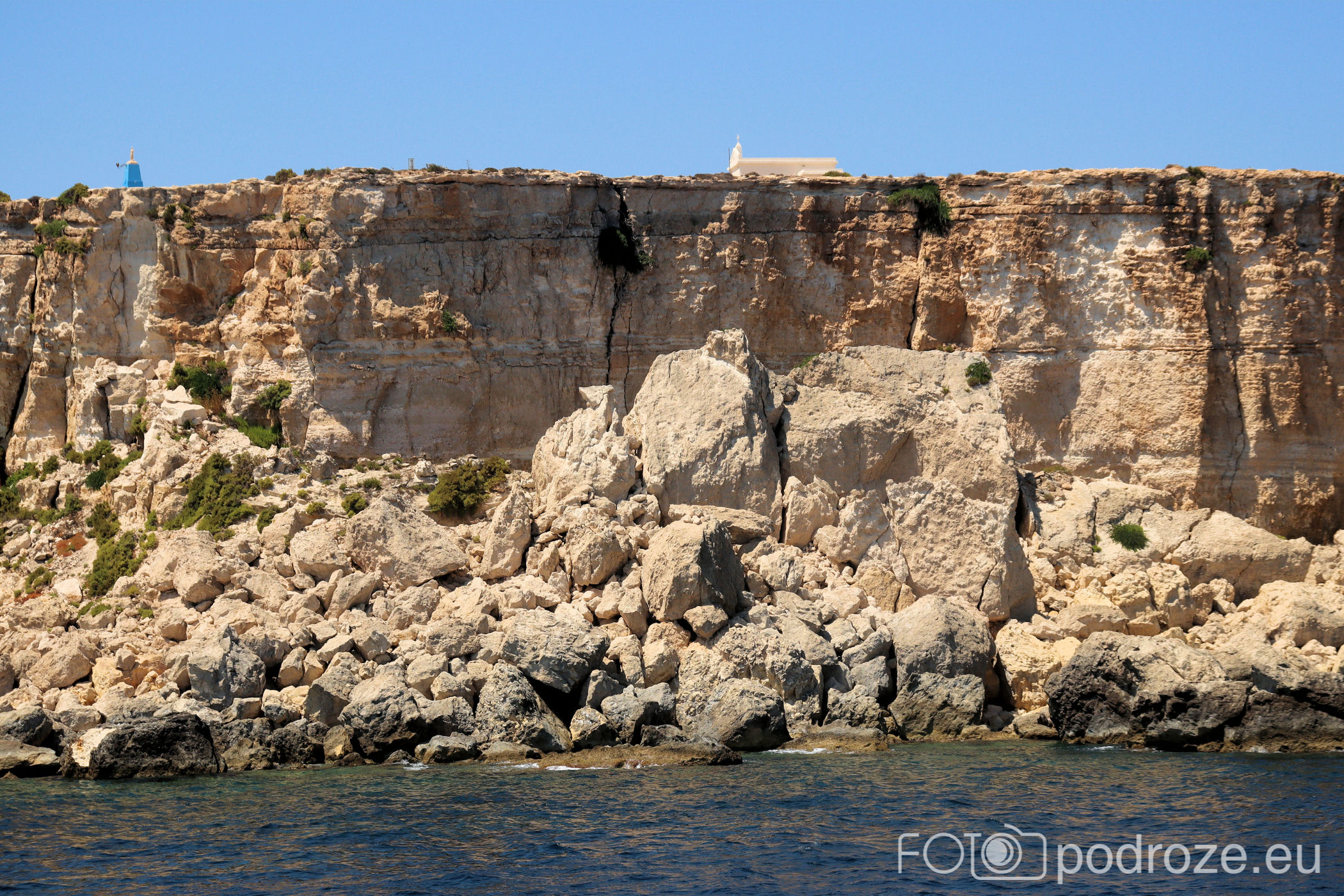 No to pozostał nam ostatni fragment Malty. Najdalej wysunięta część na północny – wschód. Tą część oglądamy w pokładu statku. Pierwsze co rzuca się w oczy to maleńki kościółek pod wezwaniem Niepokalanego Poczęcia na przepięknych skałach .