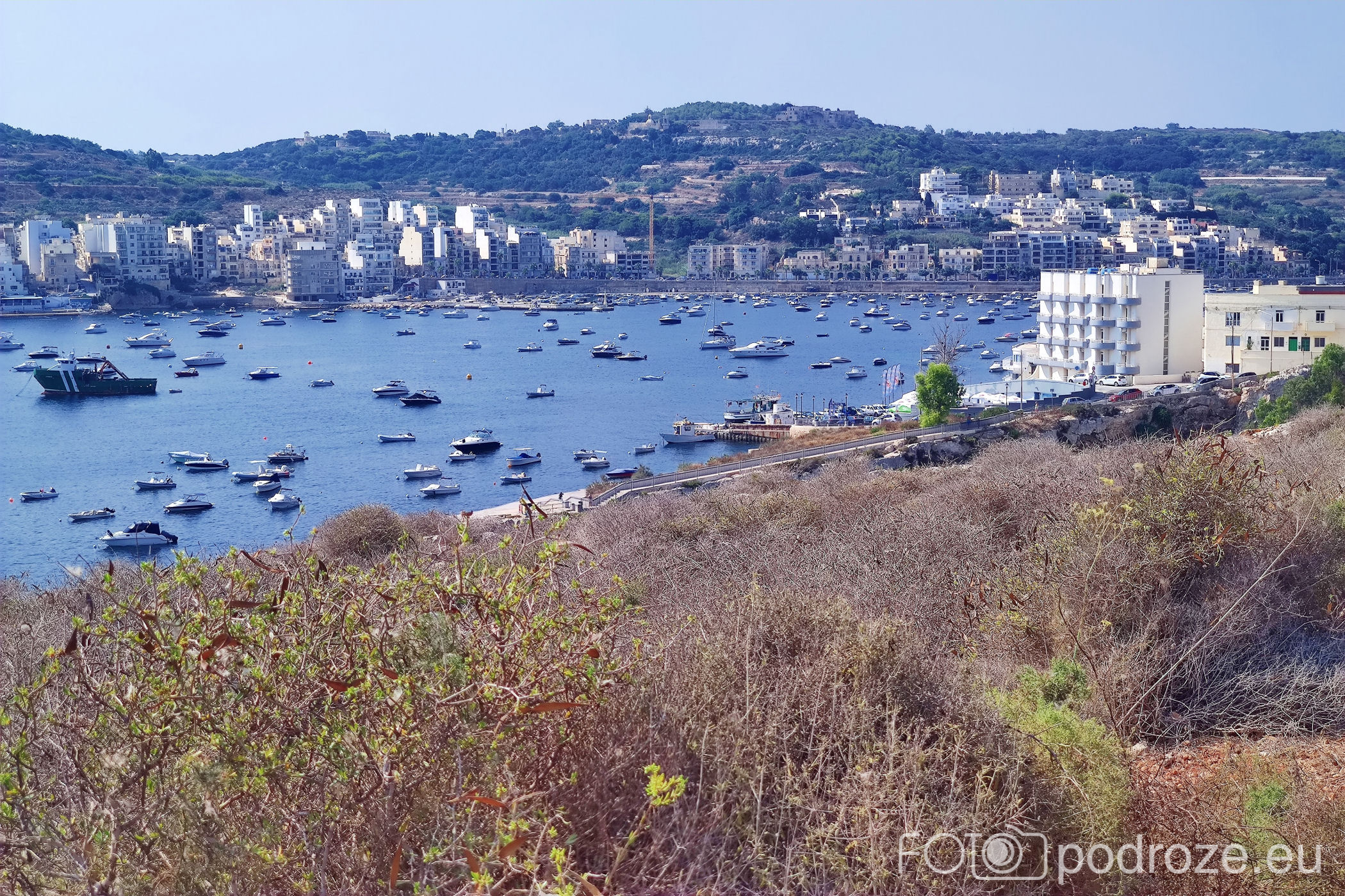 I zataczamy pętlę , z oddali widać hotele północnej części Malty i port z promami na Gozo. O tej części pisałam w osobnym wpisie – LINK