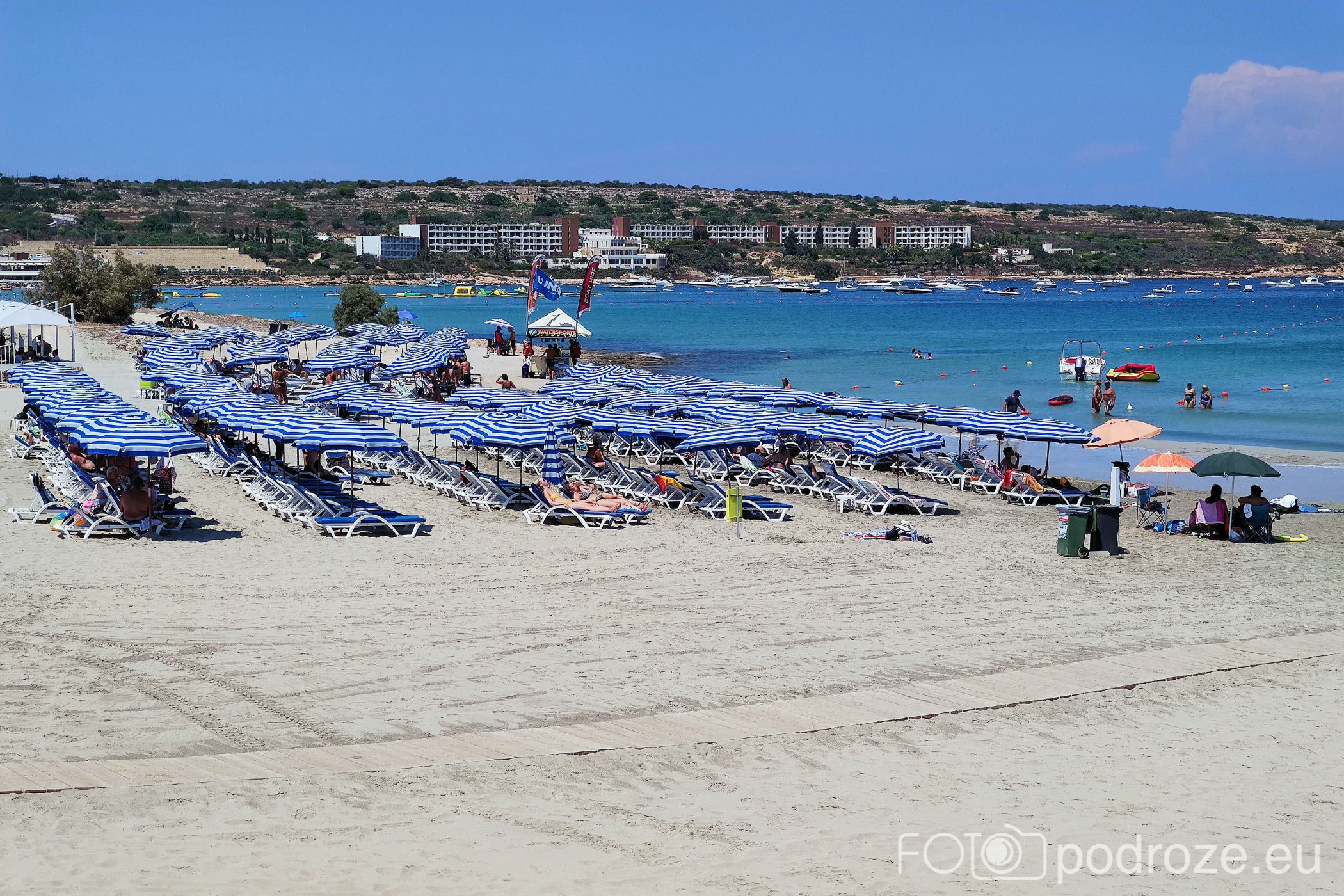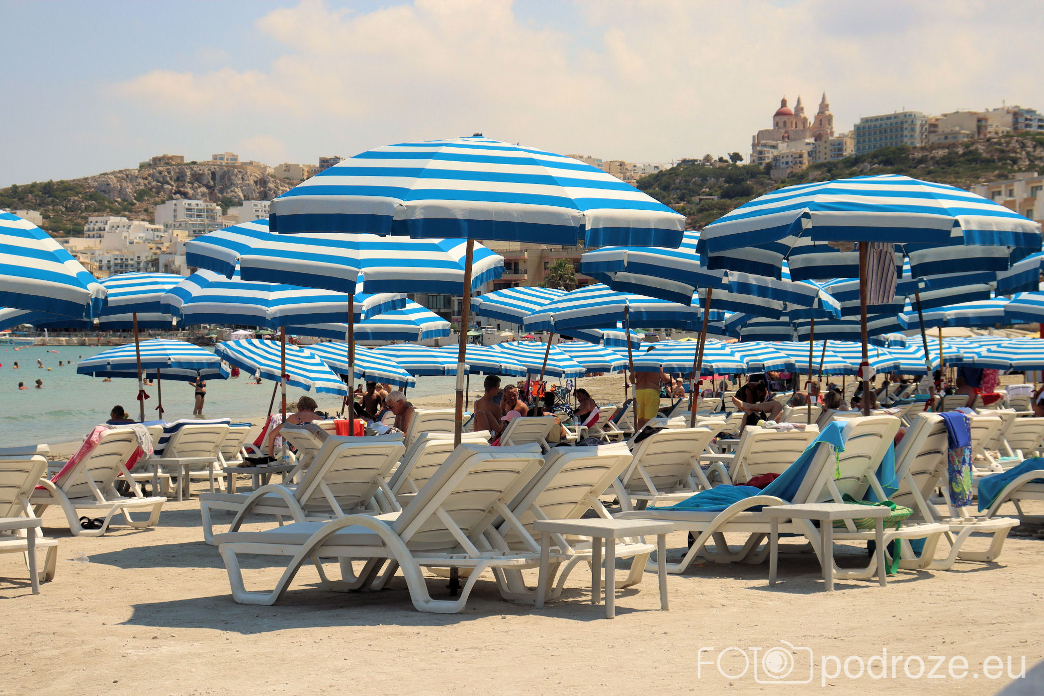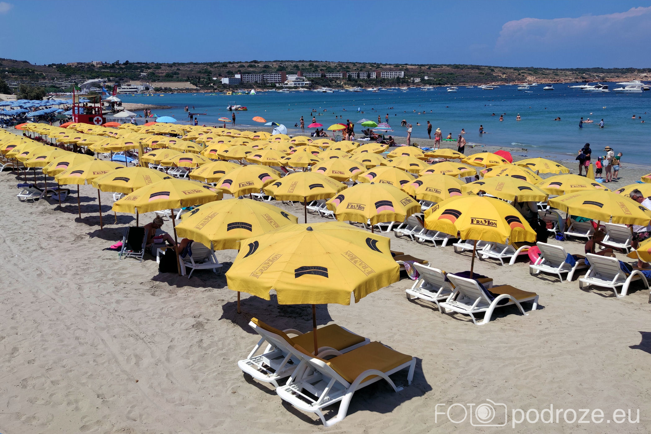 Teraz wracamy na ląd, bo zabieram was na jedną z największych piaszczystych plaż Malty. W zatoce Għadira Bay znajduje się plaża o tej samej nazwie. Szeroka, z pełną infrustrakturą (leżaki, sprzęt do pływania, restauracja. A po obu stronach widoki na całą zatoczkę.