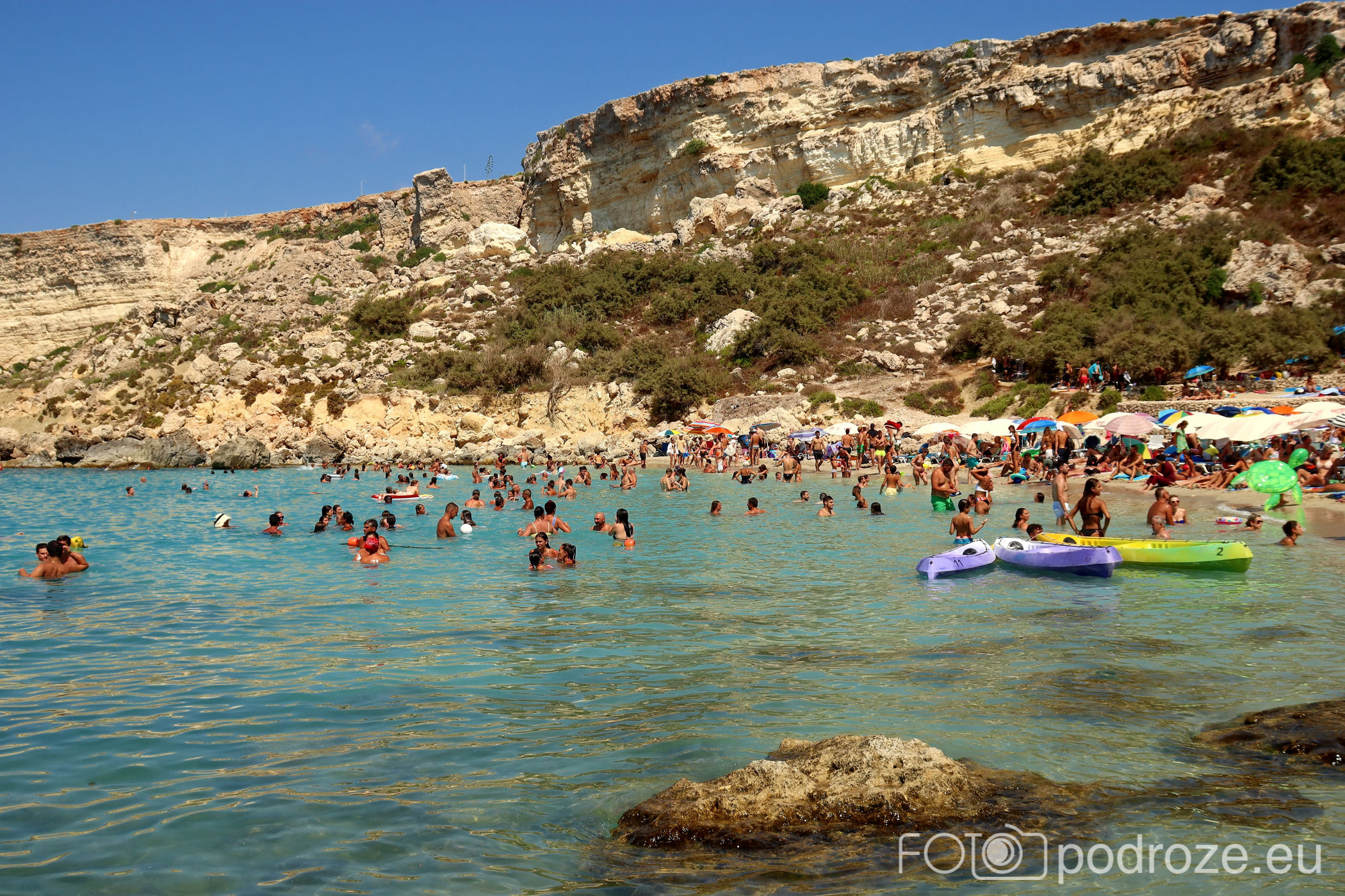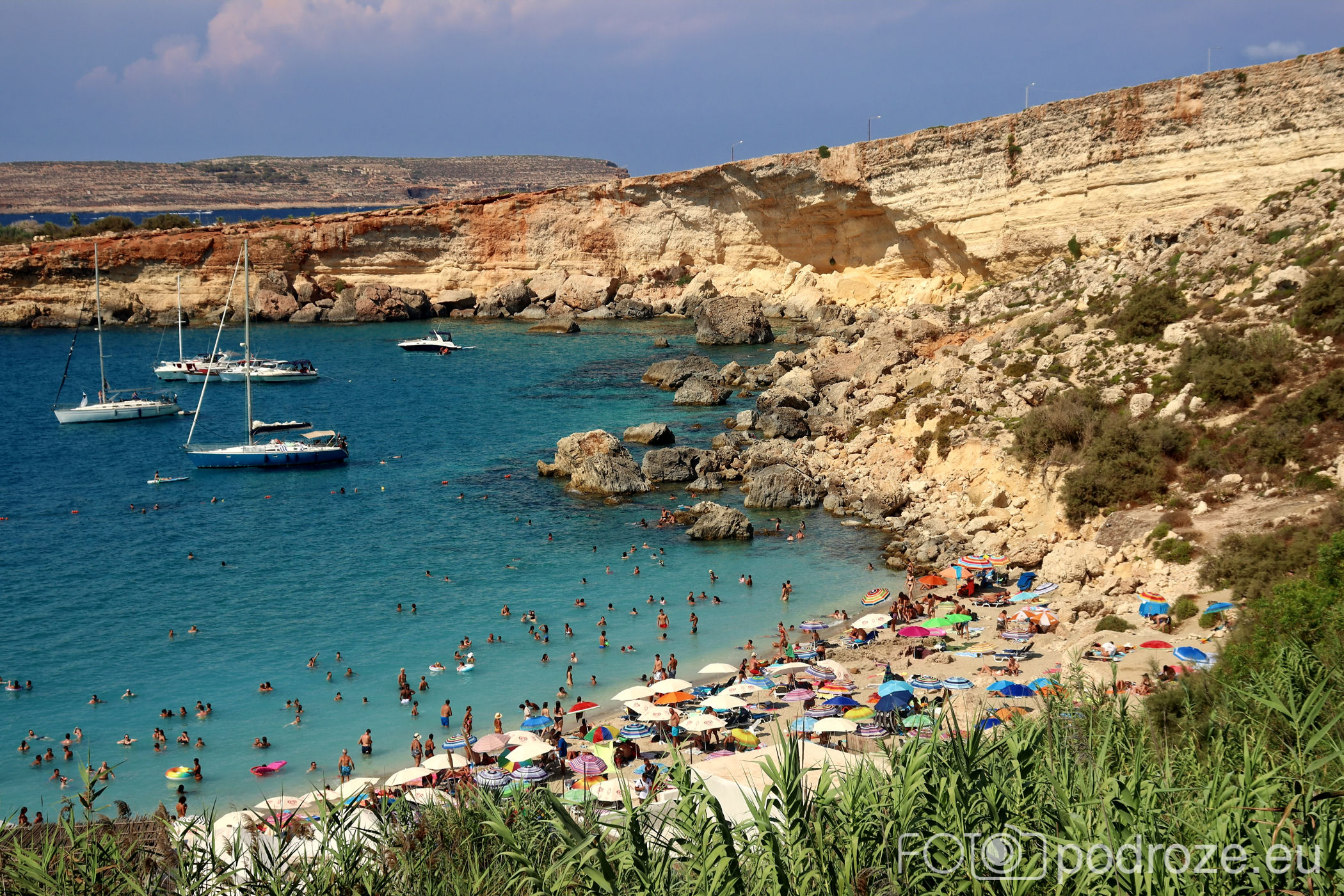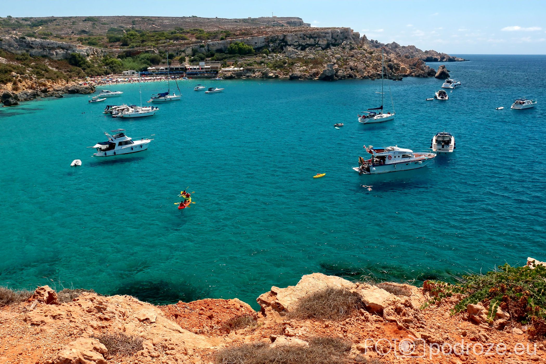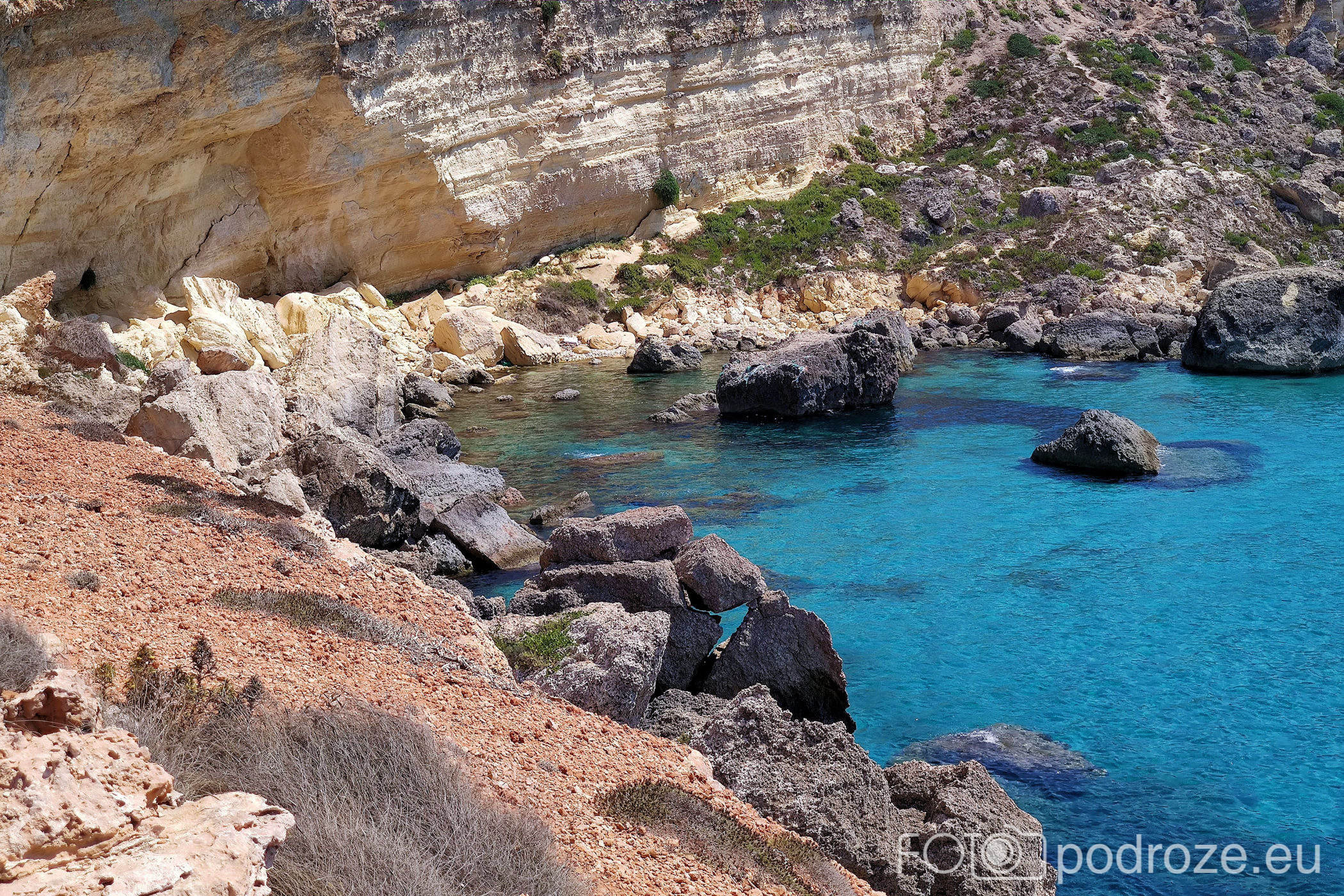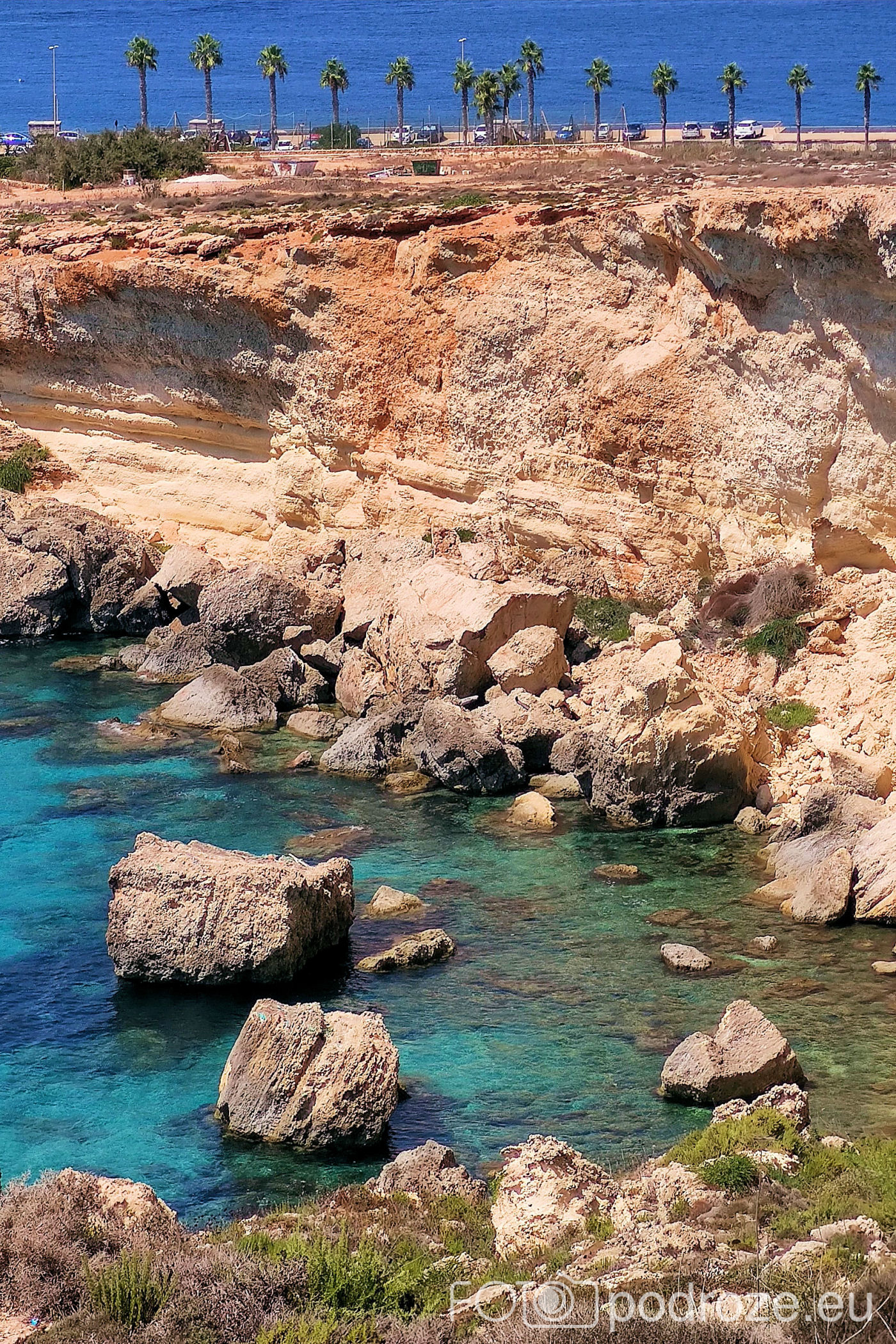 To co stanowi o malowniczości tego miejsca, to przepiękne wybrzeże. Skały, klify w tonacji pomarańczowo – beżowej , a do tego turkusowe wody zatoki. Czy to raj ?