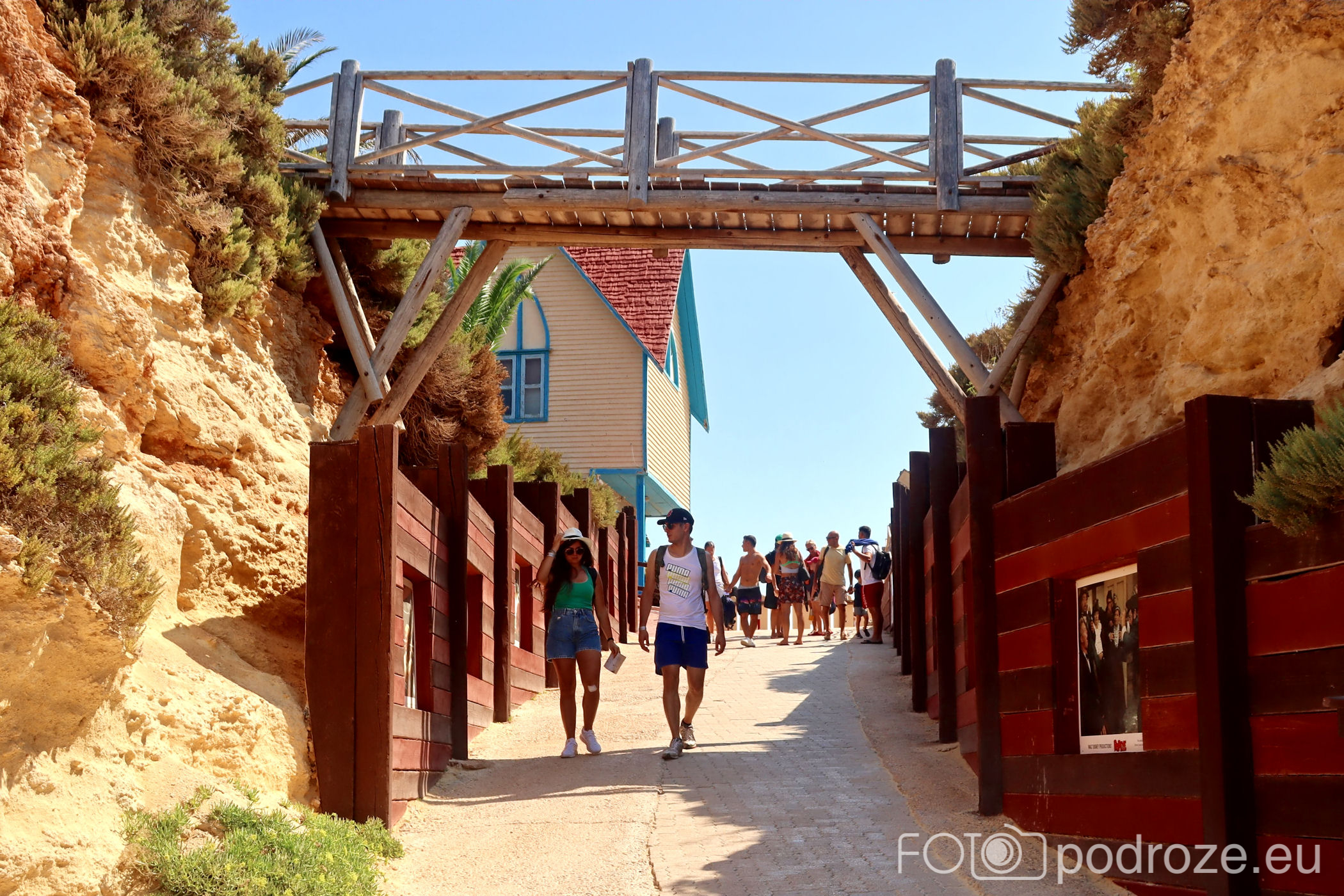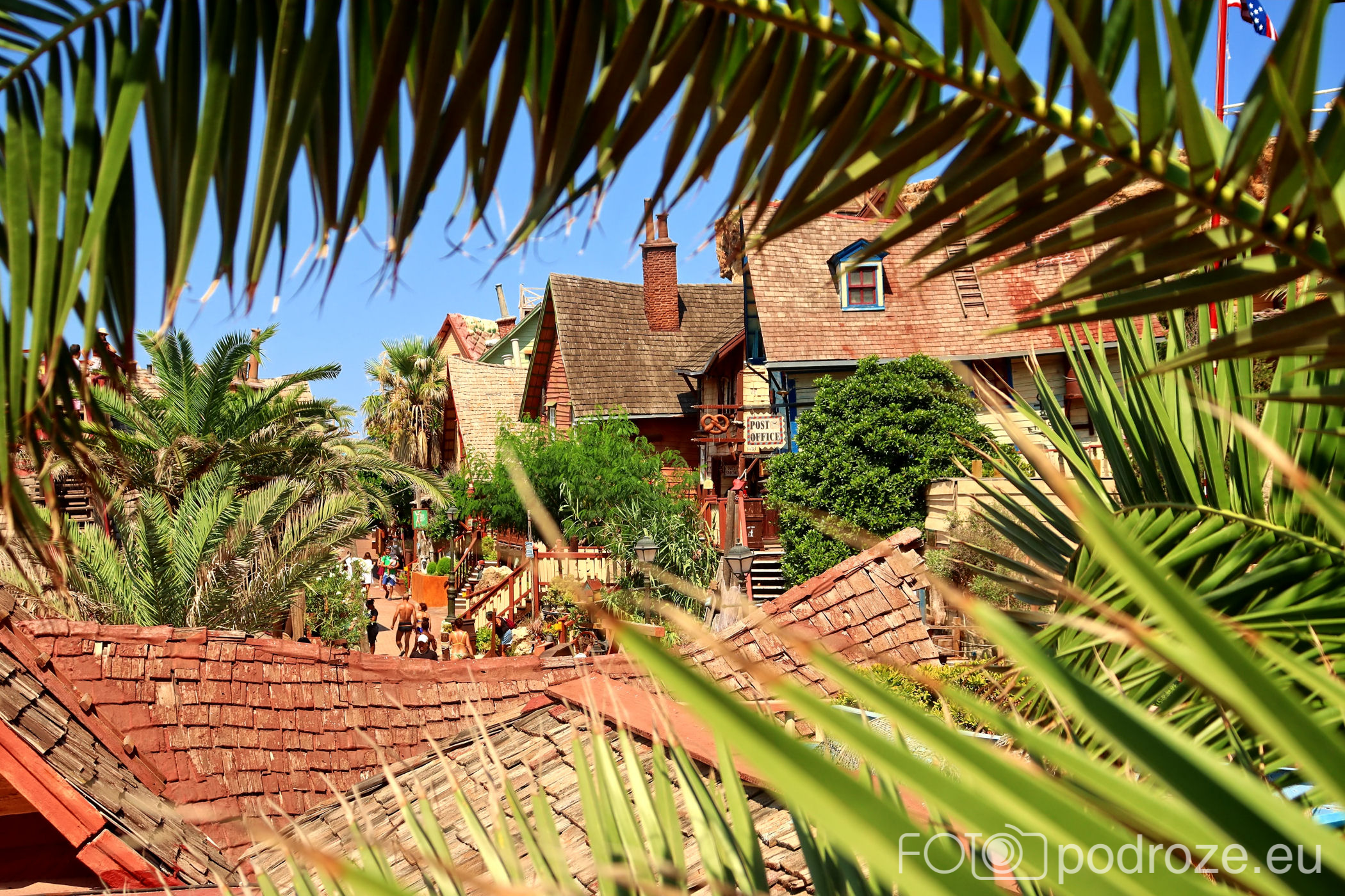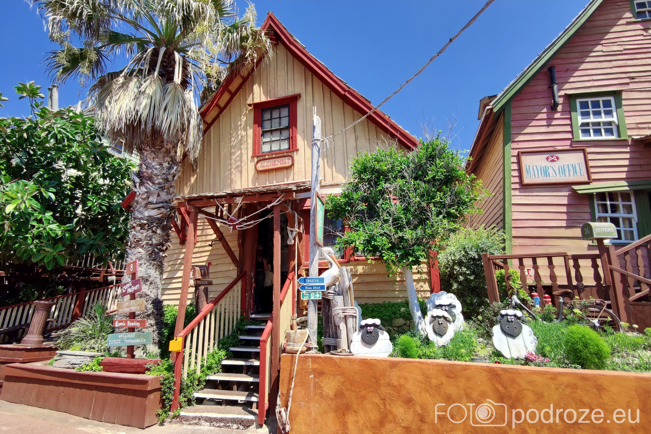 Zajeżdżamy autobusem pod samą wioskę. Już na parkingu wita nas kolorowy budynek restauracji zapowiadający cały ten kolorowy świat Popeya. Strefa wejściowa to kolejny budynek w bajkowej stylistyce. Potem schodzimy w dół mijając kopalnie, plot drewniany , mostek i 2 łodzie.