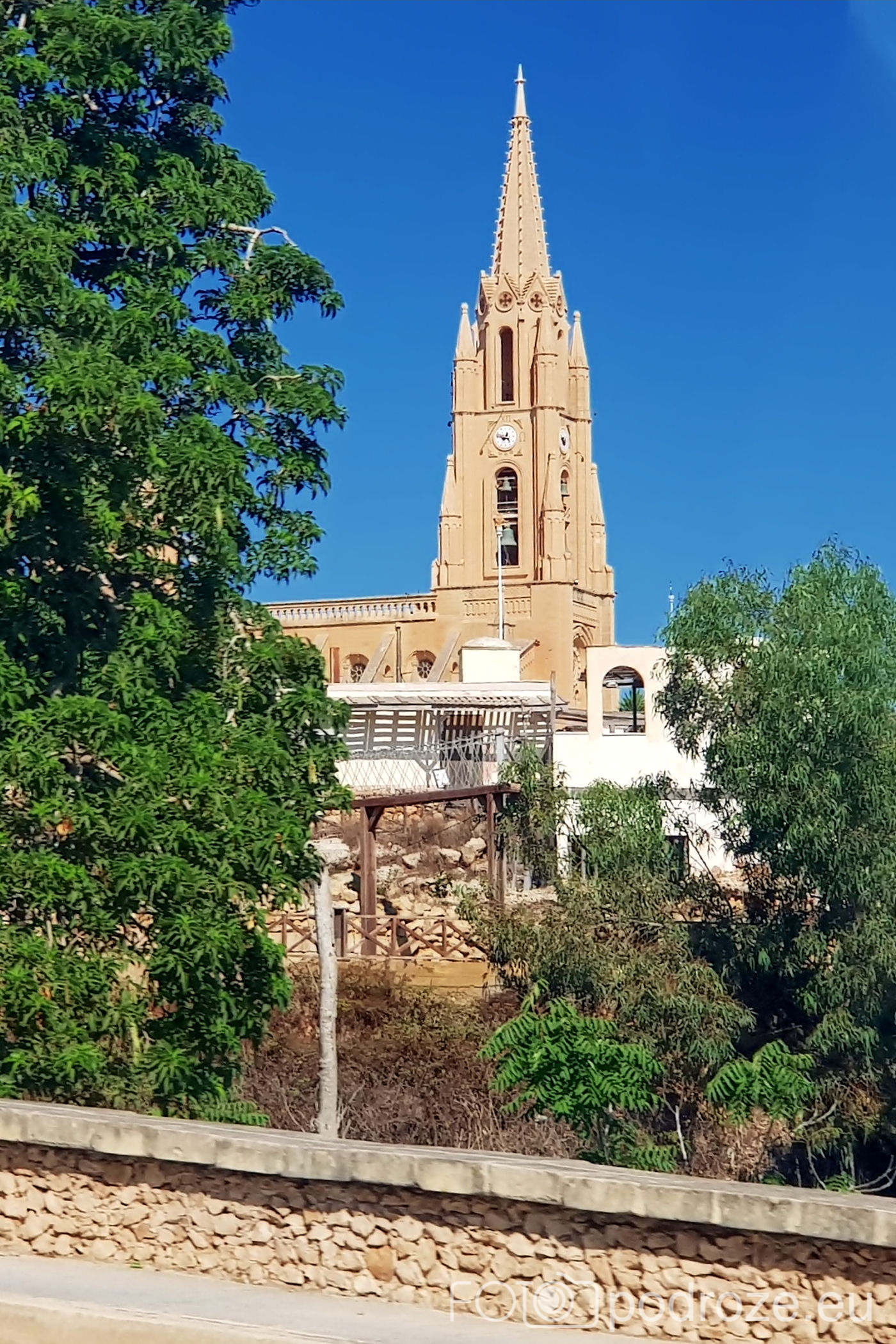Mniej więcej w połowie drogi mijamy widoczną z oddali Rotundę świętego Jana Chrzciciela w Xewkija. Imponująca swoimi rozmiarami budowla wyraźnie góruje nad okolicą. Pierwsza kaplica stała tu od 1608 roku. Potem był tu drugi kościół, ale i ten został zastąpiony przez monumentalną konstrukcję, stojącą do dziś. Kościół w Xewkiji ma konstrukcję ośmioboczną. Średnica wewnętrzna kopuły świątyni wynosi 27 metrów, jej obwód 85 metrów, a kopuła jest wysoka na 75 metrów.