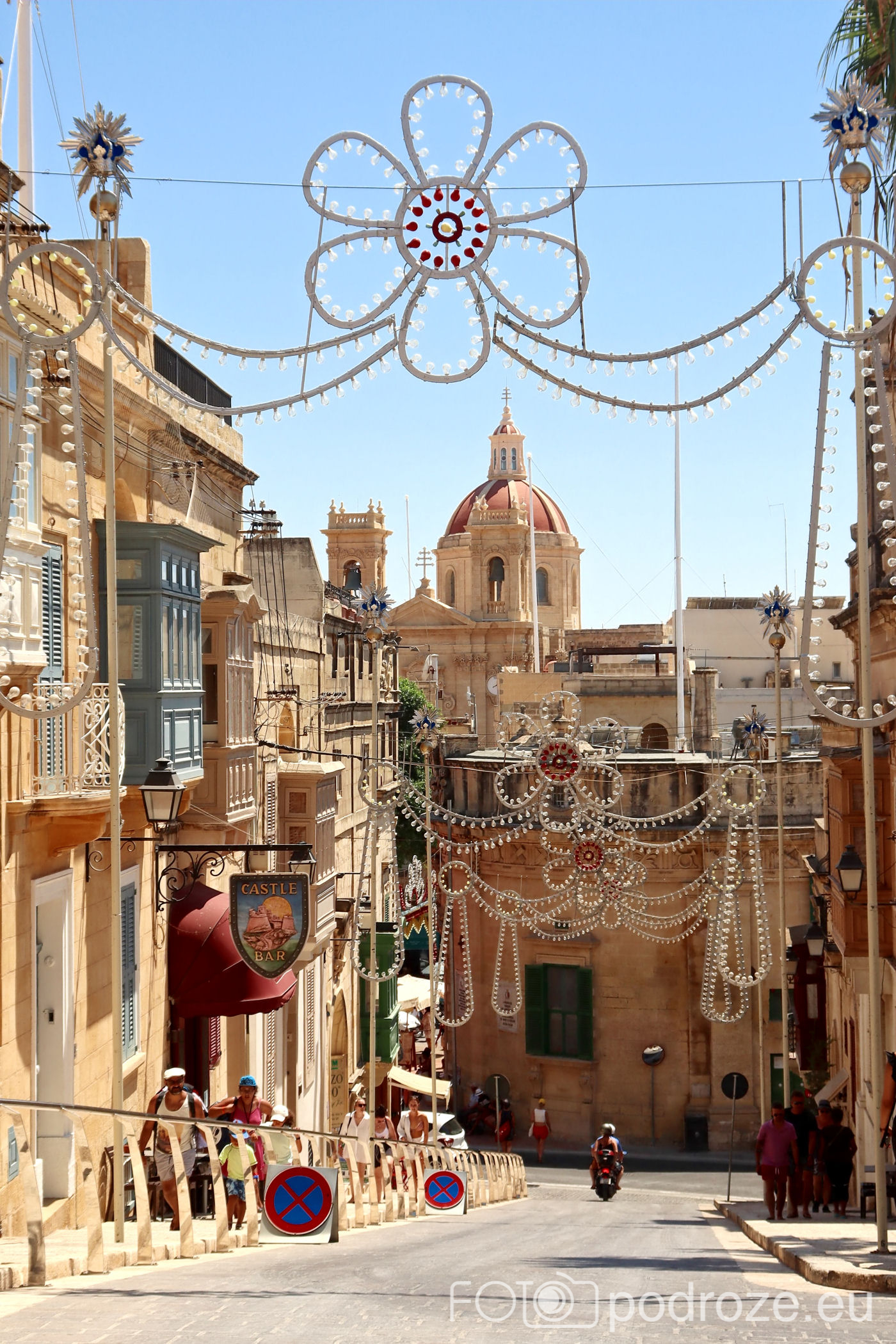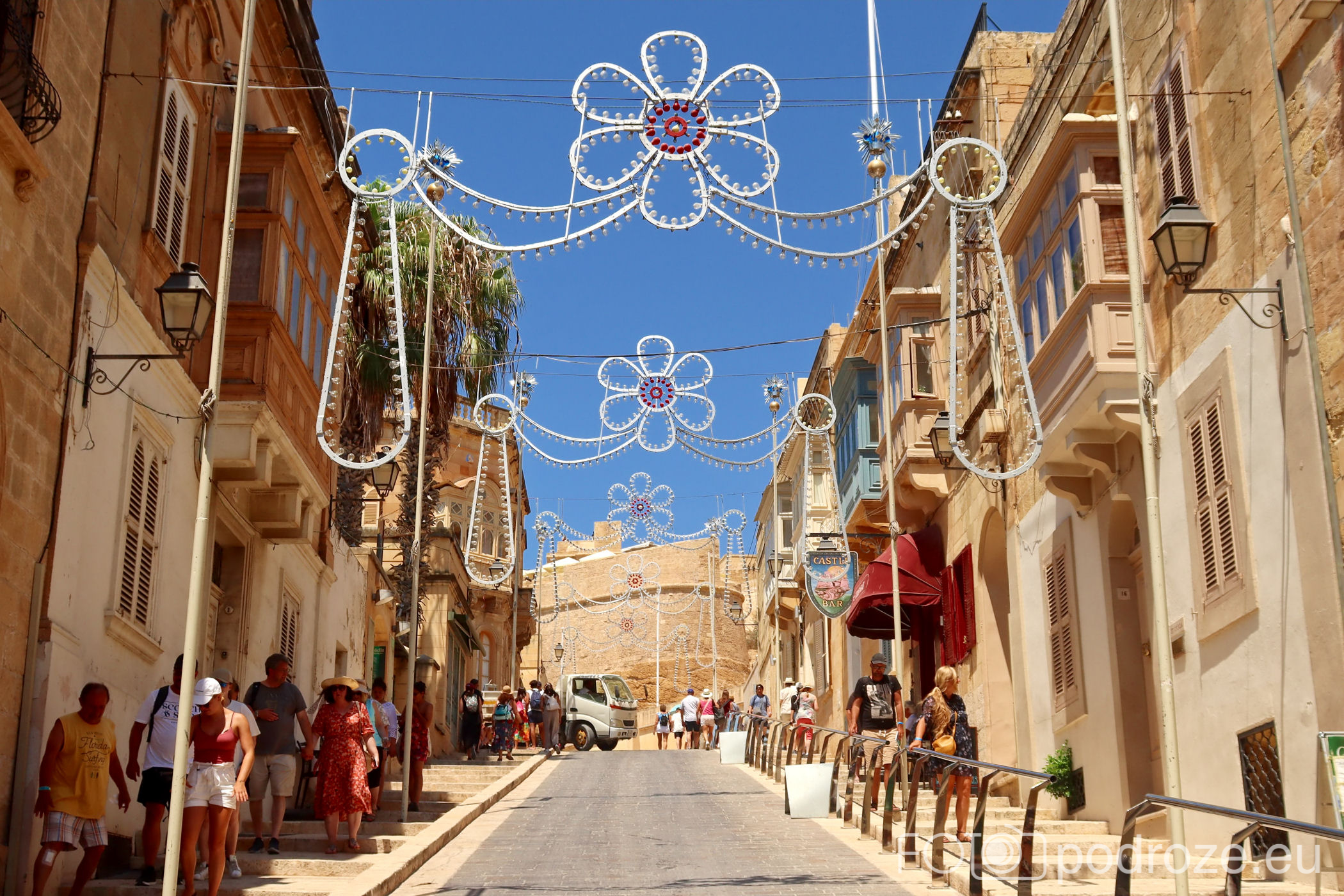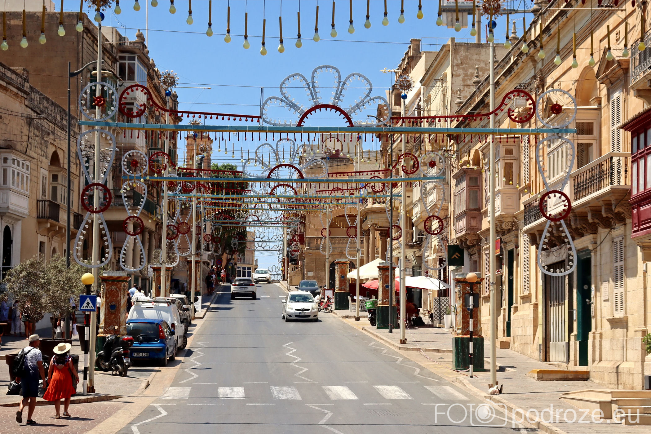 Do bramy wejściowej prowadzi nas tylko jedna ulica. To It-Telgħa tal-Belt, pnąca się ostro do góry i do tego przepięknie ozdobiona przed obchodami 15 sierpnia.