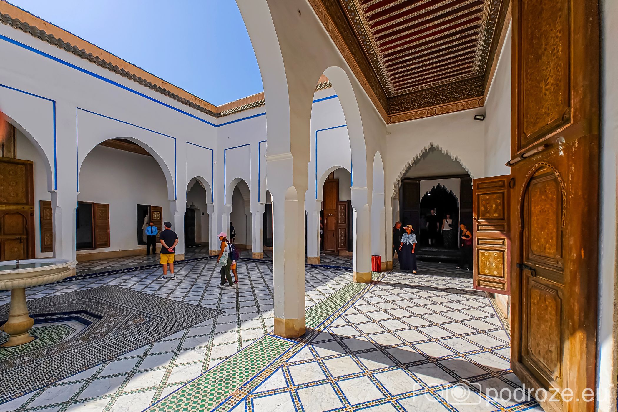 Zwiedzając pałac warto zwrócić uwagę na rzeźbione drewniane sufity z cedru, dekoracje stiukowe na ścianach, mozaiki zellige w kolorowych geometrycznych wzorach, duże drzwi z misternymi zdobieniami. Każdy detal świadczy o mistrzostwie rzemieślników XIX-wiecznego Marrakeszu.