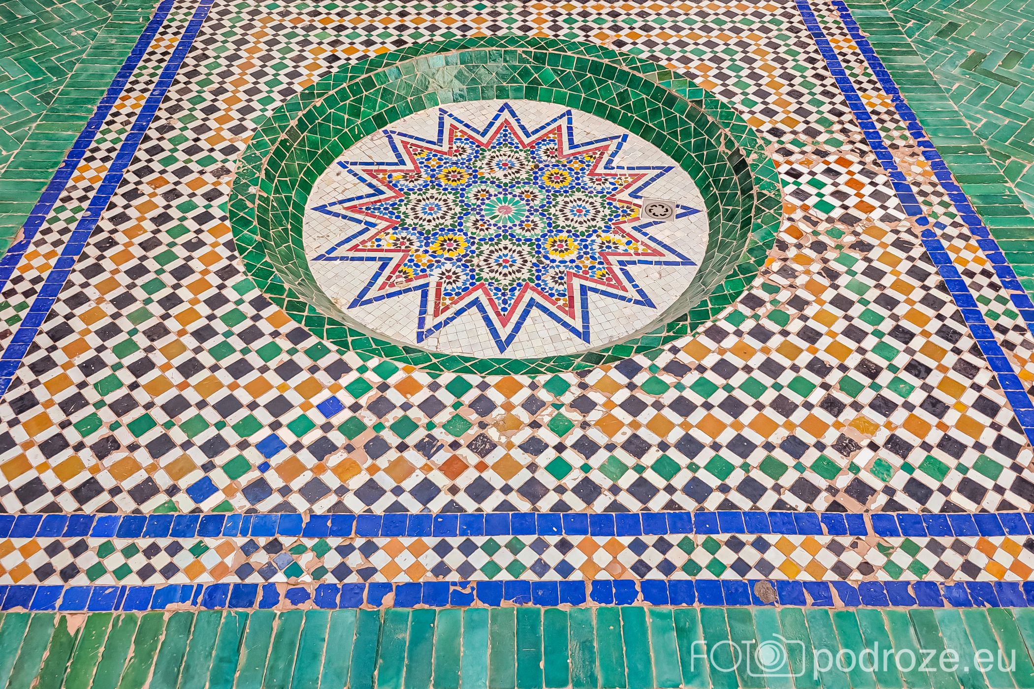 Centralny dziedziniec pałacu El Badi to serce całego kompleksu. Otaczają go eleganckie arkady, a w centrum znajduje się fontanna – główny punkt dziedzińca. To idealne miejsce do podziwiania harmonii proporcji i detali architektonicznych, takich jak mozaiki zellige czy rzeźbiony stiuk. Jesienią 2025 roku część dziedzińca była czasowo wyłączona ze zwiedzania z powodu remontu.
