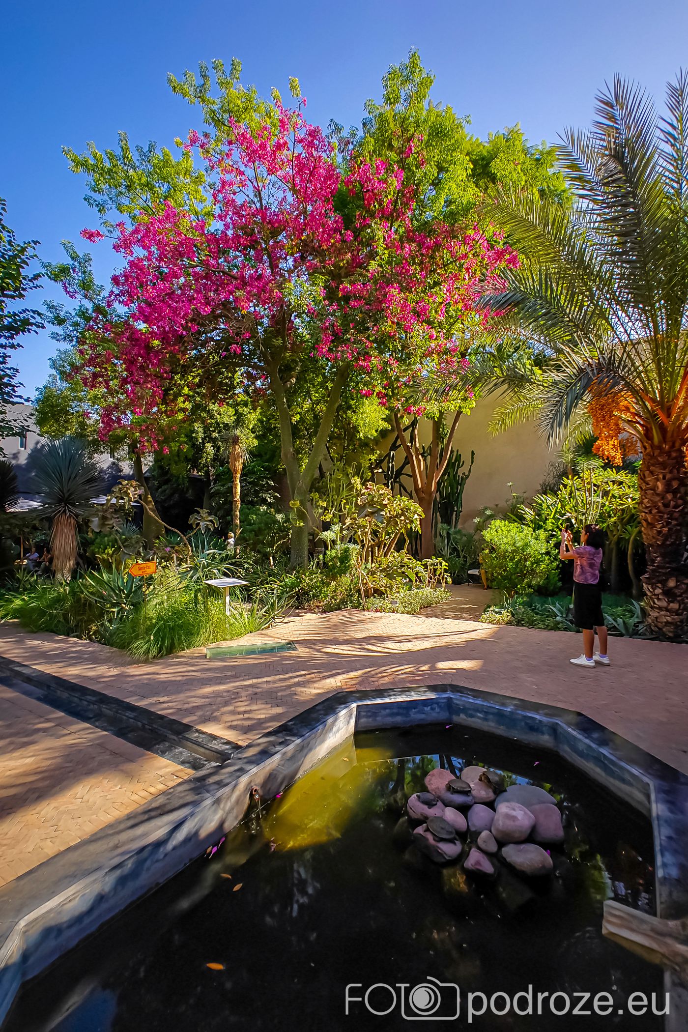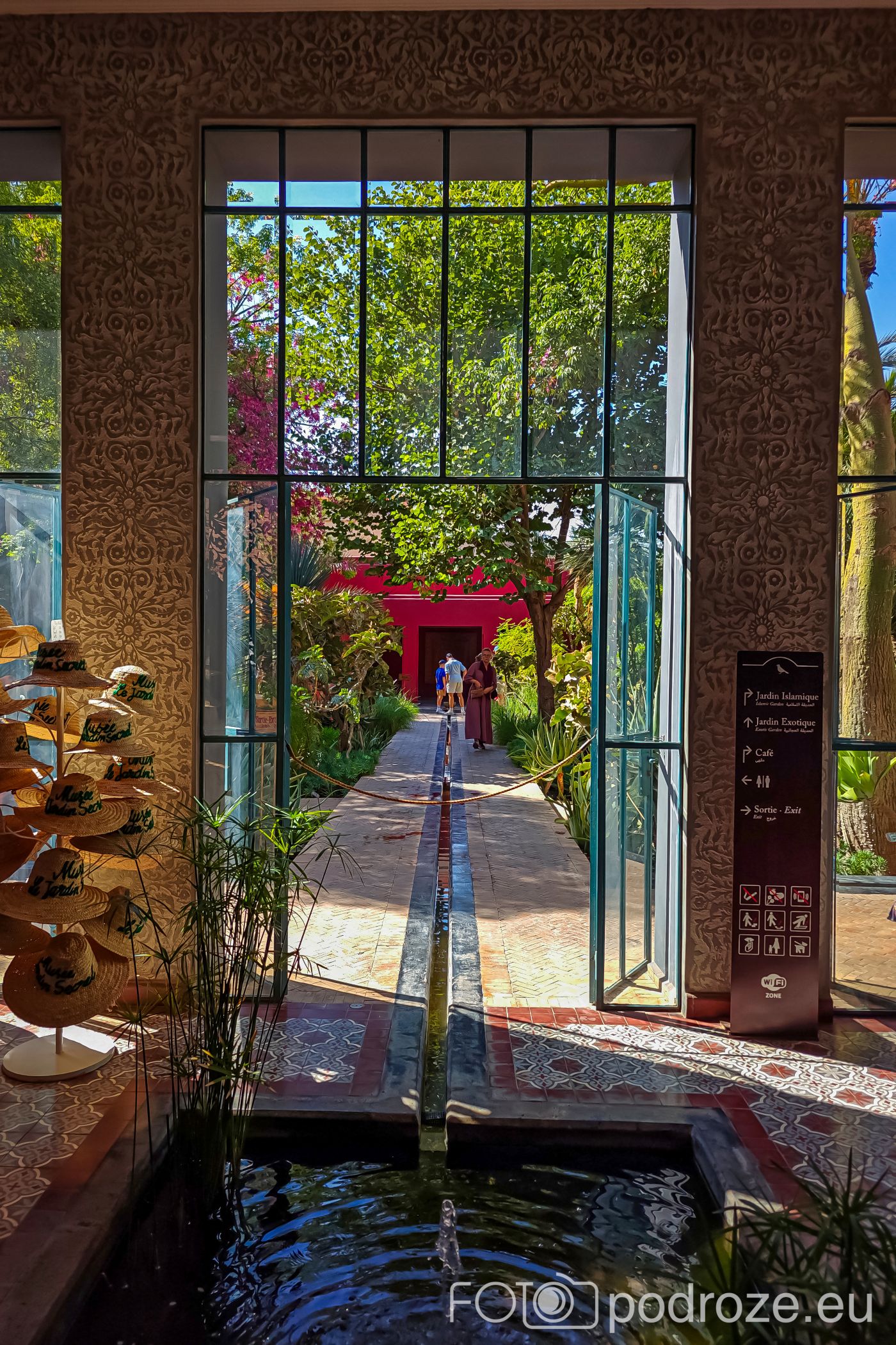 Ogród Egzotyczny stanowi wyraźny kontrast dla części islamskiej. Zgromadzono tu rośliny z różnych stref klimatycznych świata, m.in. z Afryki, Azji i obu Ameryk, co nawiązuje do Marrakeszu jako miejsca spotkań kultur i dawnych szlaków handlowych. To także idealna przestrzeń na krótki odpoczynek w cieniu palm i egzotycznych drzew. W obu ogrodach ważną rolę odgrywa tradycyjny system nawadniania, który od wieków pozwalał utrzymać zieleń w suchym klimacie.