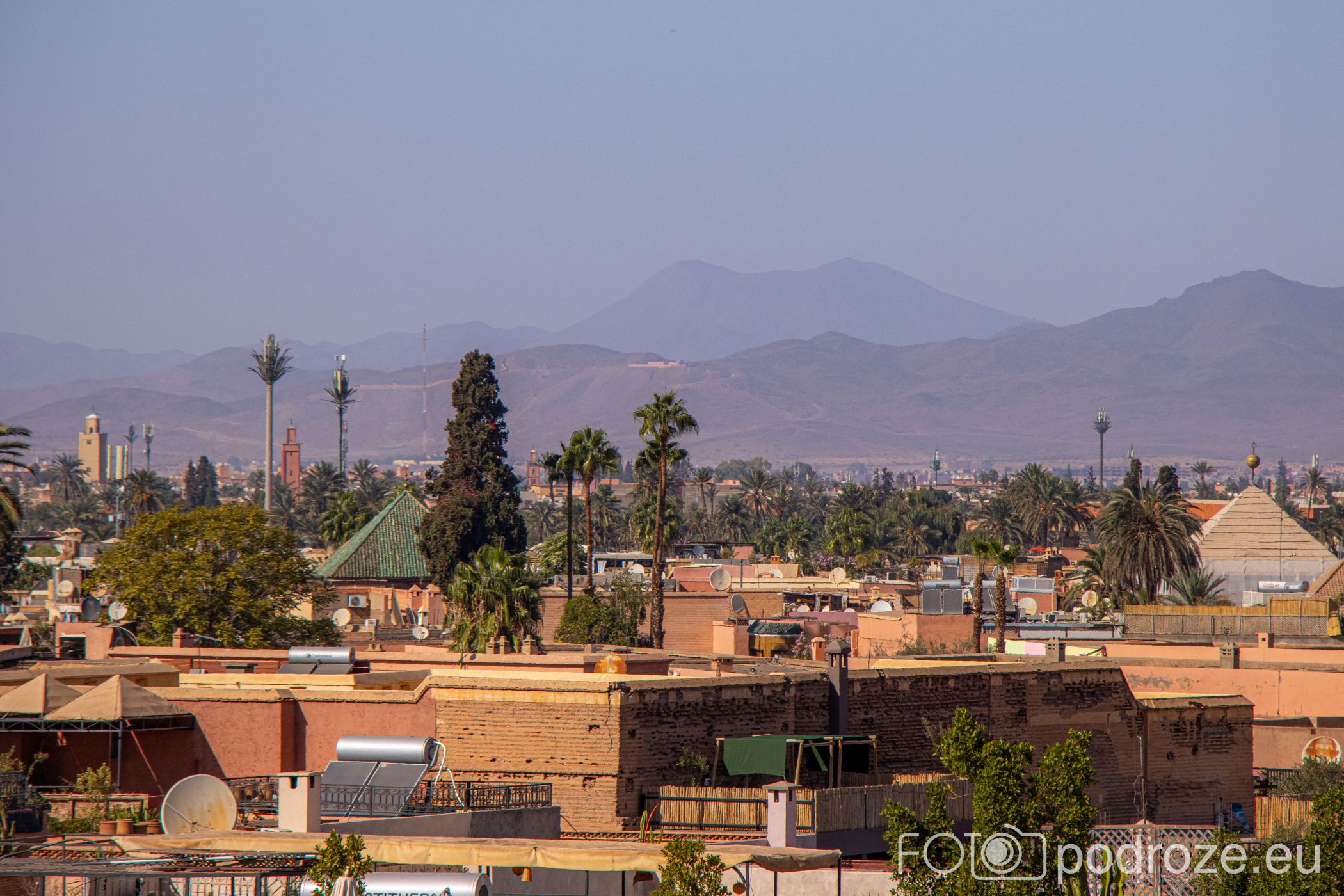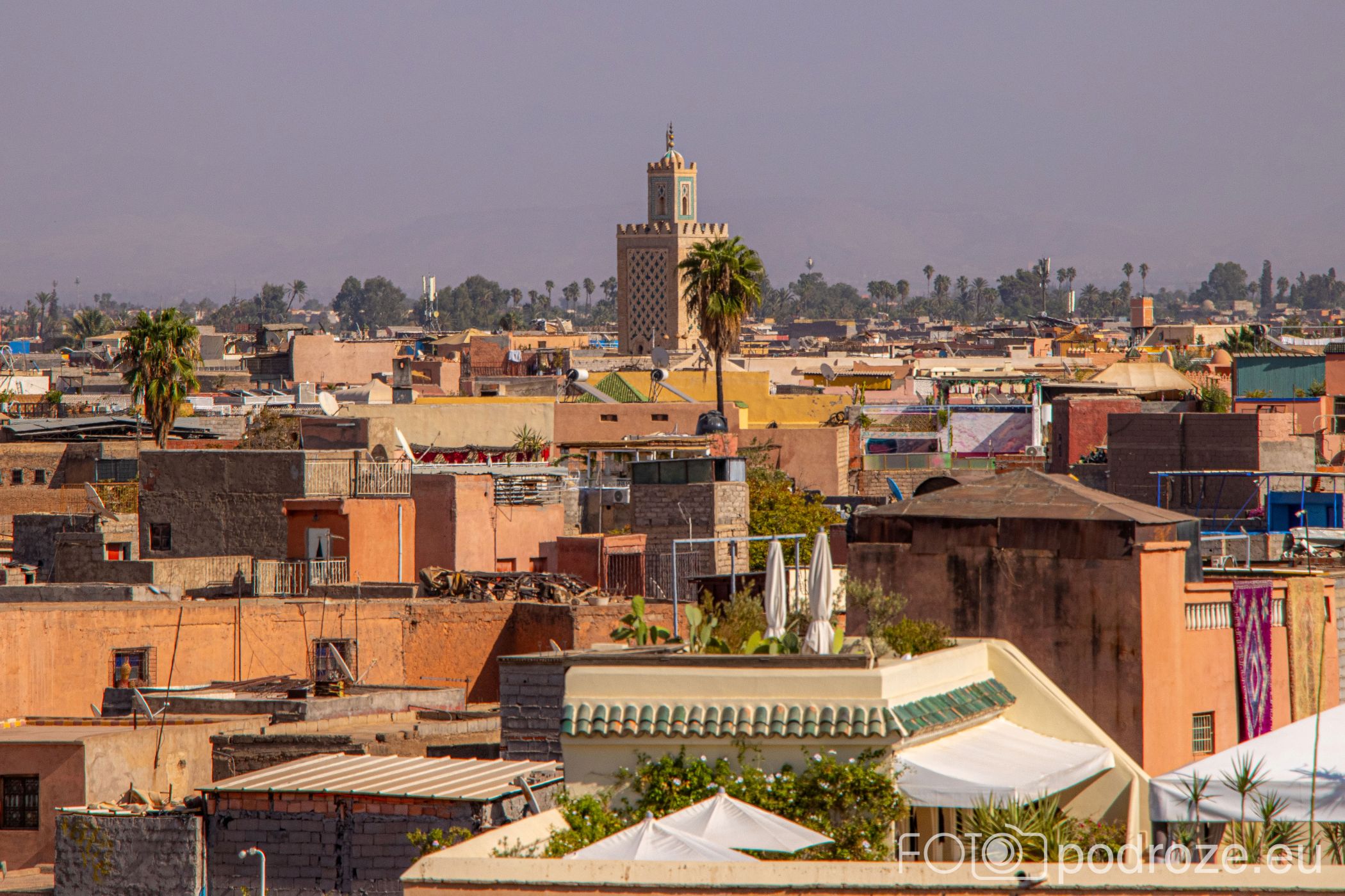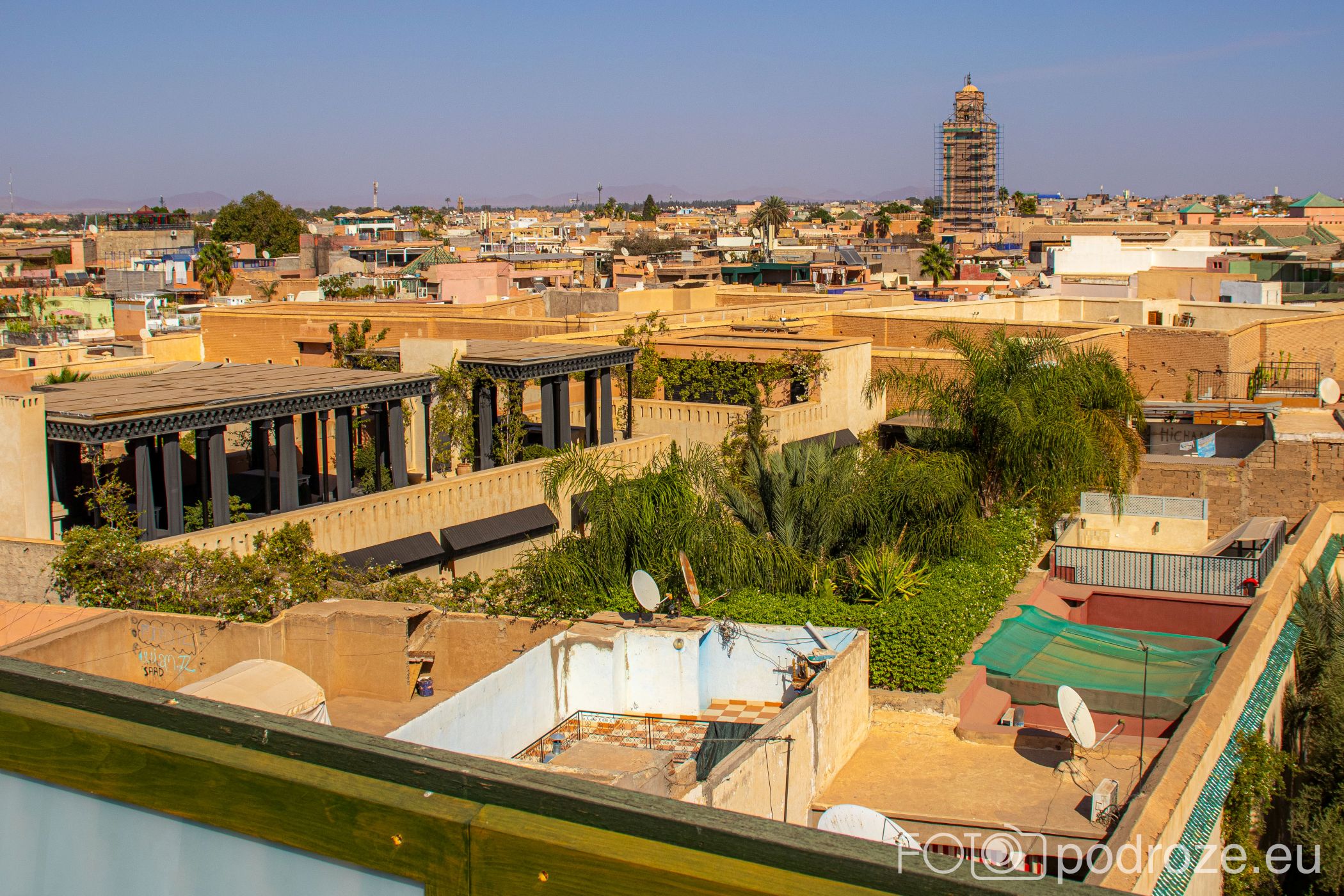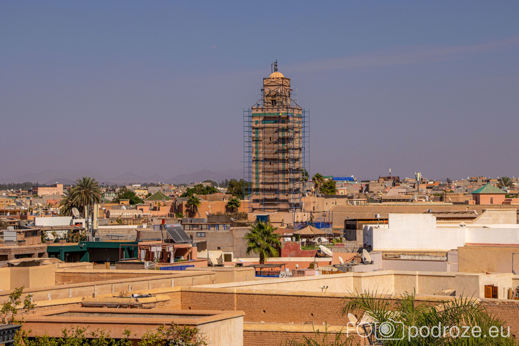 Z wieży rozciąga się panorama starego Marrakeszu. Widać gęstą zabudowę medyny, minarety meczetów, a przy dobrej pogodzie także pasmo gór Atlas. To miejsce pozwala spojrzeć na miasto z innej perspektywy i uświadamia, jak blisko siebie współistnieją natura, architektura i codzienne życie mieszkańców.