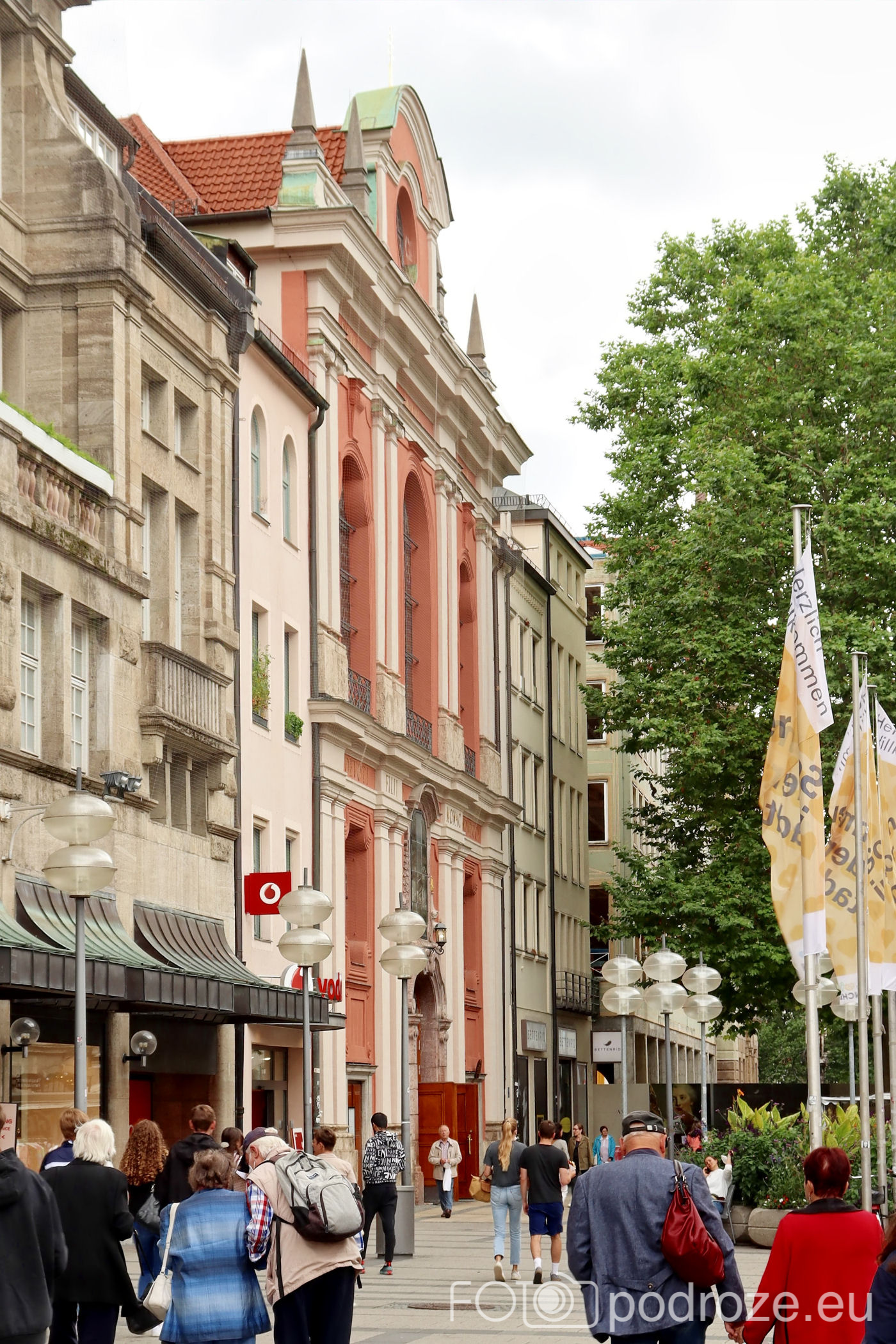 Od placu wędrujemy ulicą Theatinerstraße do serca starego miasta. Po drodze mijamy zielone płuca startówki, czyli Marienhoff. Plac niestety jest całkowicie zamknięty i otoczony płotem. Pozostaje nam więc pooglądać uliczki przylegające do niego. Przed nami także tylna elewacja ratusza, którego front zobaczymy od strony kolejnego placu.