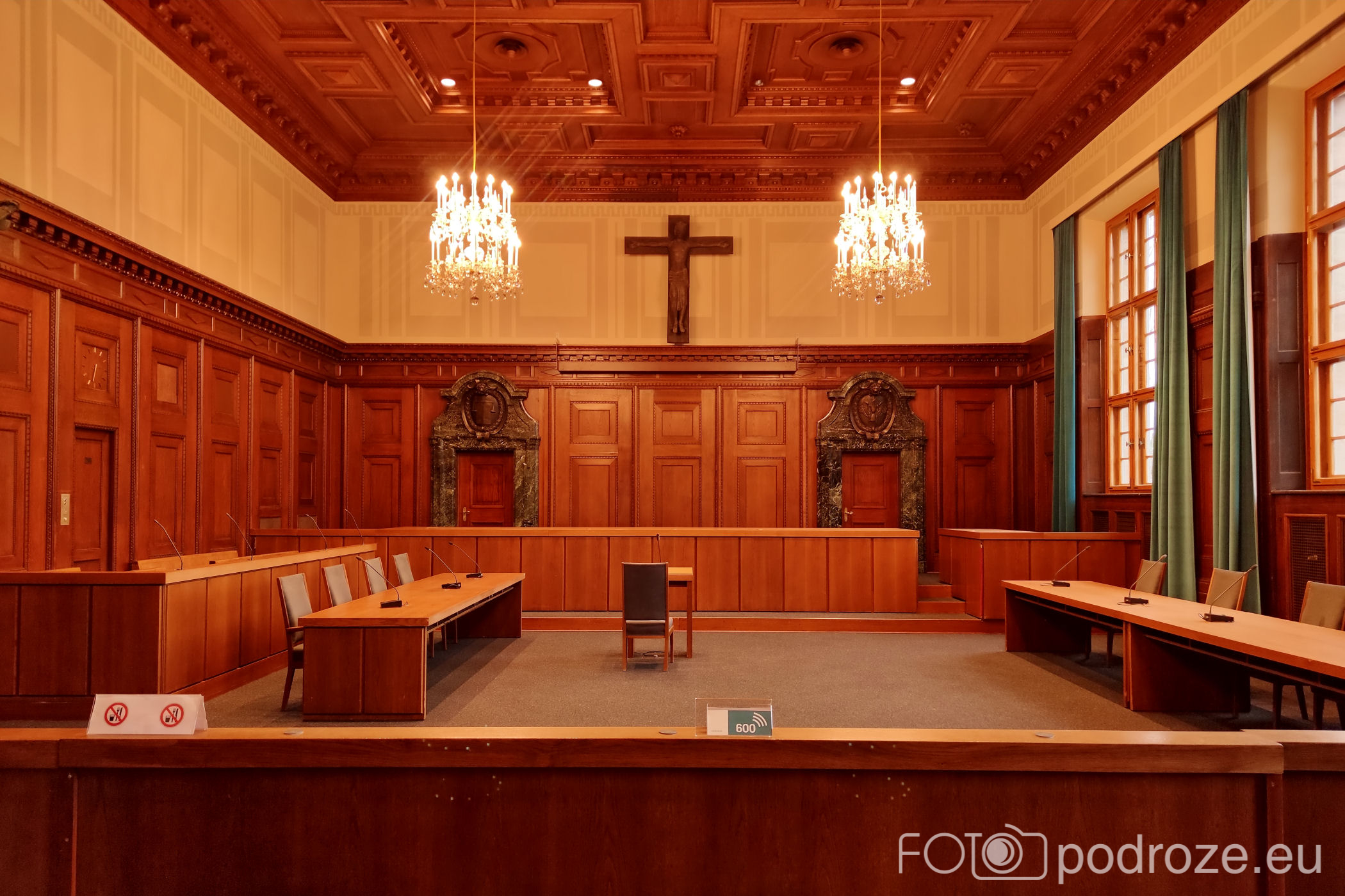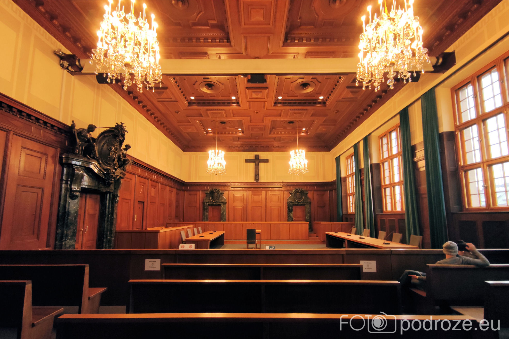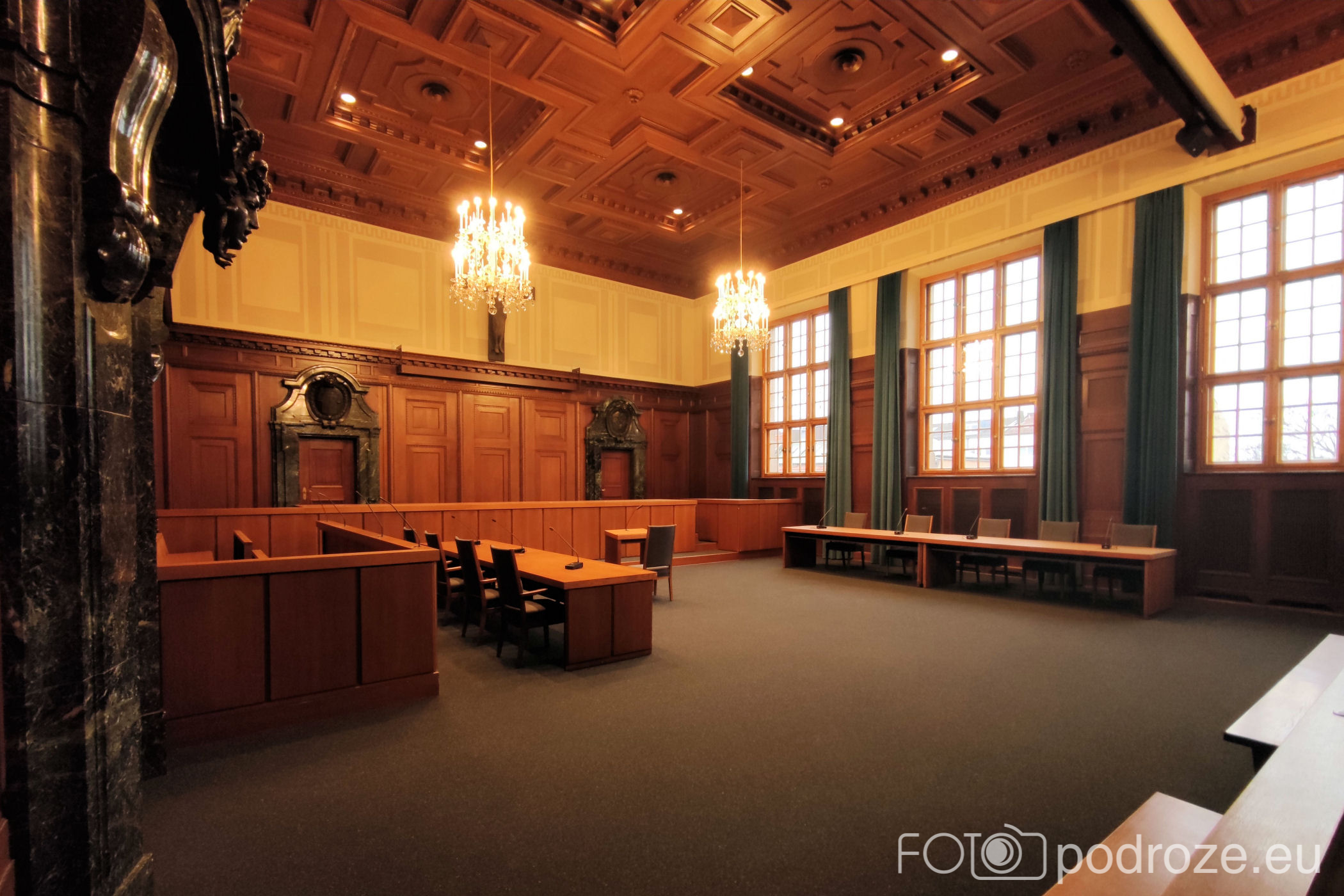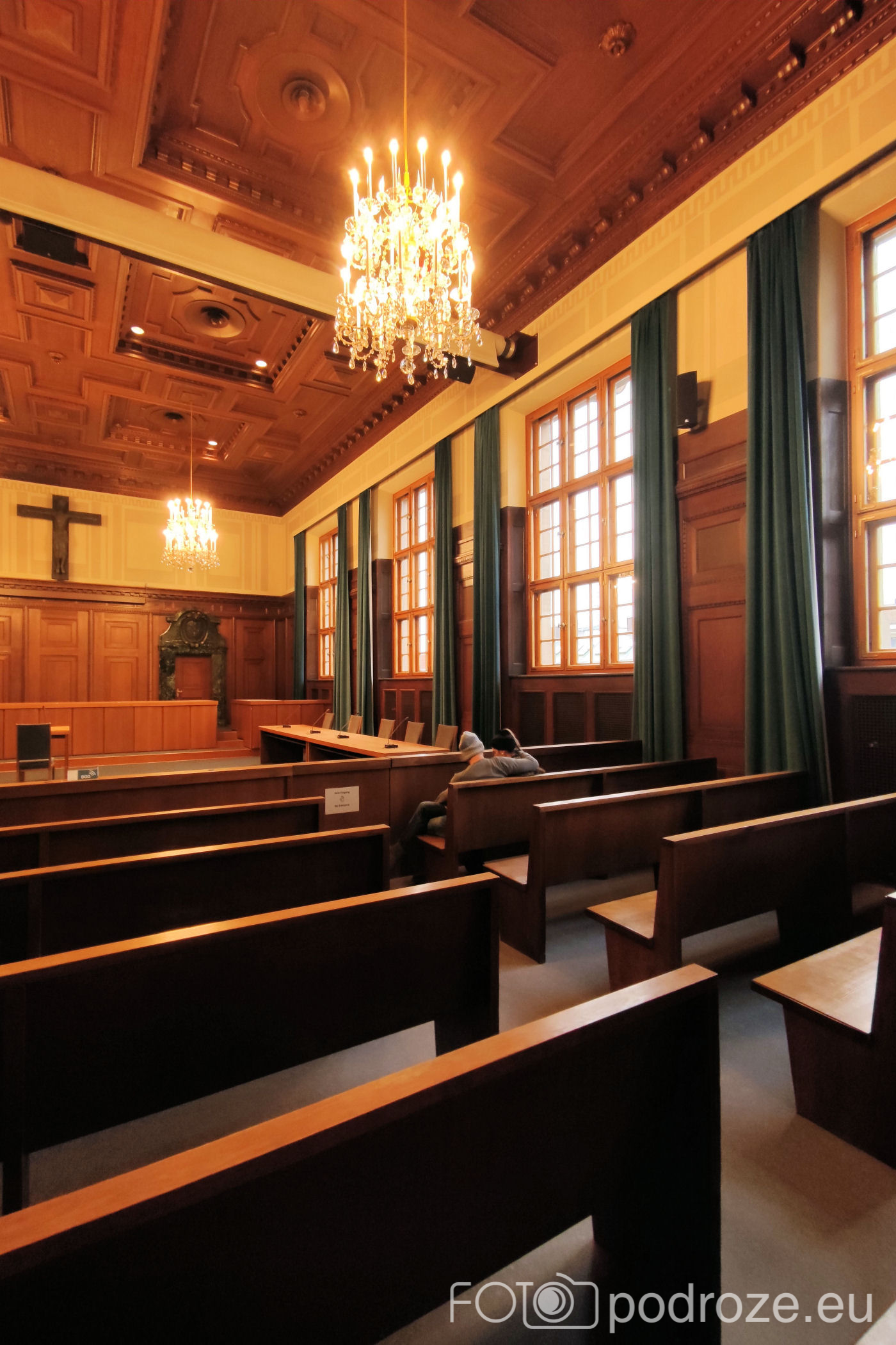 Zwiedzanie zaczynamy od sali sądowej. To właśnie tu, 20 listopada 1945 roku w sali sądu przysięgłych norymberskiego Pałacu Sprawiedliwości rozpoczął się proces przeciwko głównym zbrodniarzom wojennym. Przed Międzynarodowym Trybunałem Wojskowym stanęło wtedy 21 oskarżonych o zbrodnie przeciwko ludzkości. W kolejnych latach (1946-1949) przeprowadzono w sumie 12 procesów przed amerykańskim trybunałem wojskowym.