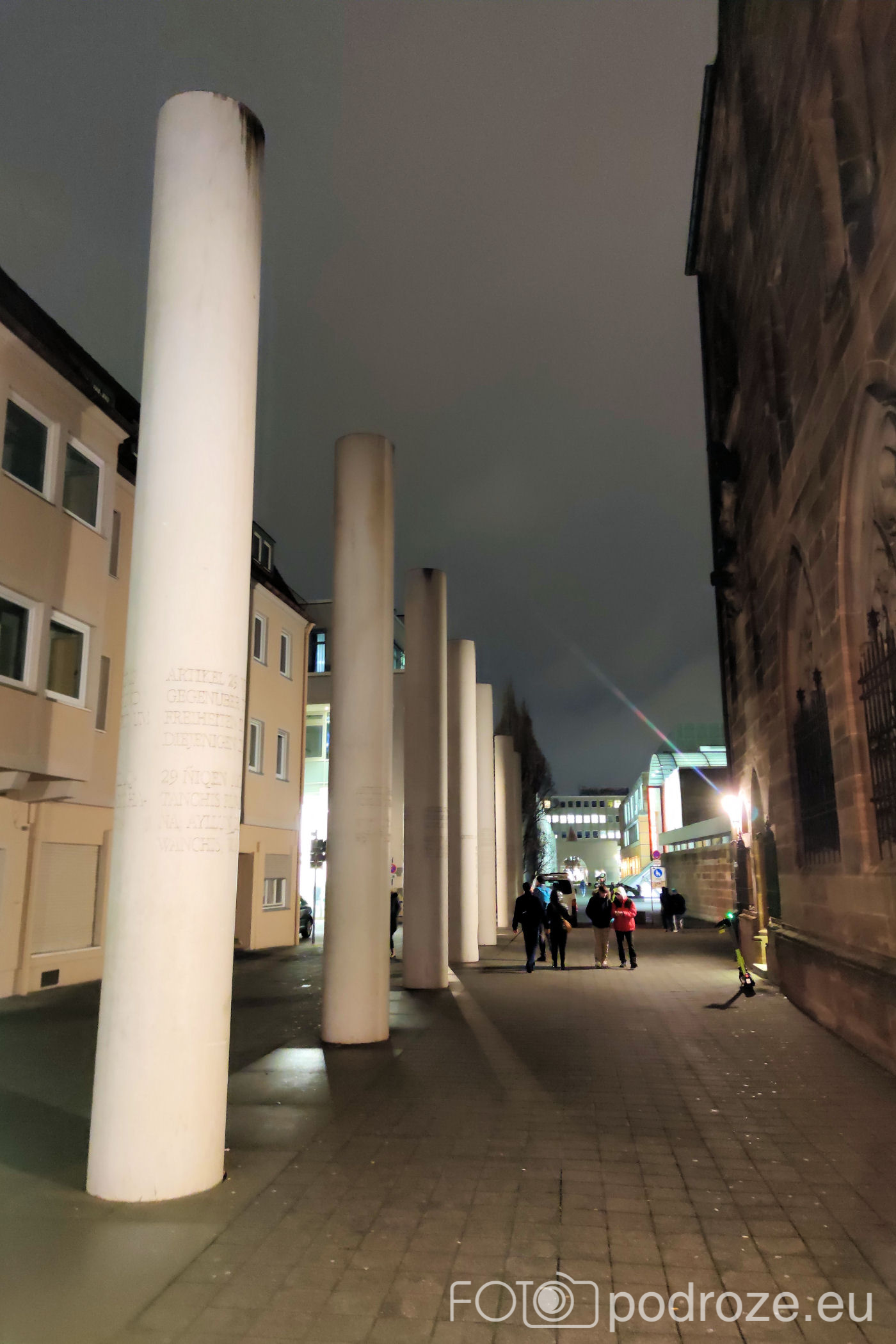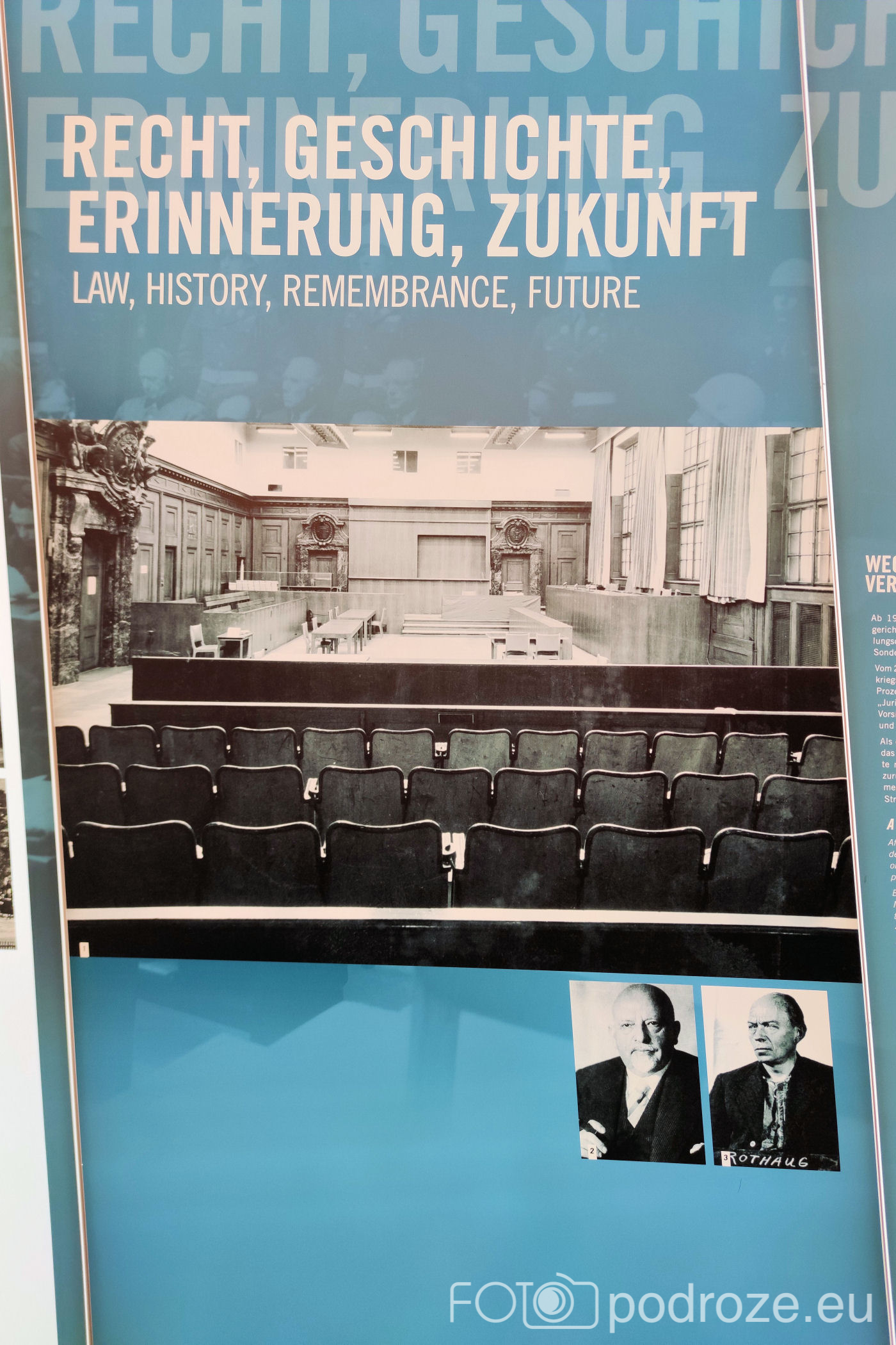 Wystawa na temat procesów norymberskich nazistowskich zbrodniarzy wojennych mieści się nad salą sądową. W czasie procesu część ta była wykorzystywana jako otwarta antresola dla widzów trwającego procesu. Wystawa stała znajduje się więc w oryginalnym budynku sądu. Dowiemy się tu całej historii od początków powstawania nazizmu, przez historię wojny i cały przebieg samych procesów oraz ich następstwach. Wysłuchamy historyczne dokumenty dźwiękowe oraz filmy, które dają niesamowite wyobrażenie wszystkich wydarzeń tamtego czasu.