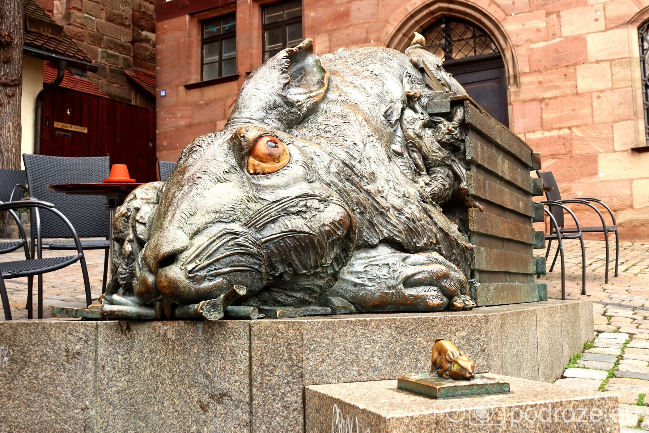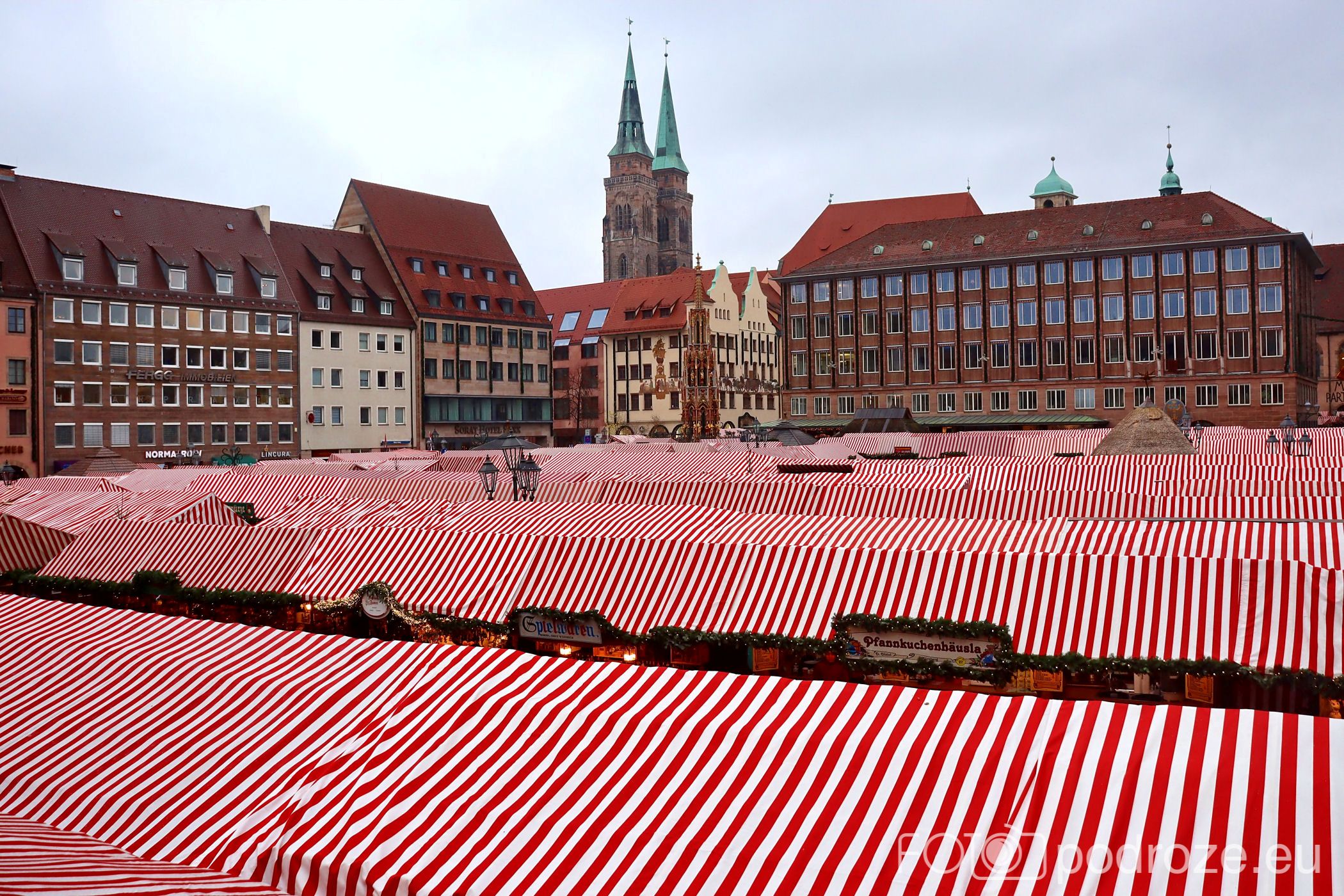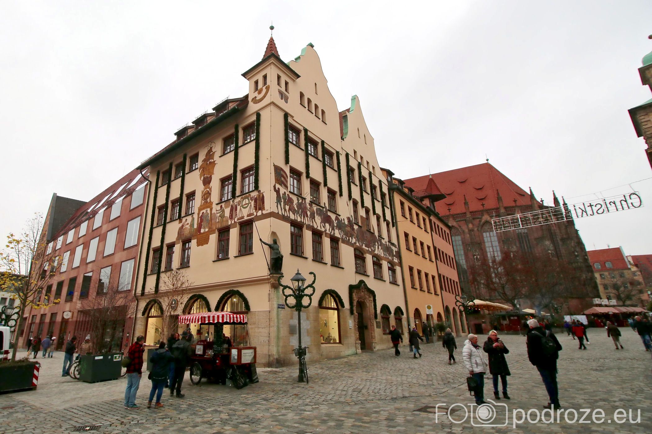 Główny plac Norymbergi to tradycyjne miejsce handlu, na którym do dzisiaj nawet latem stoją stragany sprzedające lokalne, frankońskie produkty. Wcześniej znajdowała się tu dzielnica żydowska, ale zniknęła wskutek pogromu w 1349 roku. Potem, czyli w XIV wieku wytyczono ten plac. Na rynku mamy dwa ważne obiekty historycznie : Piękna Studnia i kościół Najświętszej Maryi Panny. Niestety zabudowa wokół rynku już nie została historycznie odtworzona po zniszczeniach wojennych i nie da się ukryć, że piękna nie jest.