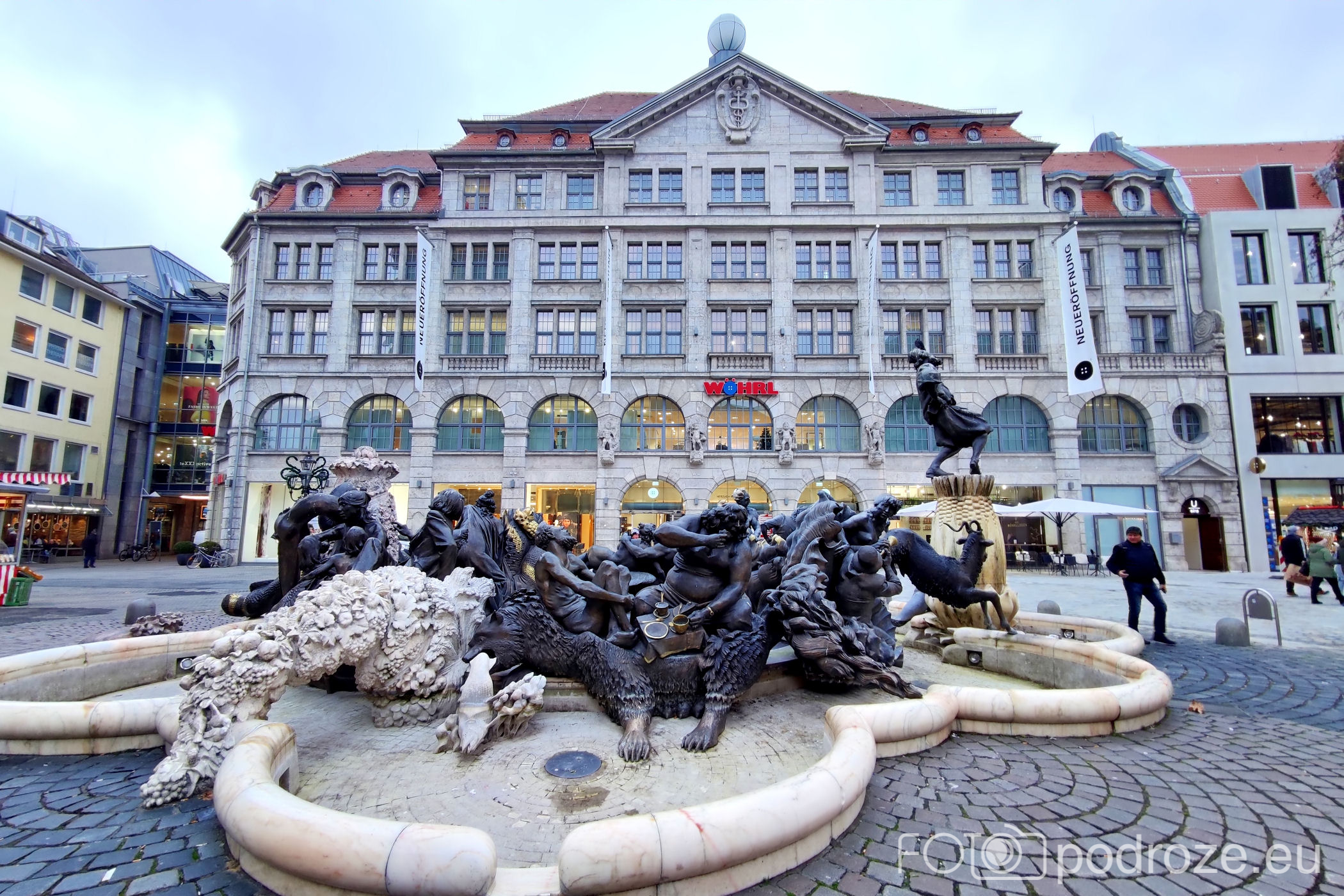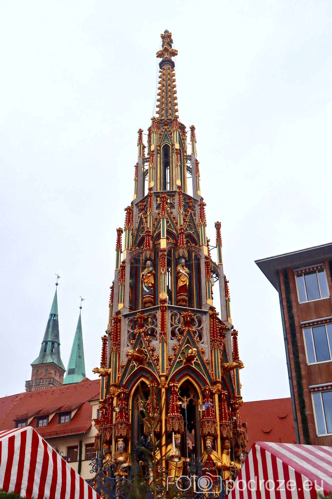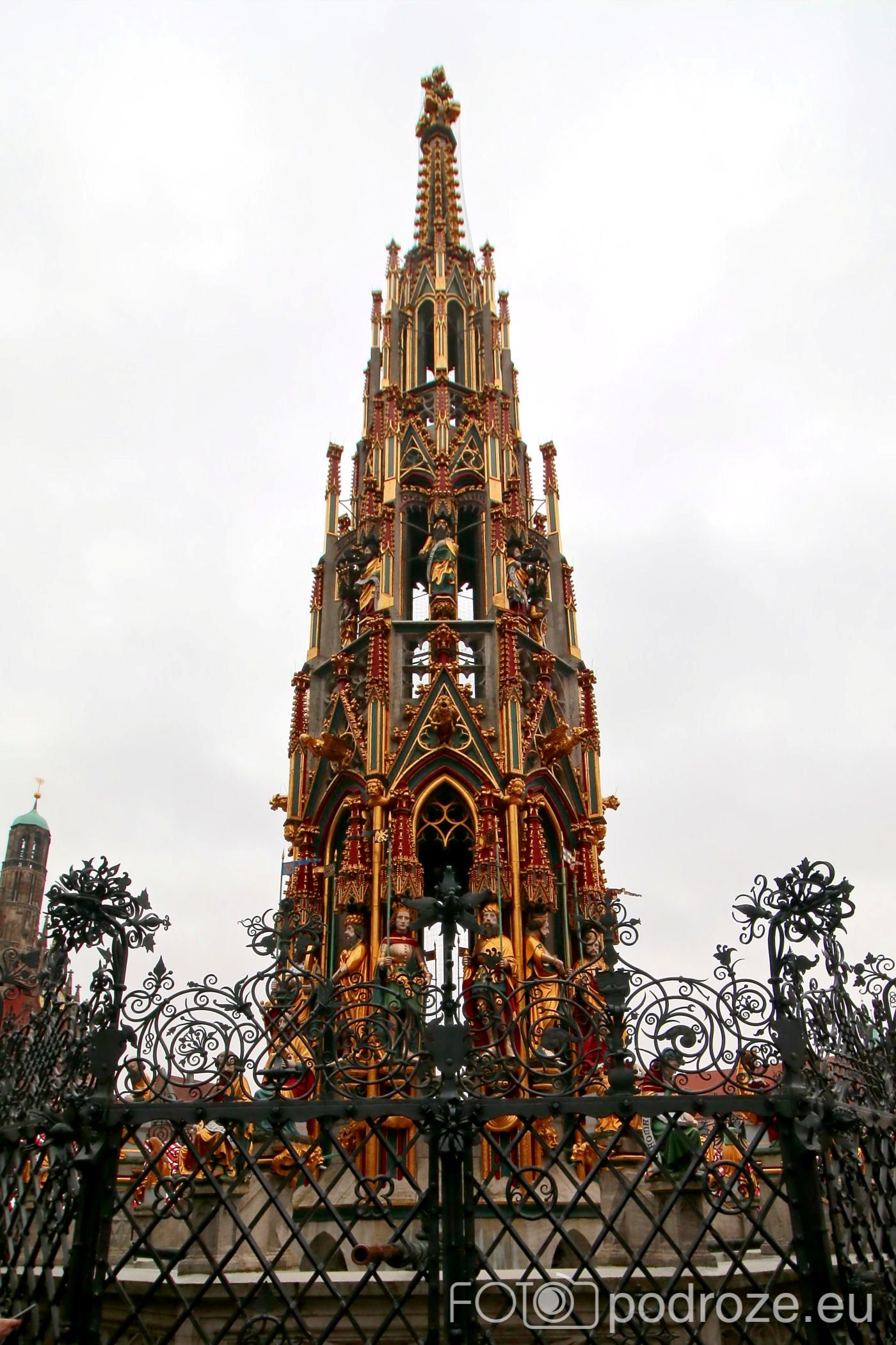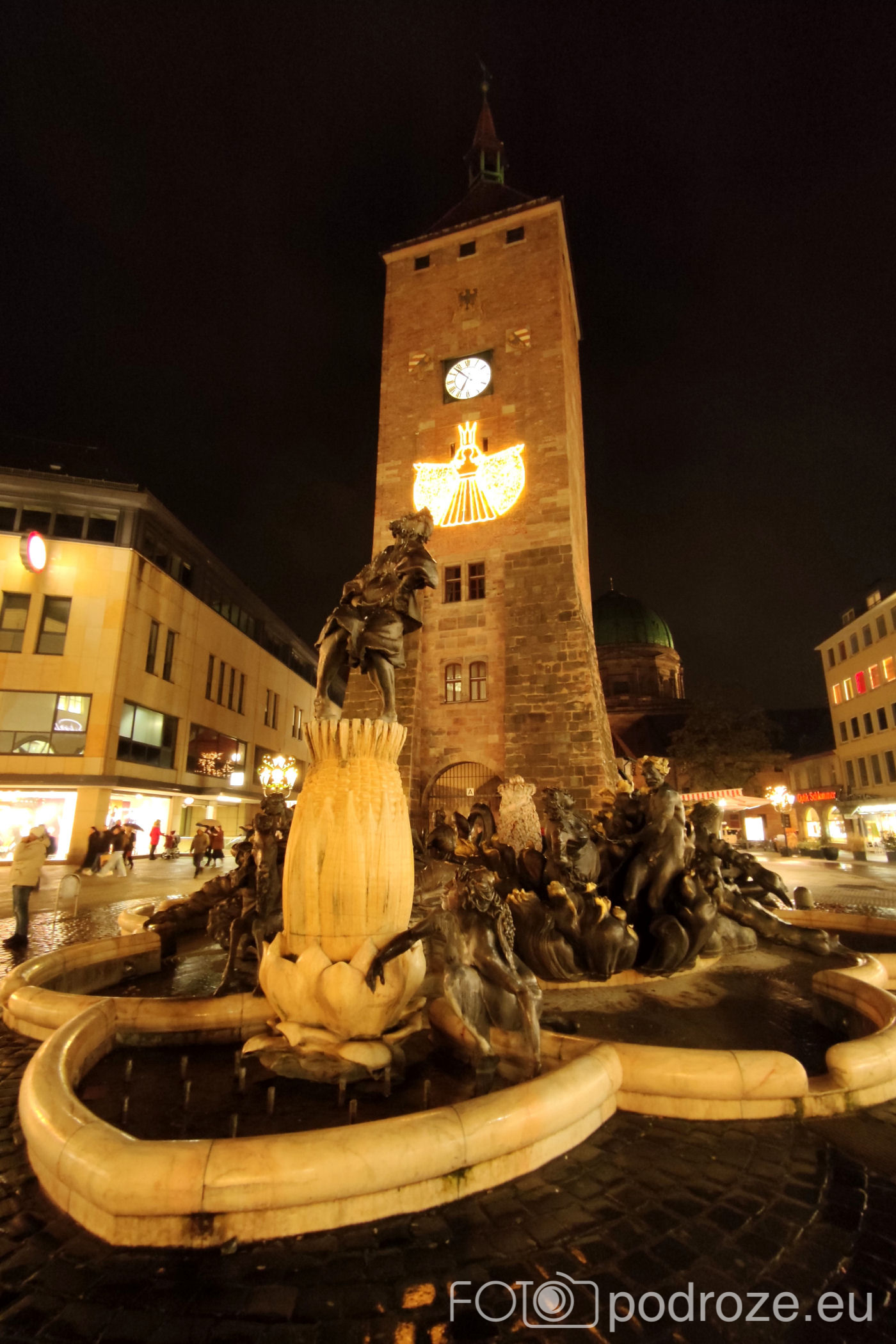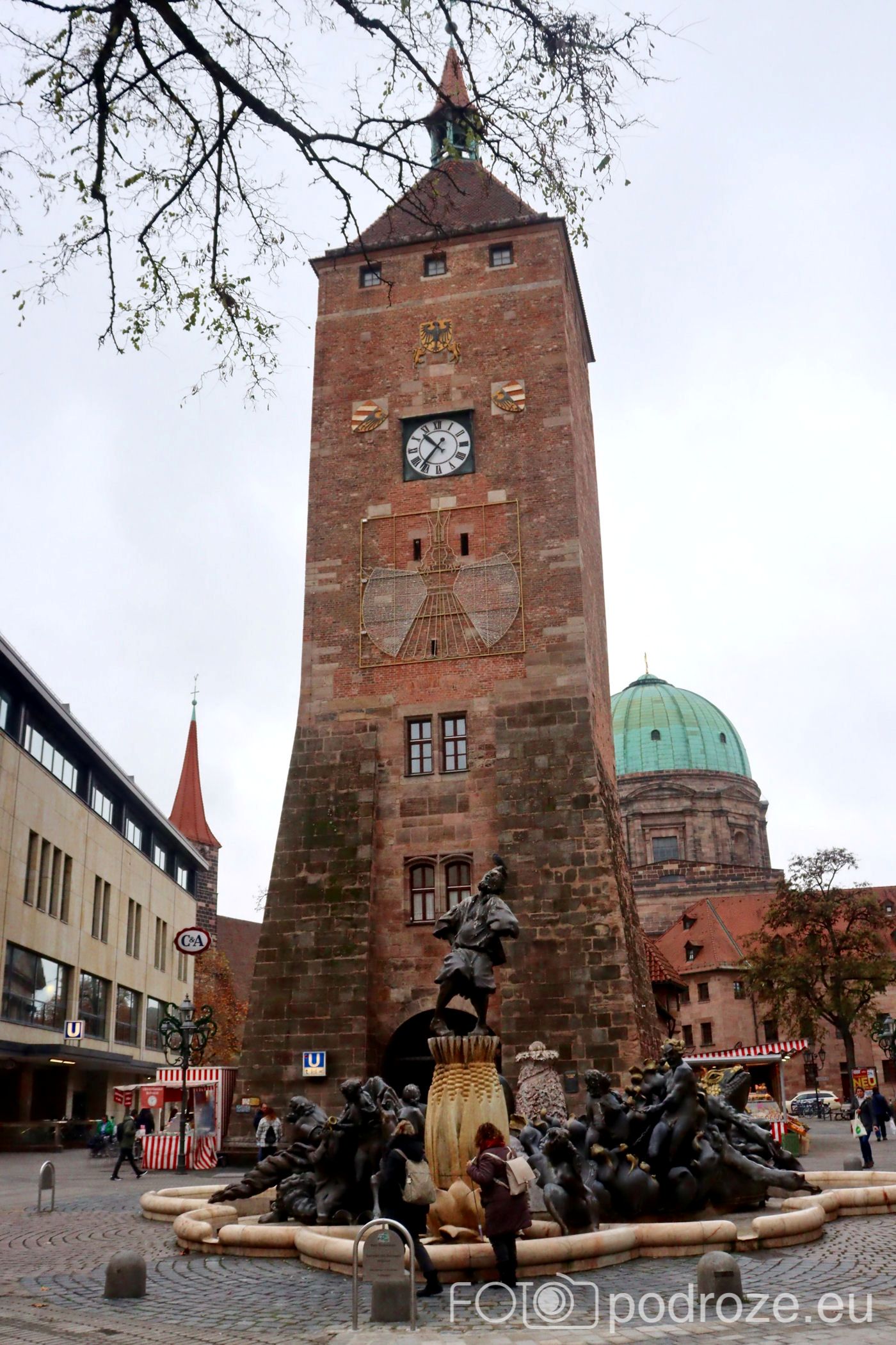Z jednego placu przechodzimy płynnie na kolejny. Cały ten teren wyłączony jest z ruchu więc różnicę zobaczymy, bo wyrośnie przed nami ciekawa wieża. Tuż za nią znajduje się najciekawsza fontanna w Norymberdze, a wzdłuż ciągną się pasaże galerii handlowych.