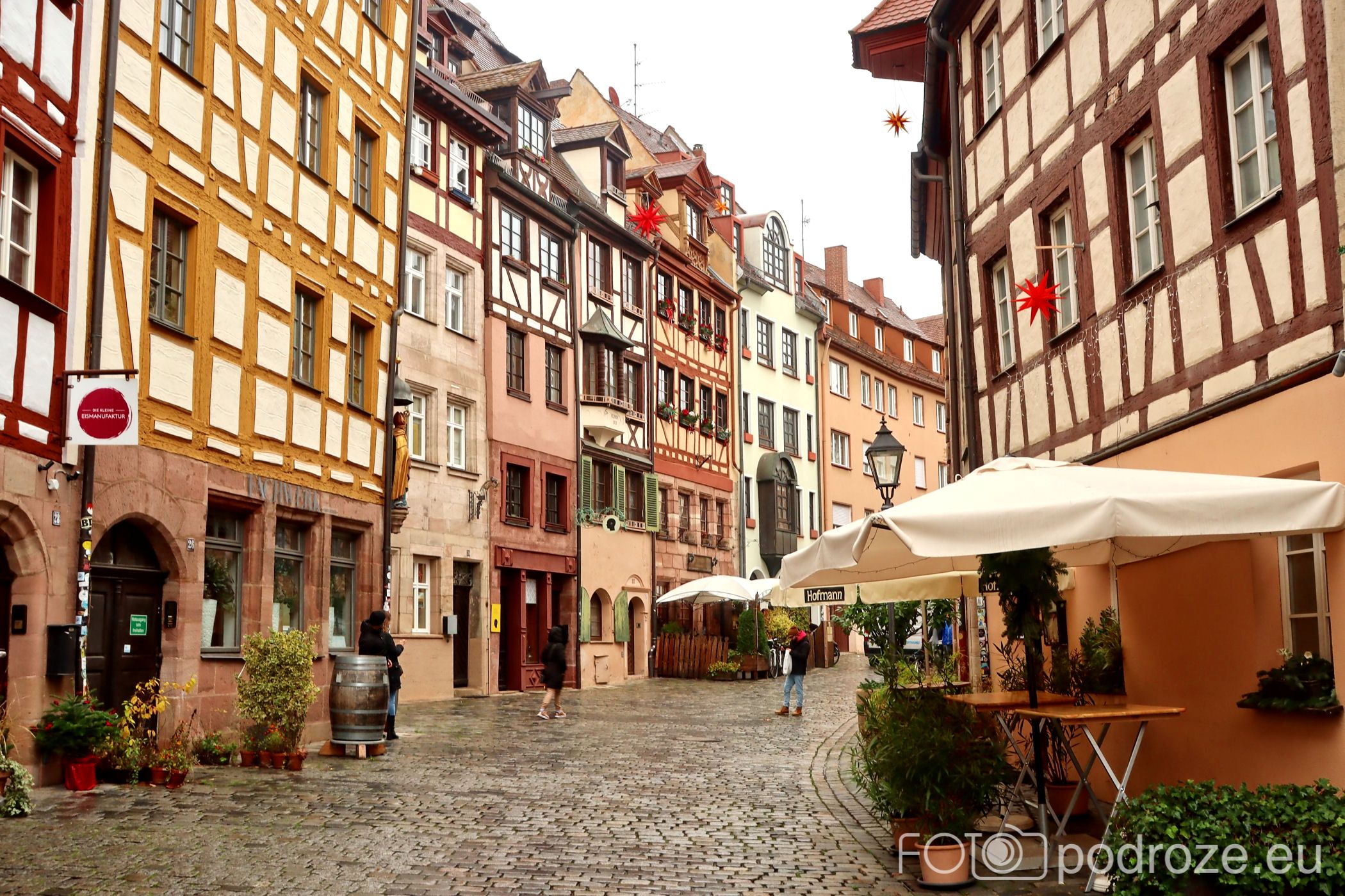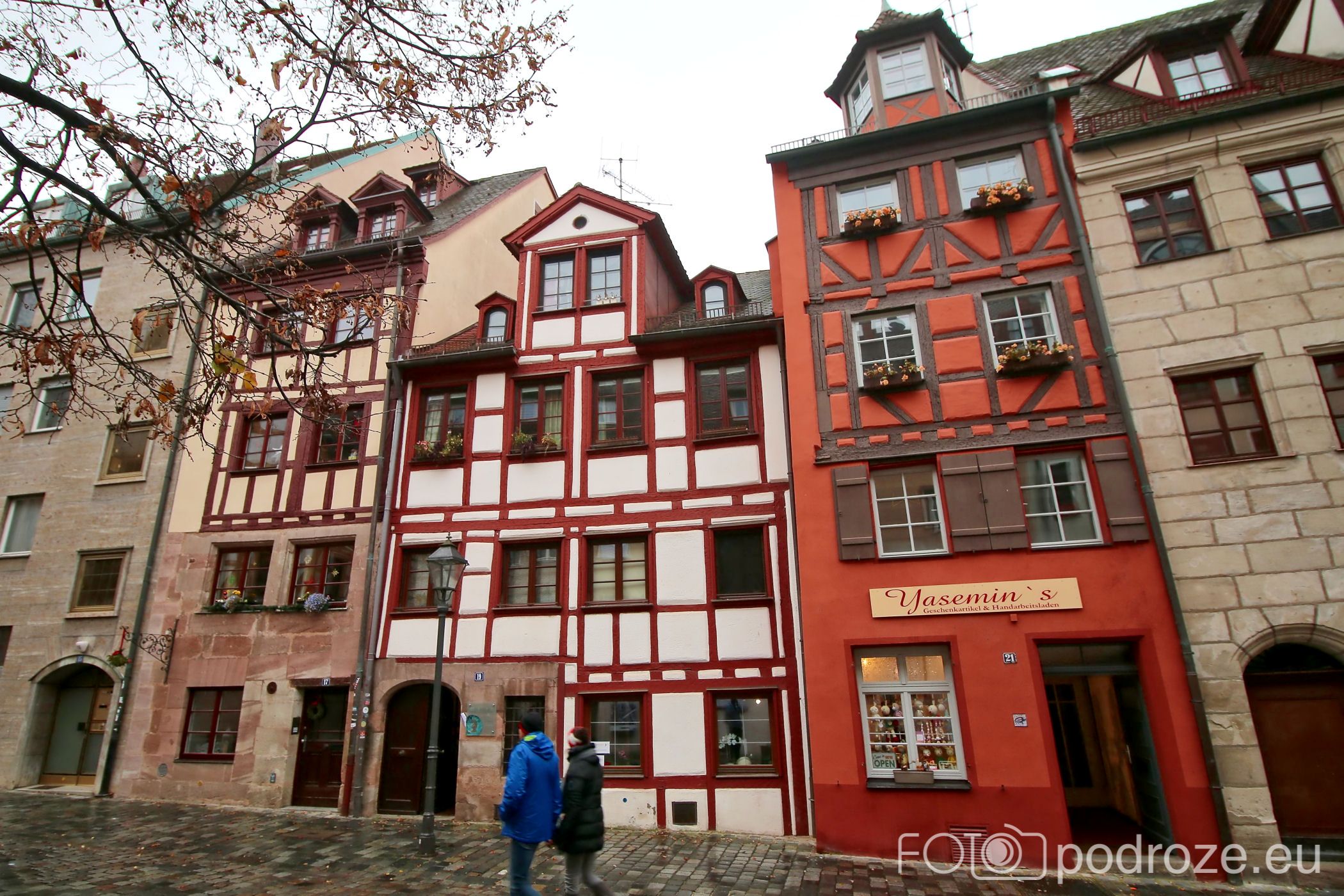 Jeśli od placu skierujemy się na zachód trafimy na najpiękniejszą i najbardziej urocza i kolorową uliczkę w całej Norymberdze. Spacer malowniczym Zaułkiem Białoskórników to atrakcja obowiązkowa. Pojawiliśmy się wiec tu zarówno w dzień jak i wieczorem. Po obu stronach ulicy ciągną się tu budynki o konstrukcji szachulcowej. Część z nich to nawet oryginalna zabudowa średniowieczna, ale większość wybudowana na wzór istniejącej tu przed wojną zabudowy.