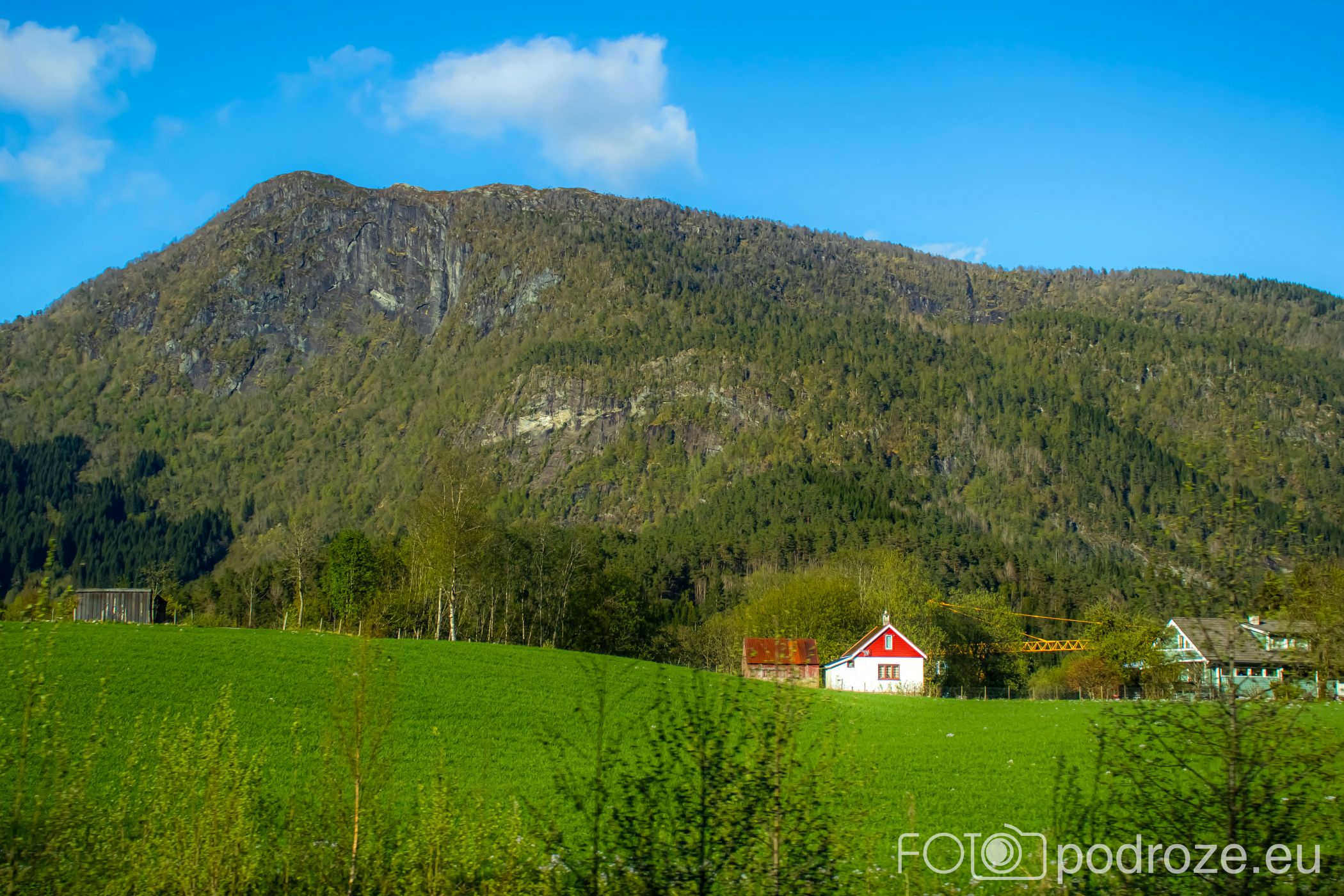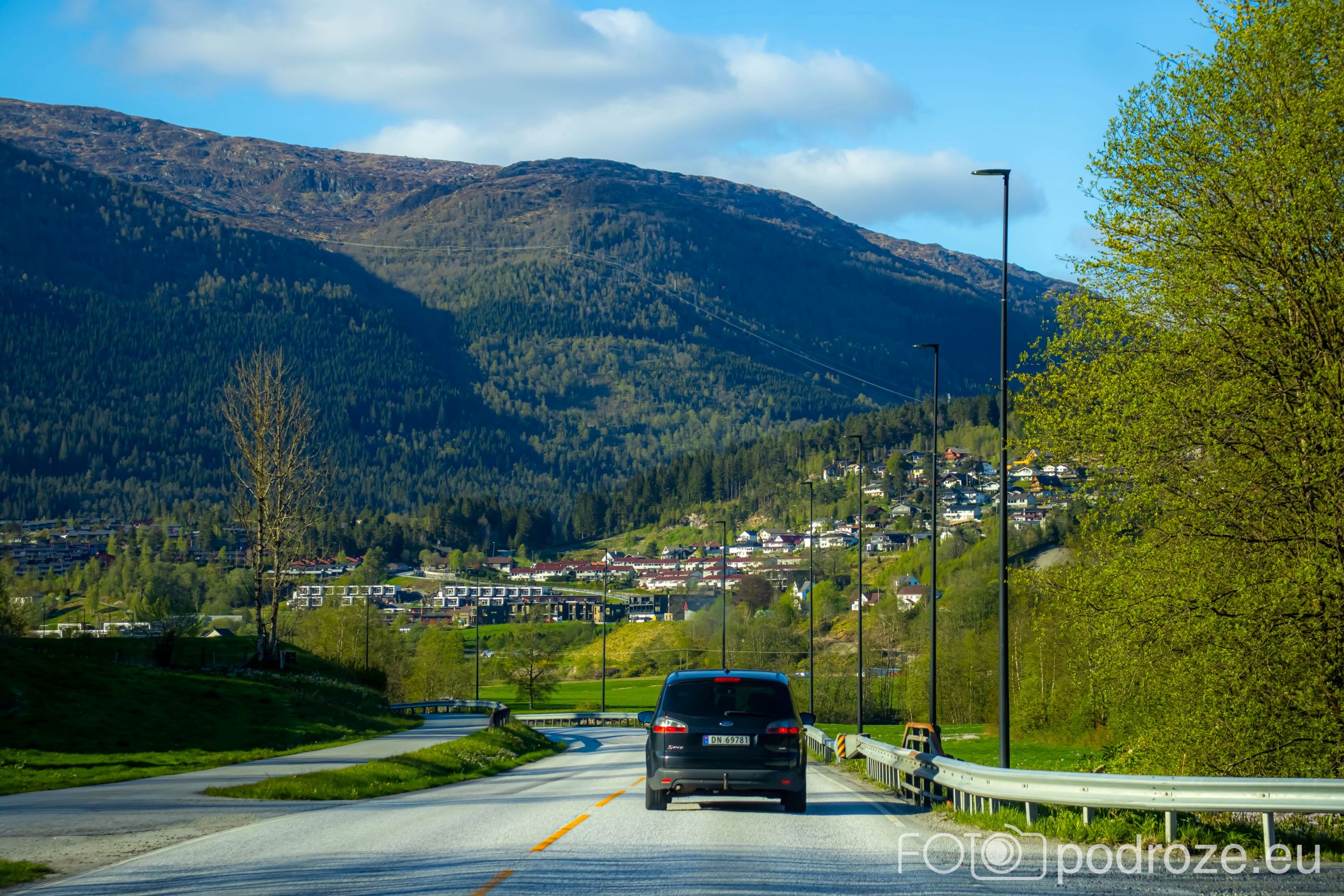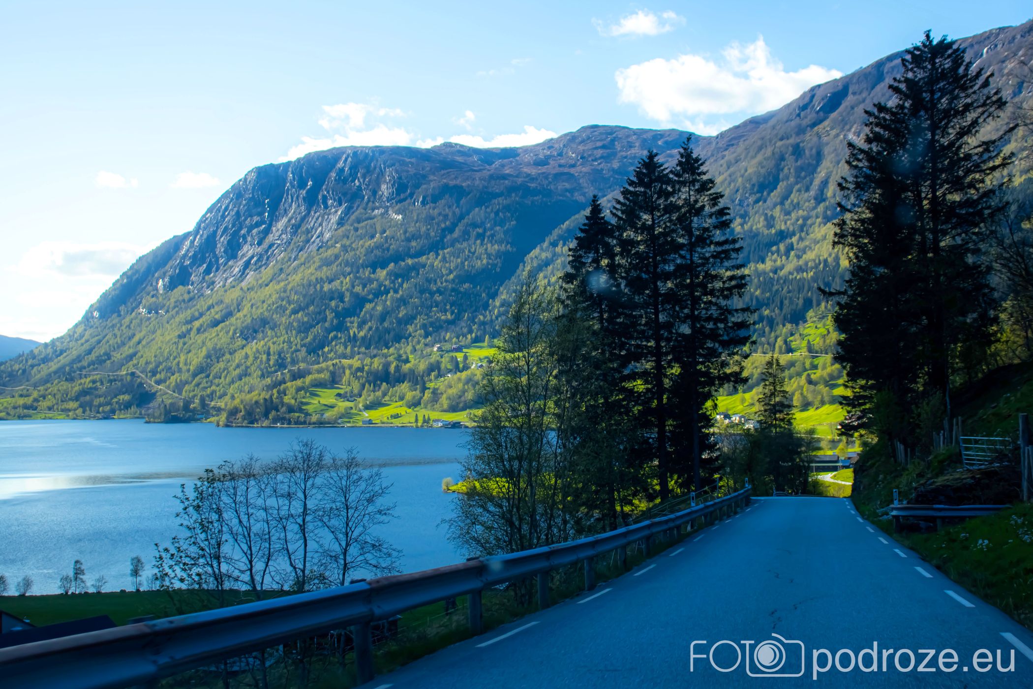 Wyjeżdżając z miasta i kierując się na południe (na lotnisko w Bergen), postanowiliśmy przejechać się tym razem jeszcze inną trasą. Droga wzdłuż fiordu Dalsfjorden jest troszeczkę dłuższa, ale za to przed nami nowe, nieznane widoki.