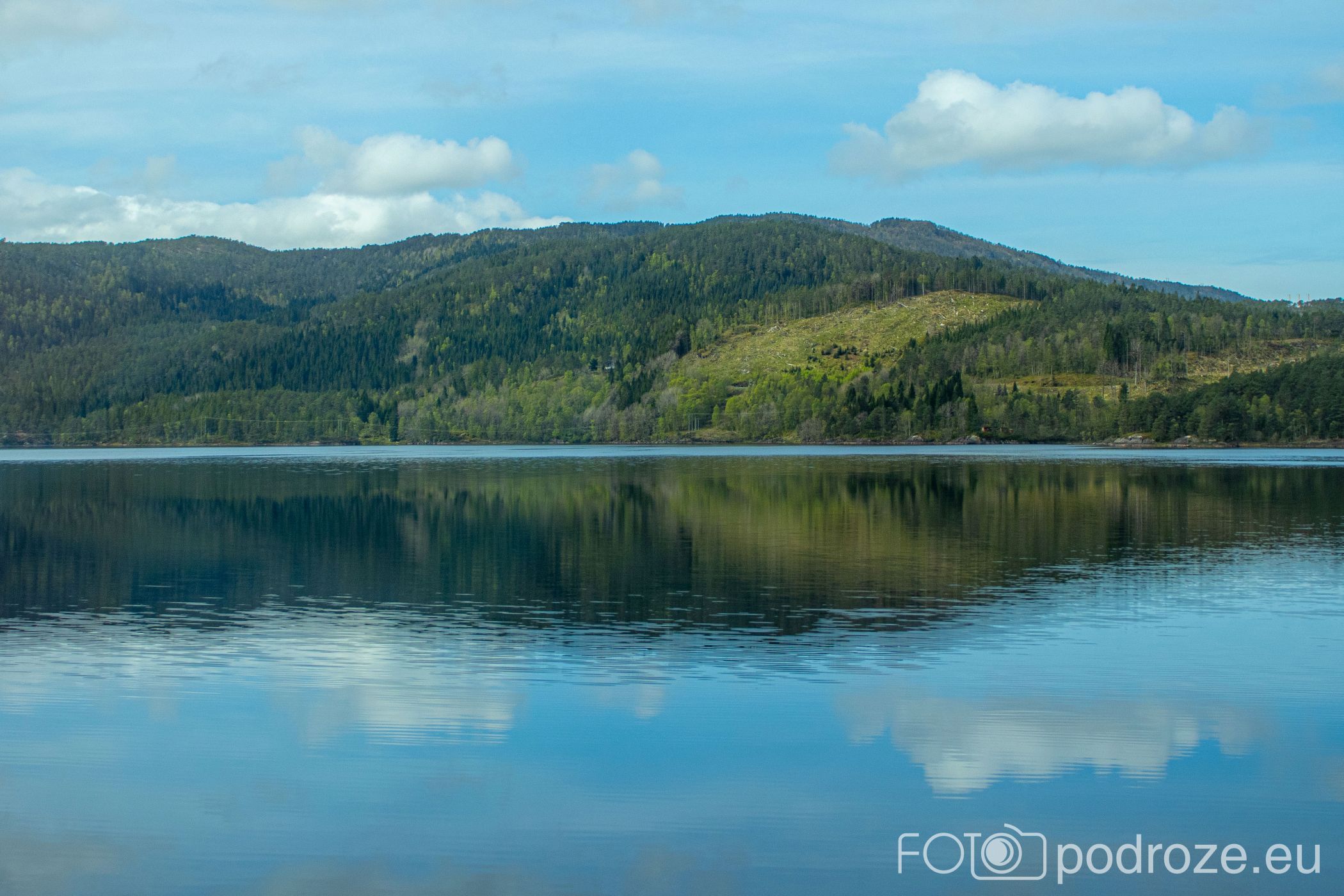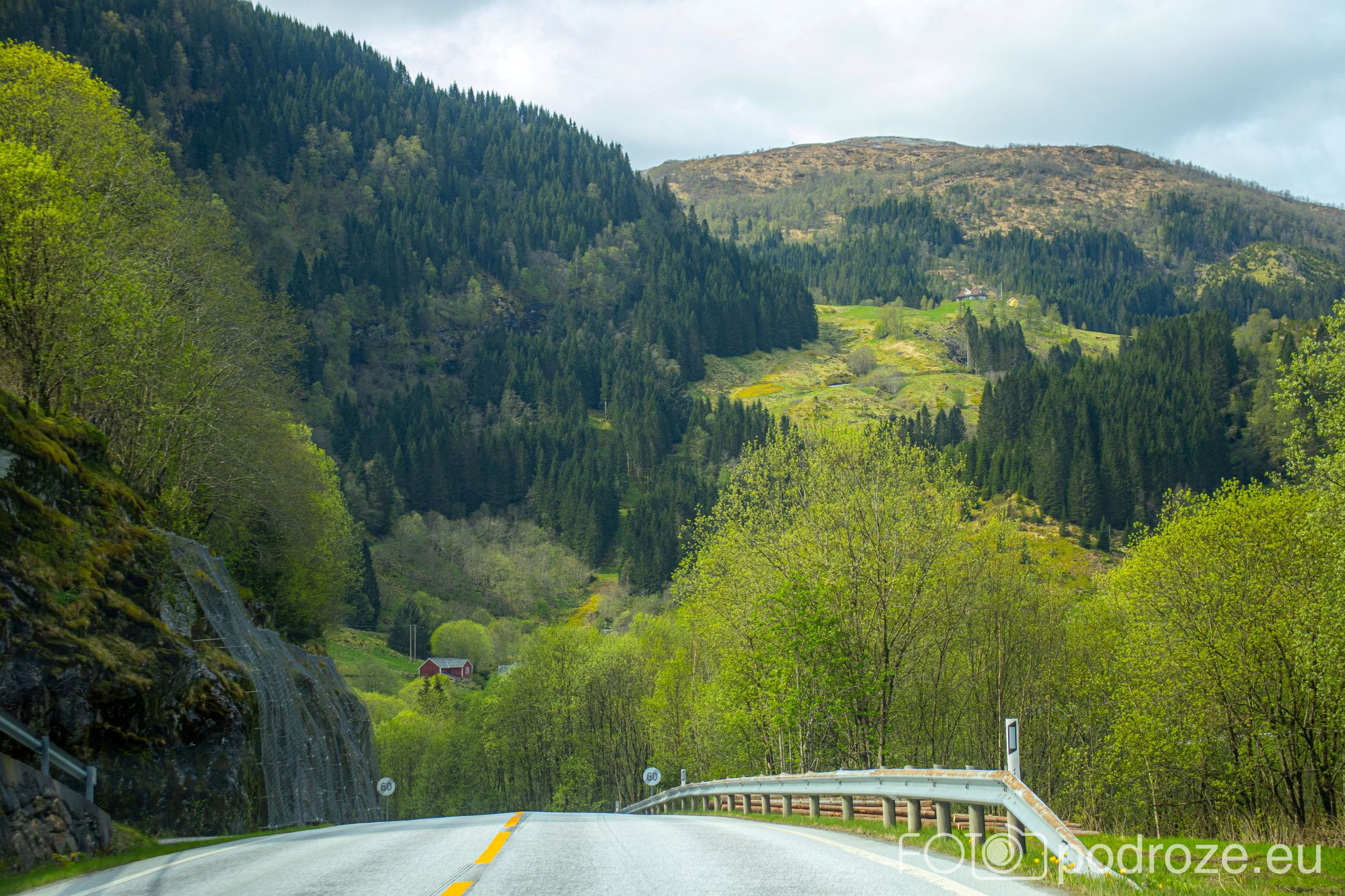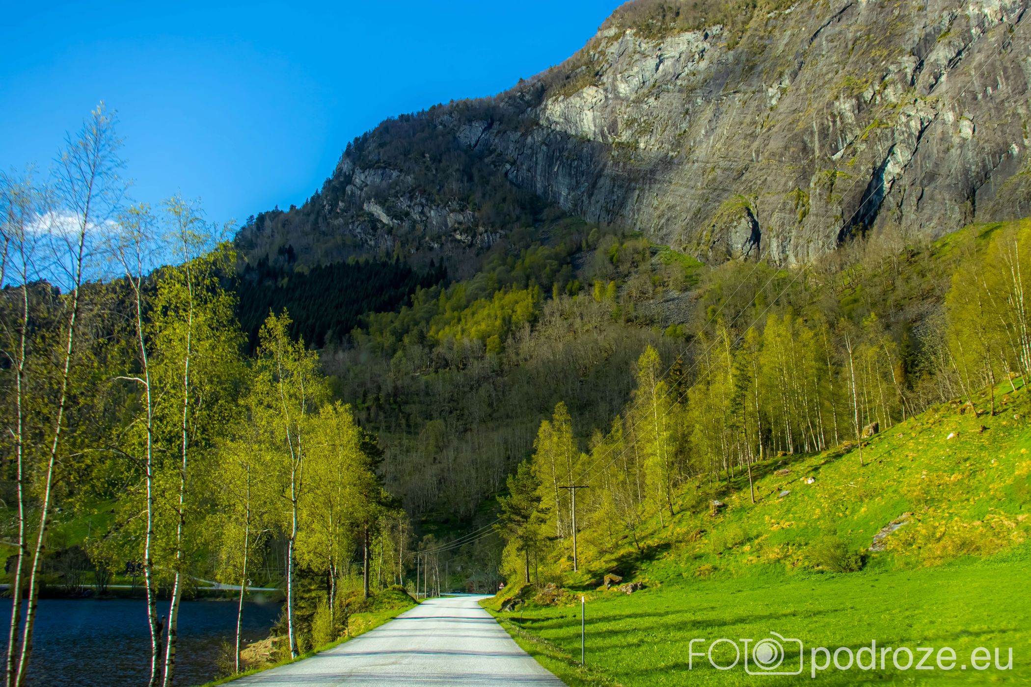 Wyjeżdżając z miasta i kierując się na południe (na lotnisko w Bergen), postanowiliśmy przejechać się tym razem jeszcze inną trasą. Droga wzdłuż fiordu Dalsfjorden jest troszeczkę dłuższa, ale za to przed nami nowe, nieznane widoki.