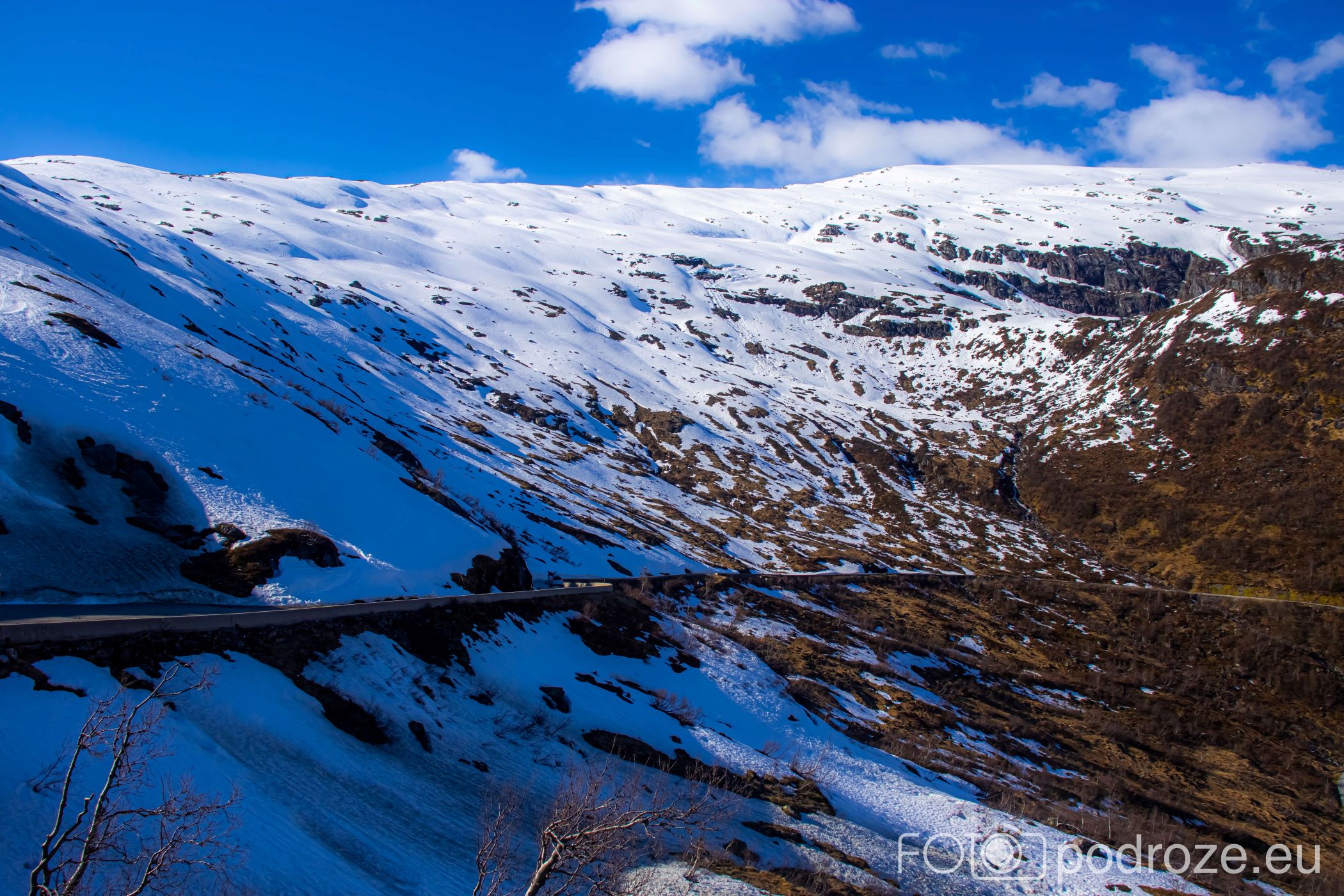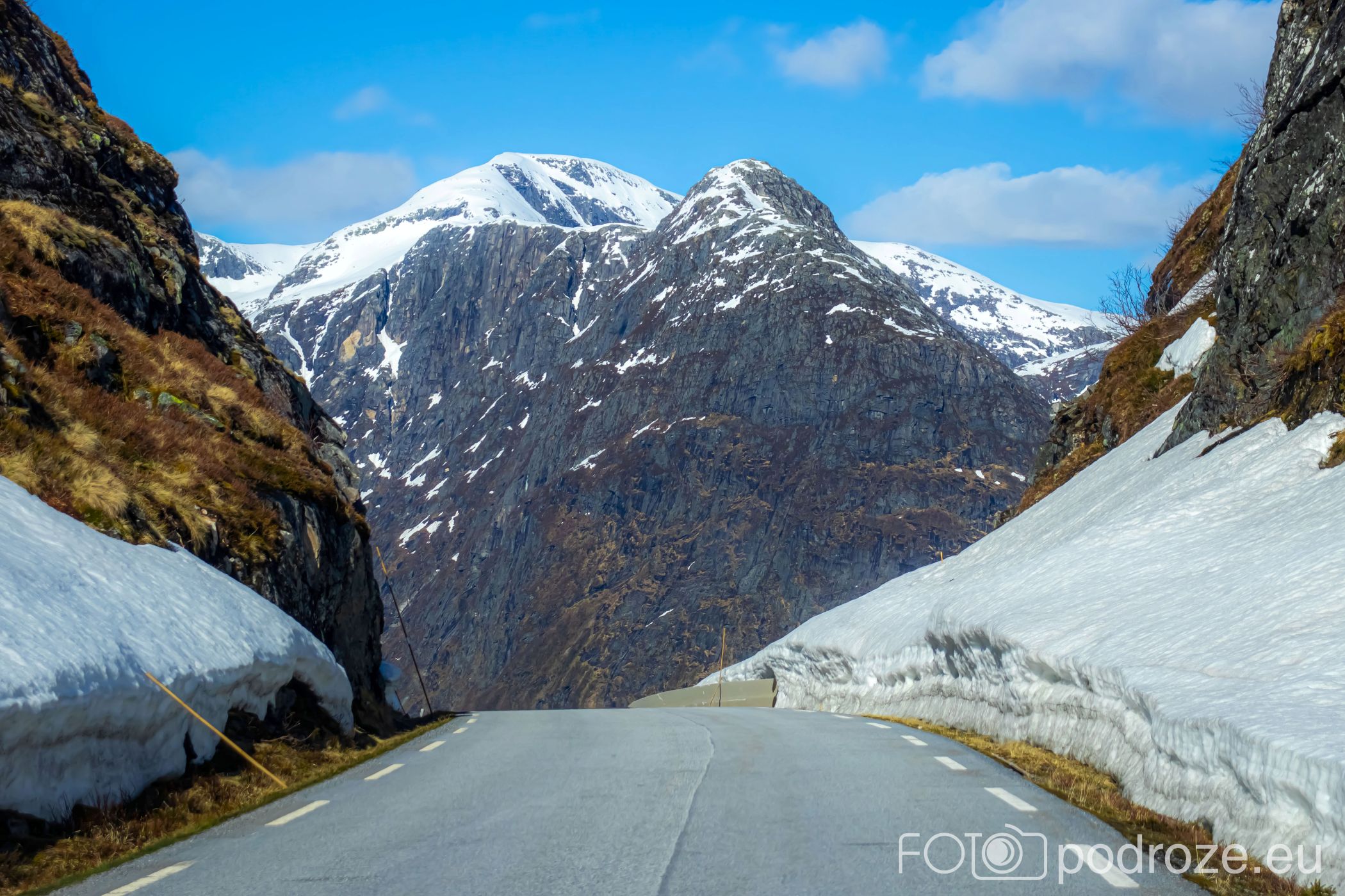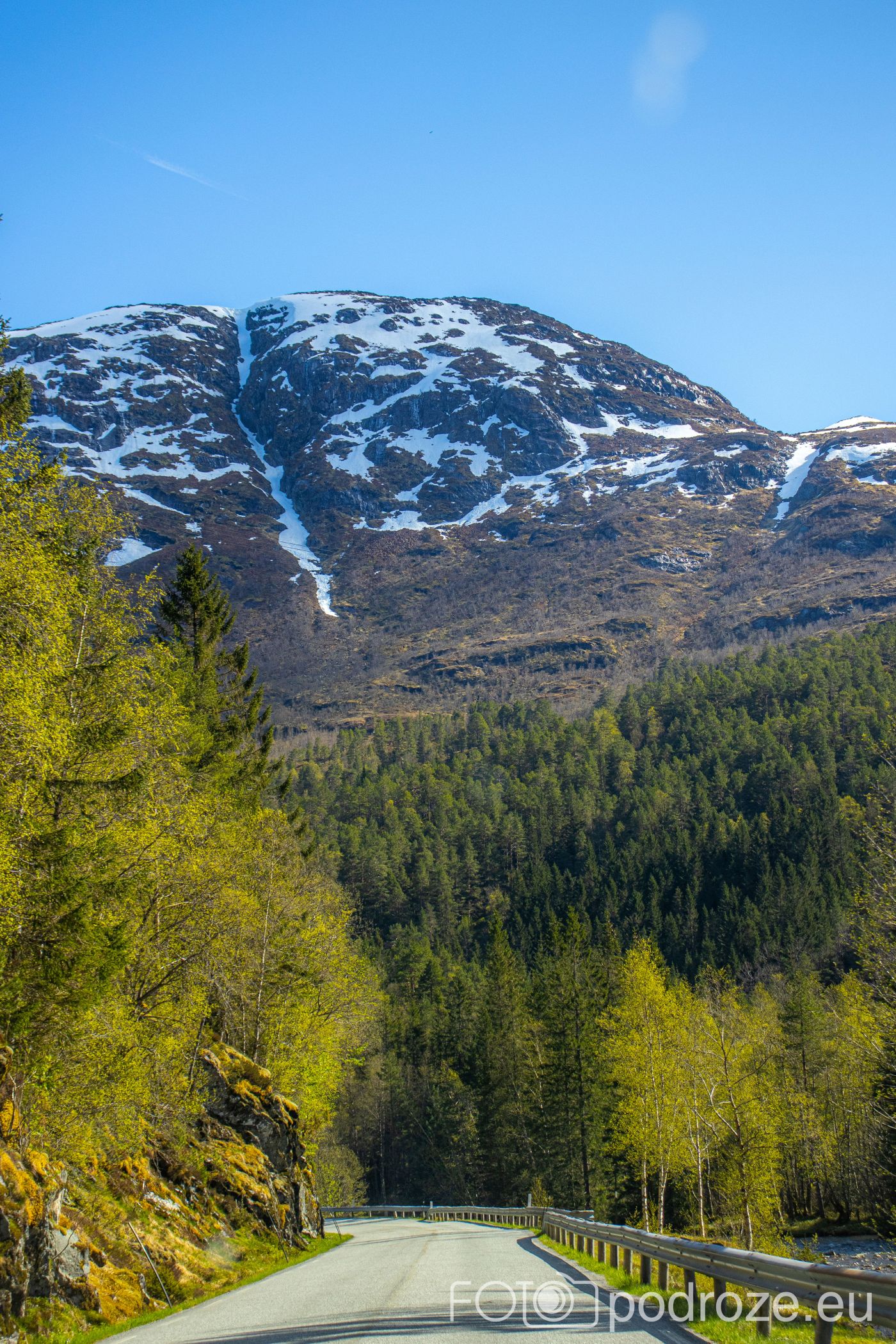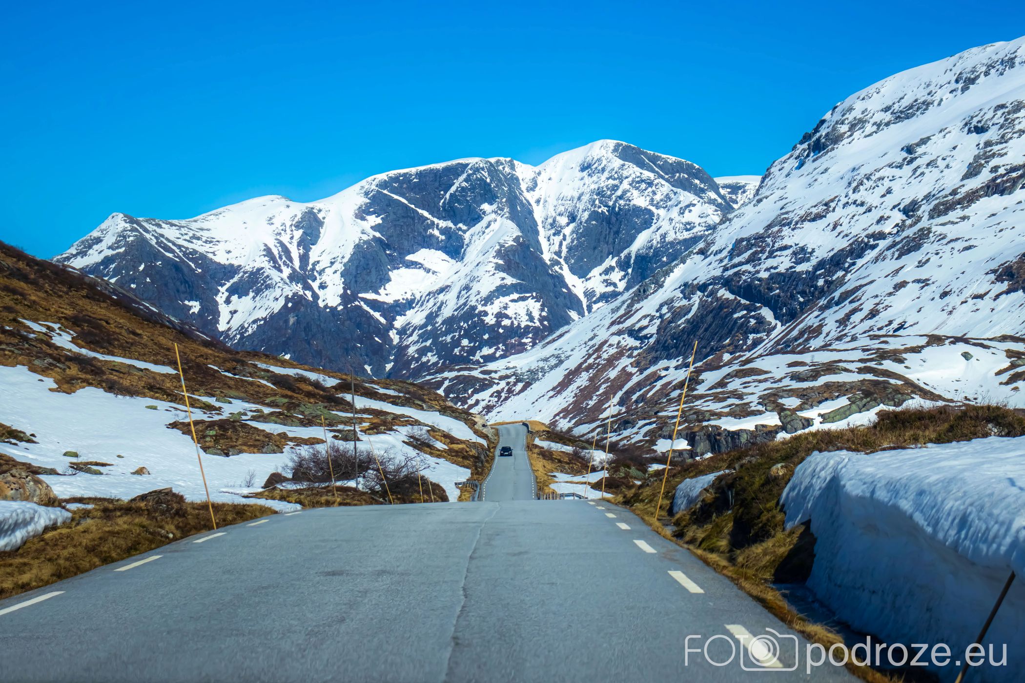 Im dalej na wschód, tym piękniej. Droga zwana Gaularfjellet to jedna z najbardziej malowniczych tras widokowych w Norwegii, należąca do sieci Norweskich Dróg Krajobrazowych. Trasa prowadzi przez dzikie i surowe tereny, łącząc miejscowości Balestrand i Moskog (w pobliżu Førde). Cała droga Gaularfjellet ma około 114 km długości i najlepiej pokonywać ją samochodem, zatrzymując się w licznych punktach widokowych i miejscach odpoczynku. Ze względu na warunki pogodowe droga jest zazwyczaj dostępna od późnej wiosny do jesieni. Śniegu tu w maju jeszcze pod dostatkiem.