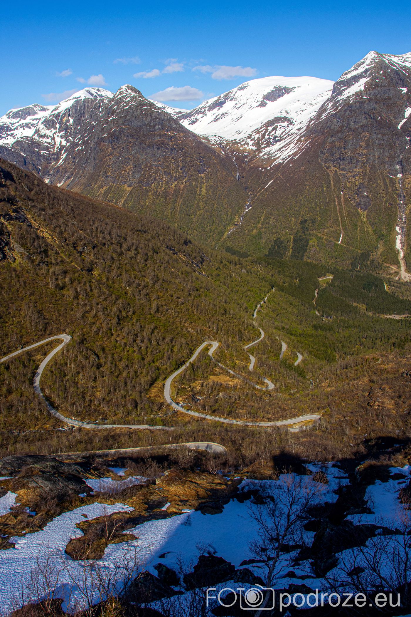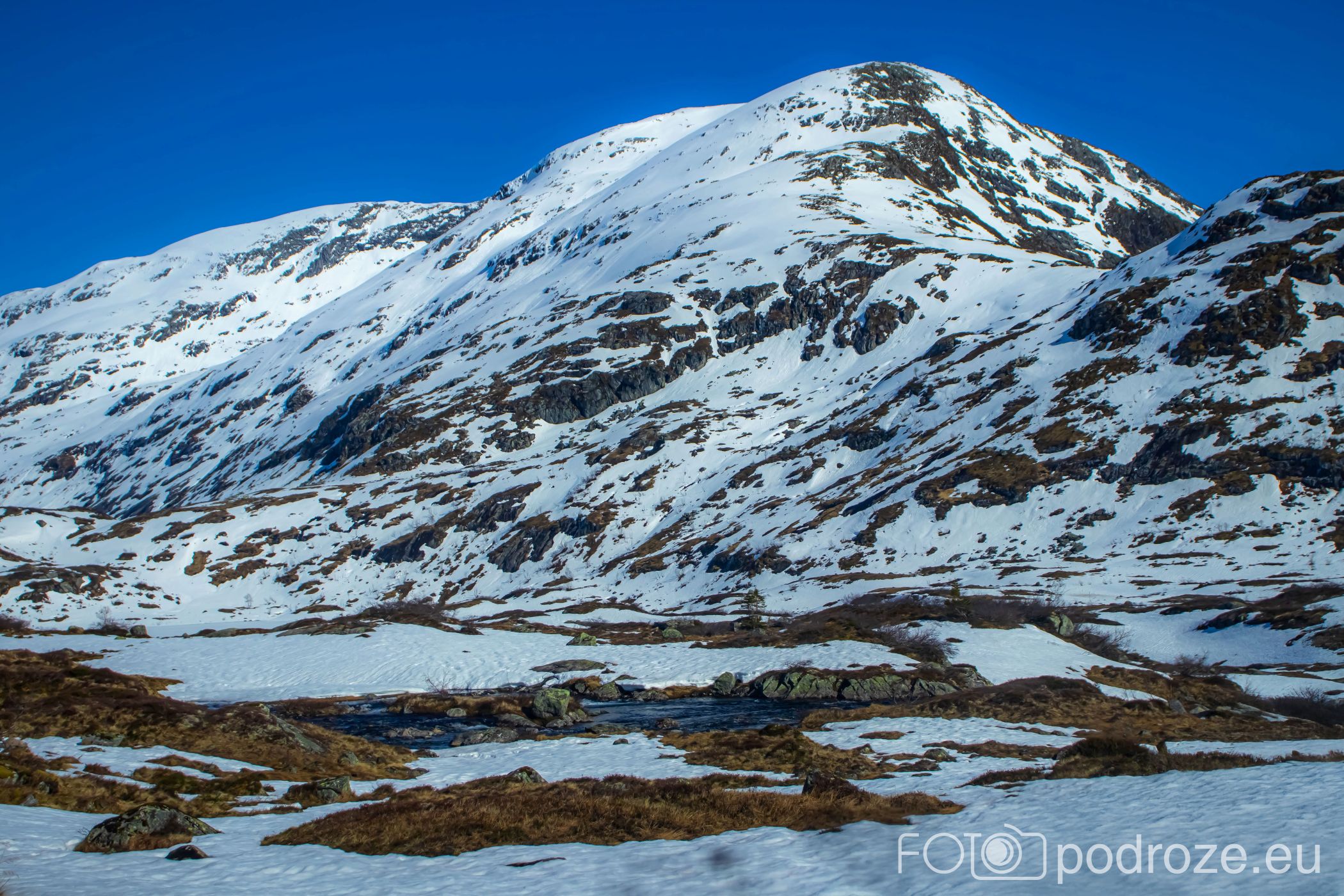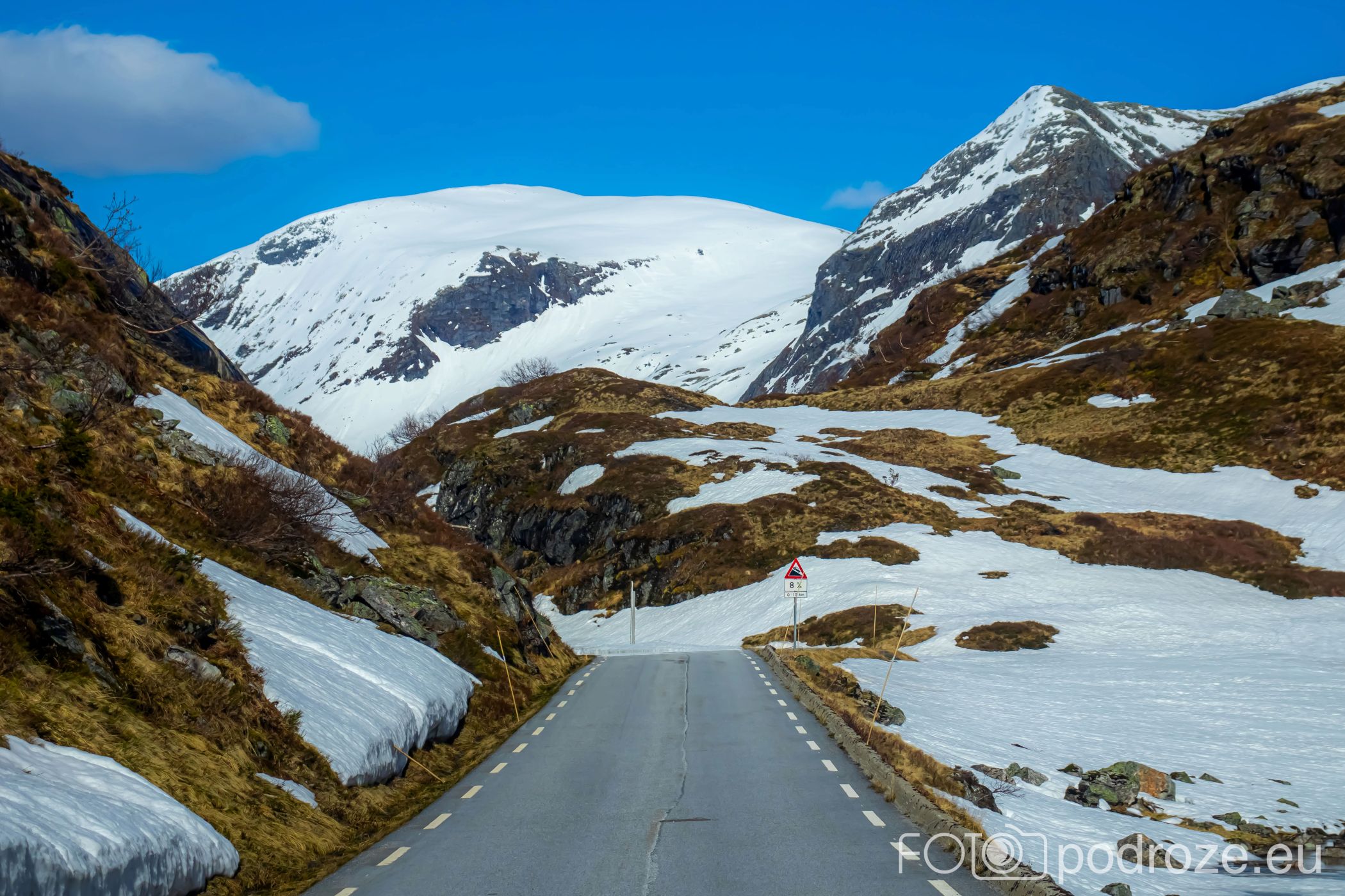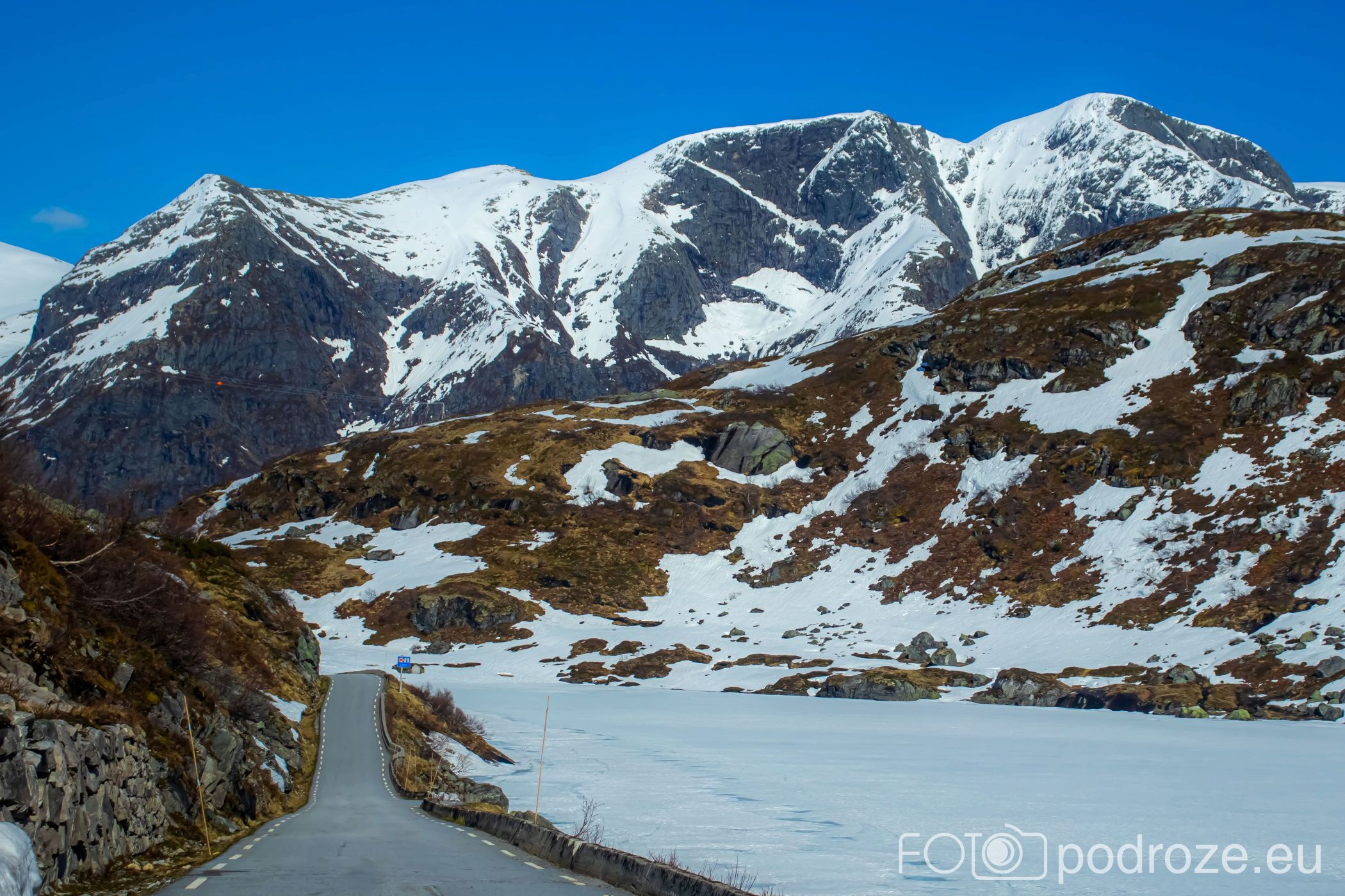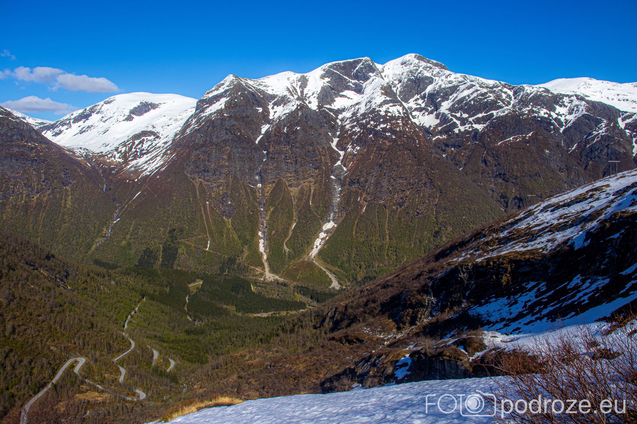 Im dalej na wschód, tym piękniej. Droga zwana Gaularfjellet to jedna z najbardziej malowniczych tras widokowych w Norwegii, należąca do sieci Norweskich Dróg Krajobrazowych. Trasa prowadzi przez dzikie i surowe tereny, łącząc miejscowości Balestrand i Moskog (w pobliżu Førde). Cała droga Gaularfjellet ma około 114 km długości i najlepiej pokonywać ją samochodem, zatrzymując się w licznych punktach widokowych i miejscach odpoczynku. Ze względu na warunki pogodowe droga jest zazwyczaj dostępna od późnej wiosny do jesieni. Śniegu tu w maju jeszcze pod dostatkiem.