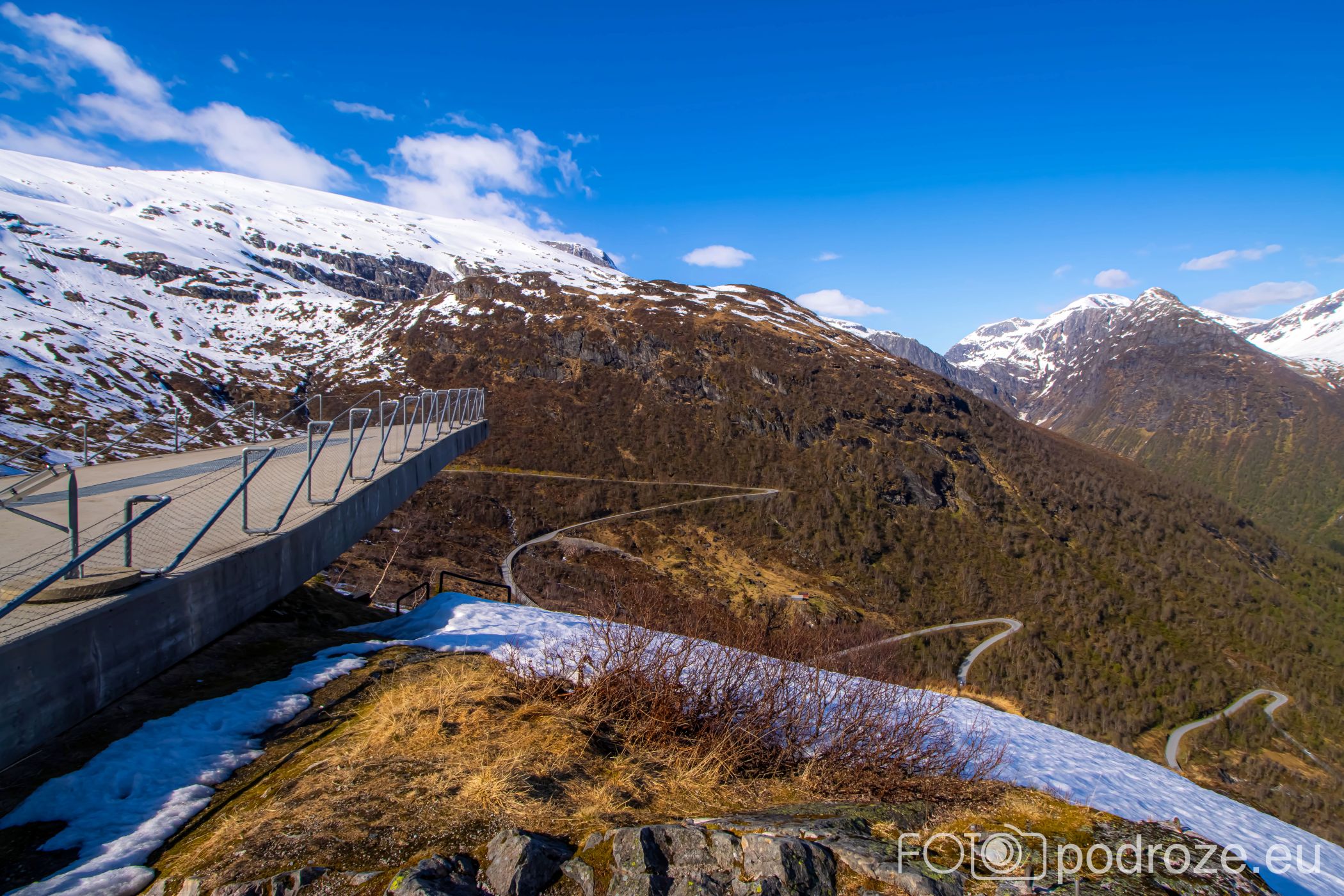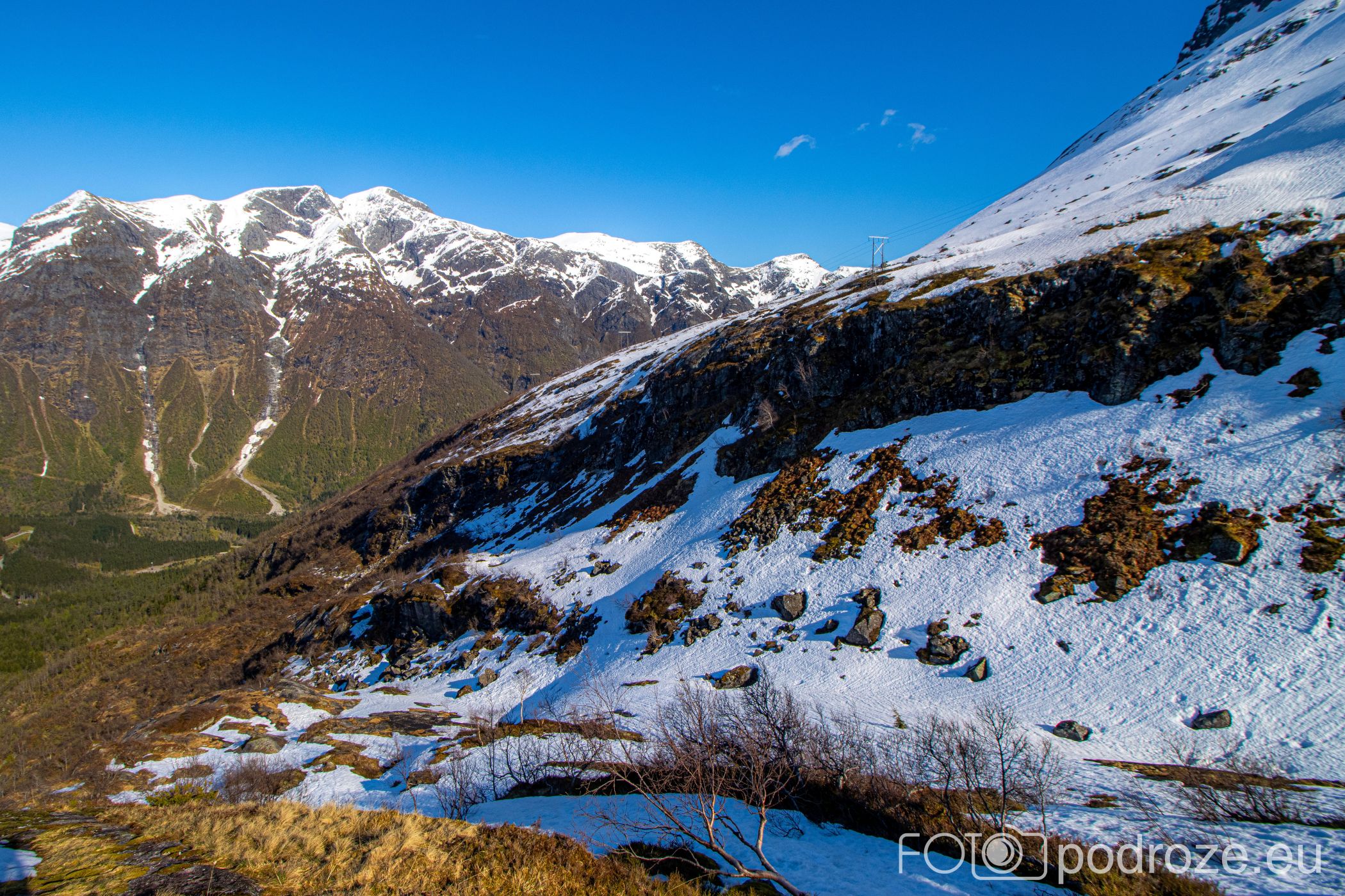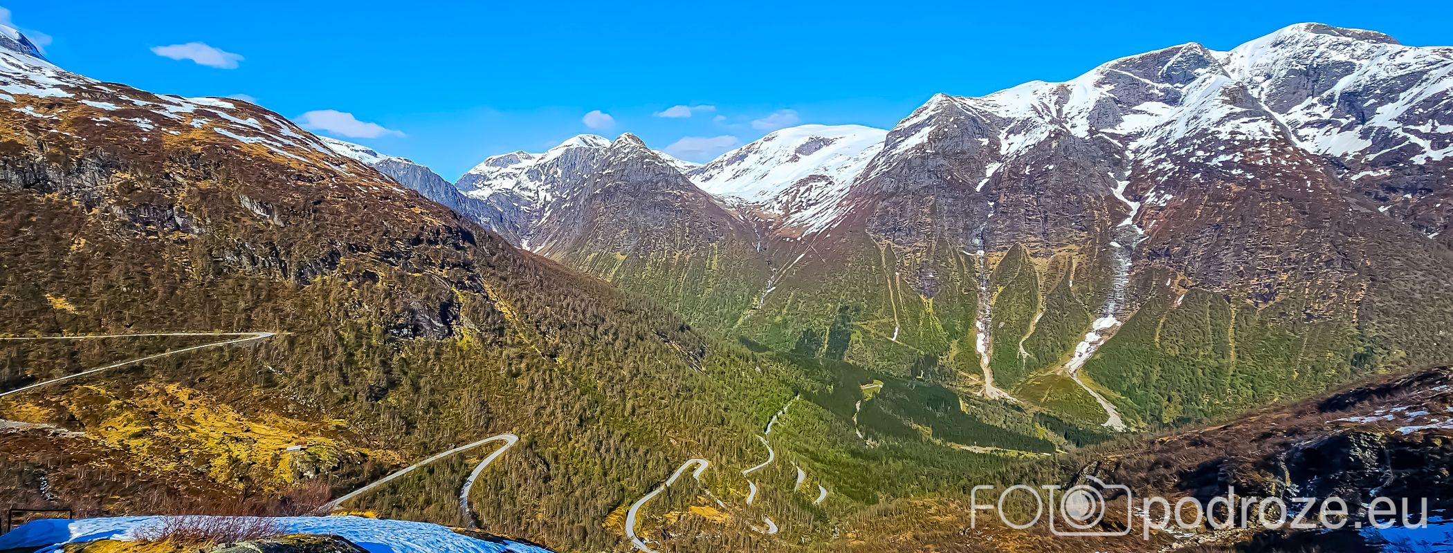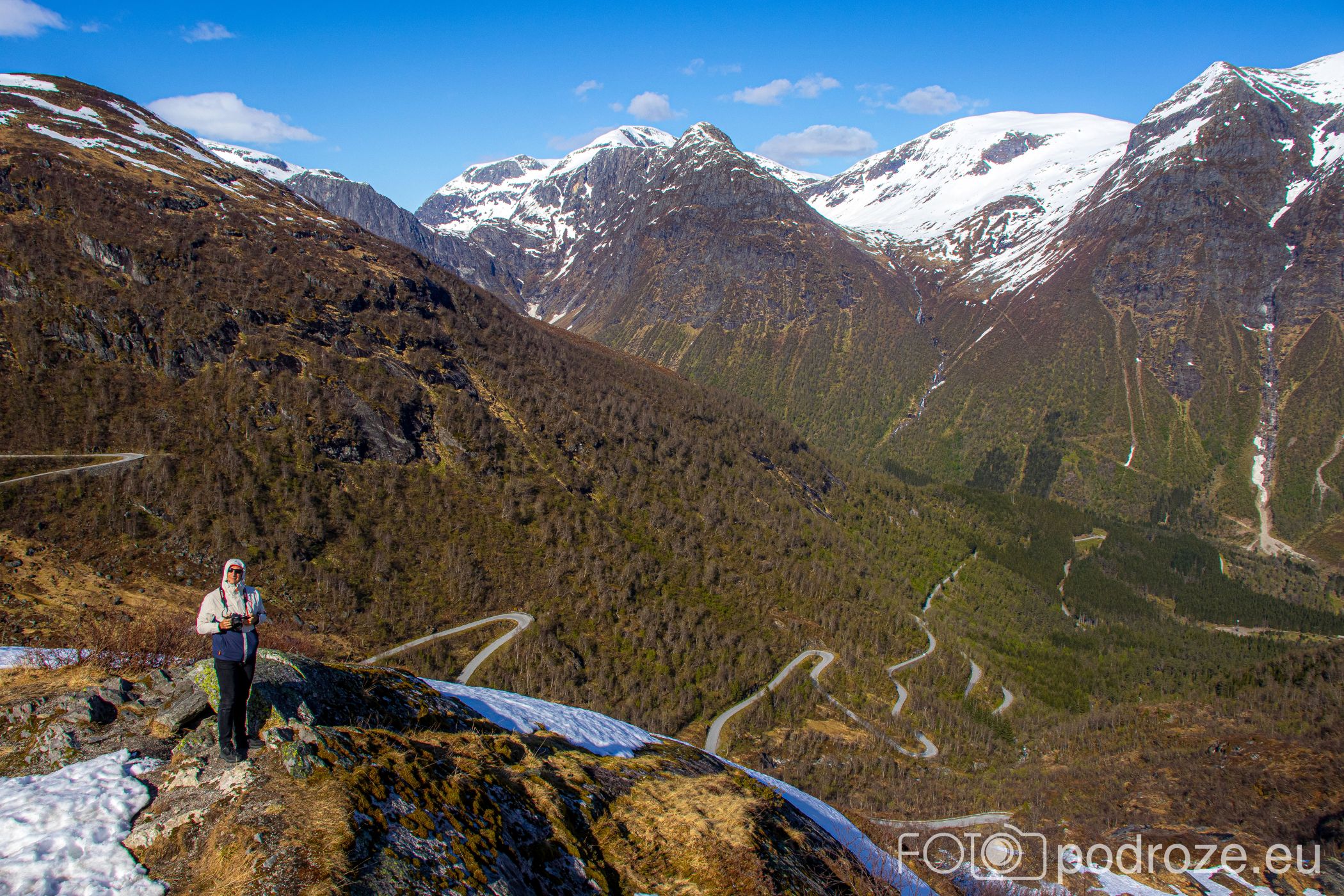 Im dalej na wschód, tym piękniej. Droga zwana Gaularfjellet to jedna z najbardziej malowniczych tras widokowych w Norwegii, należąca do sieci Norweskich Dróg Krajobrazowych. Trasa prowadzi przez dzikie i surowe tereny, łącząc miejscowości Balestrand i Moskog (w pobliżu Førde). Cała droga Gaularfjellet ma około 114 km długości i najlepiej pokonywać ją samochodem, zatrzymując się w licznych punktach widokowych i miejscach odpoczynku. Ze względu na warunki pogodowe droga jest zazwyczaj dostępna od późnej wiosny do jesieni. Śniegu tu w maju jeszcze pod dostatkiem.