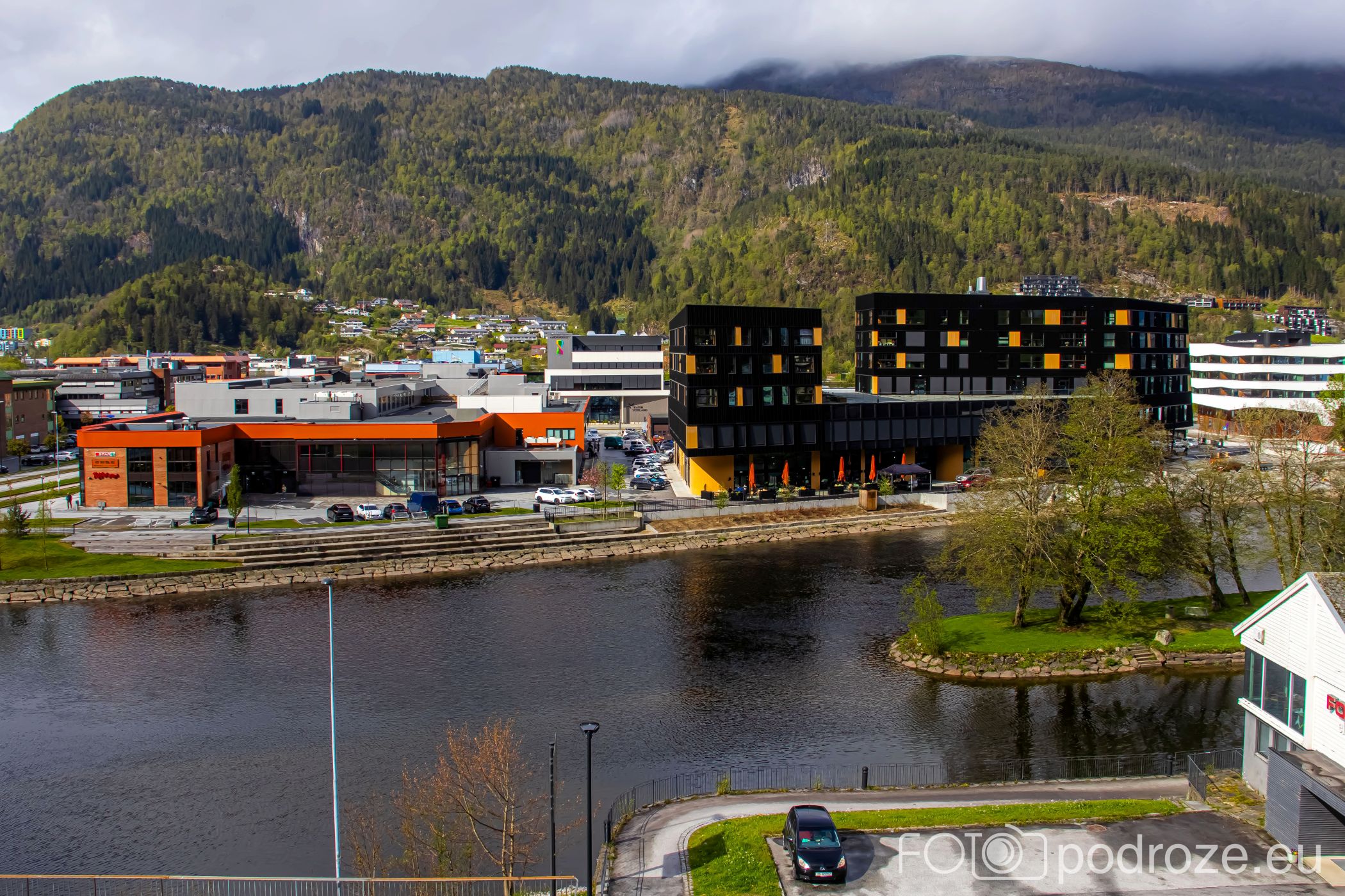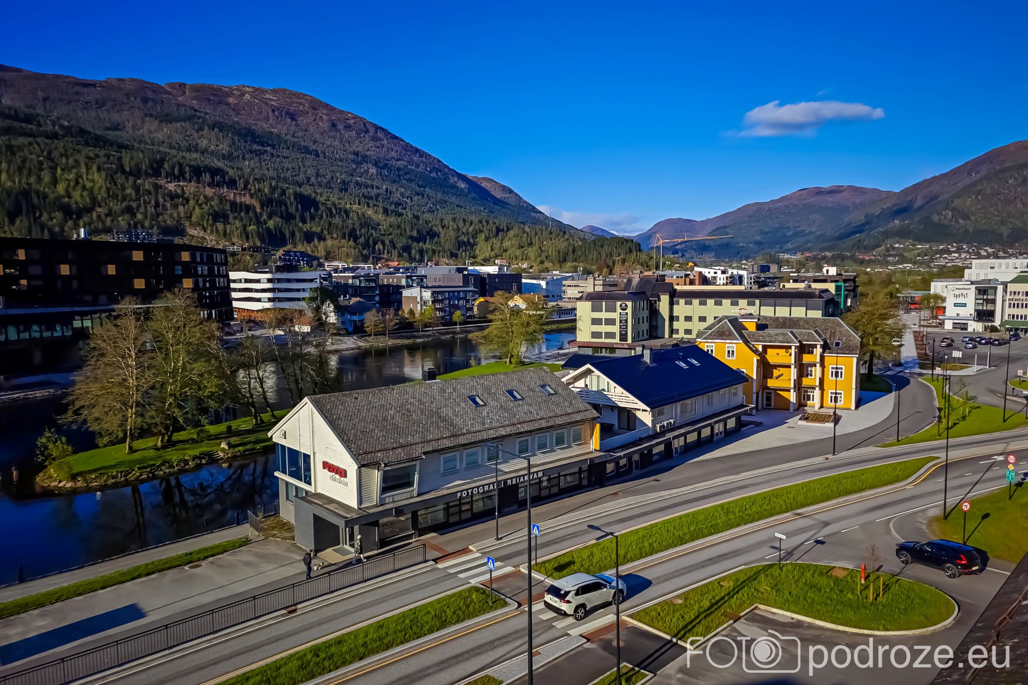 Førde Hotell – Unike Hoteller – klasyczny hotel w centrum, popularny wśród turystów i podróżujących służbowo, z dogodnym dostępem do usług i komunikacji. Tu nocowaliśmy, dlatego mogę hotelik polecić. Mieliśmy też fajny widok z okna na całe miasto.