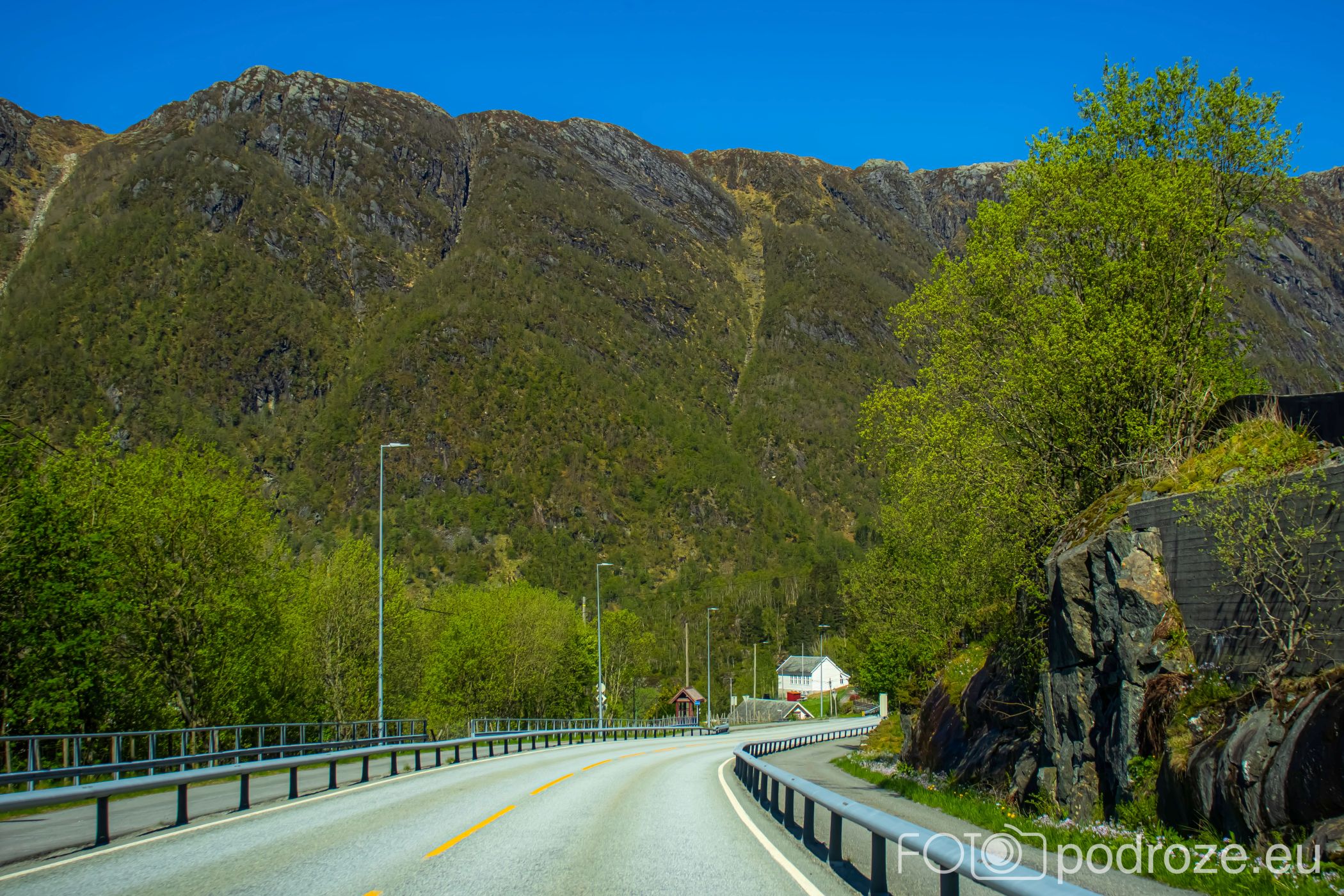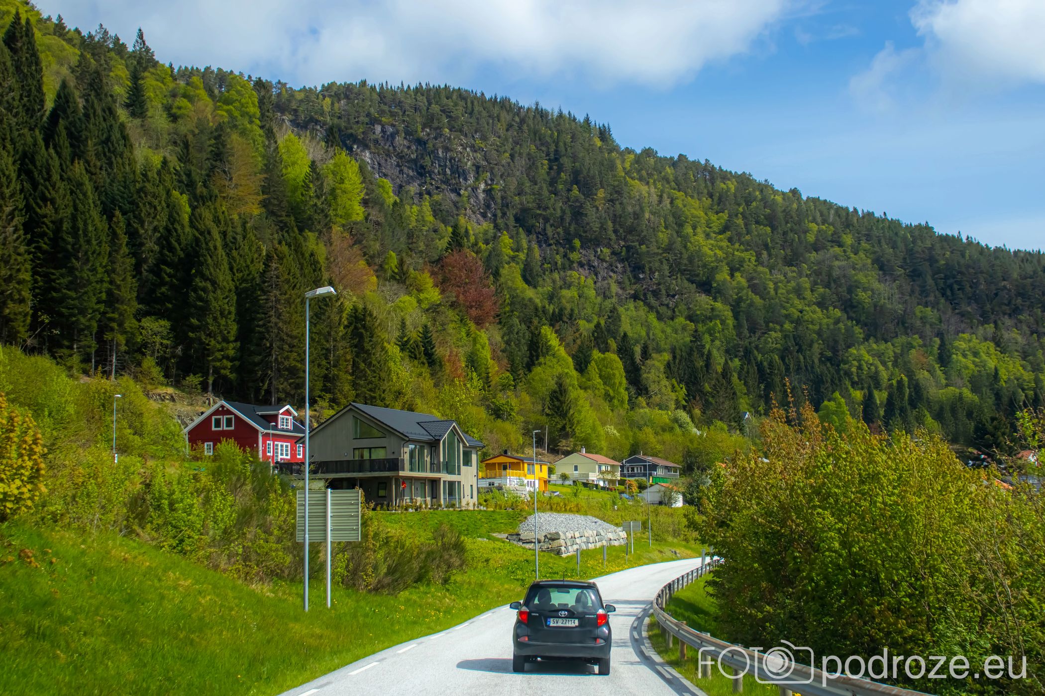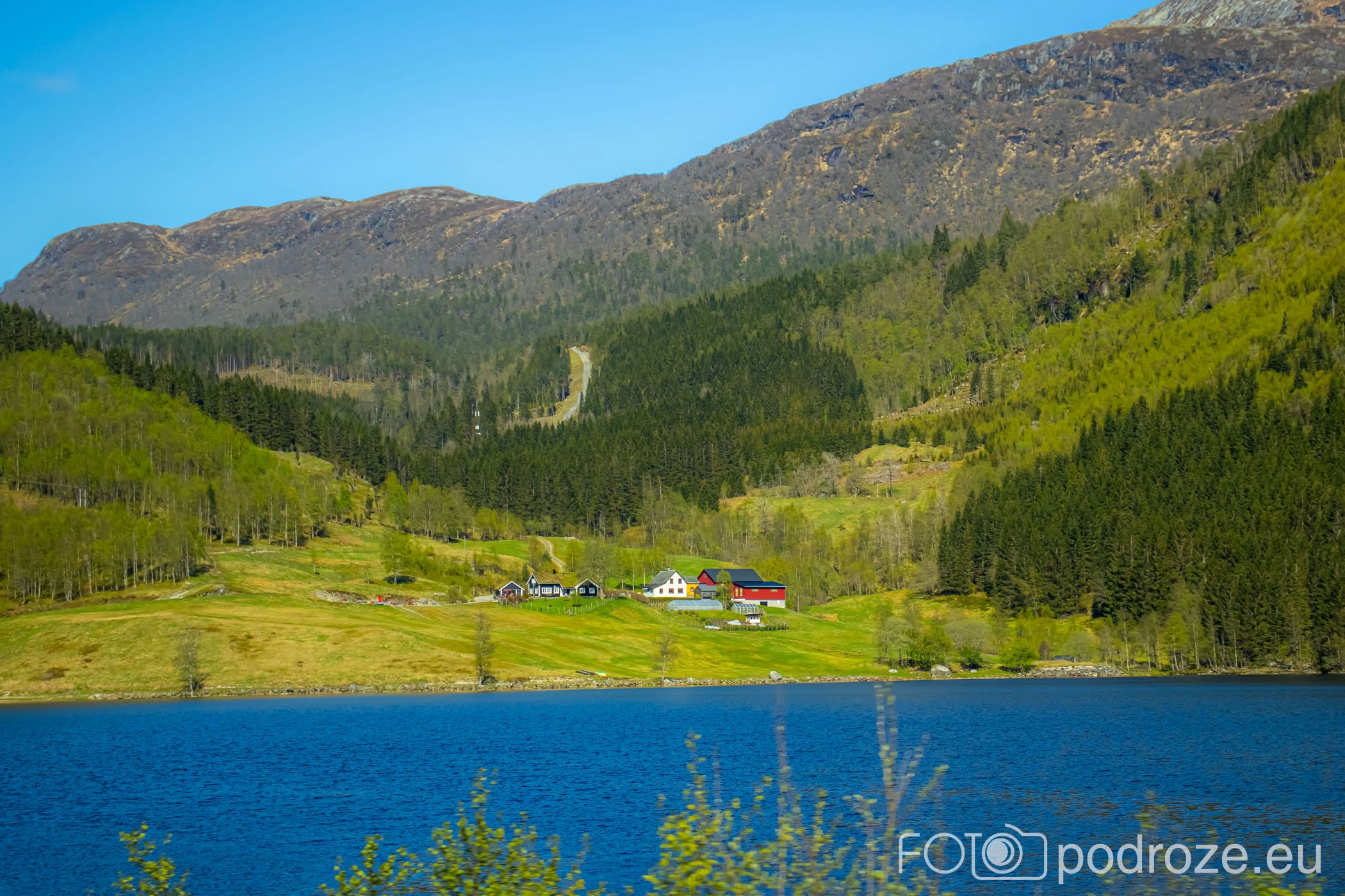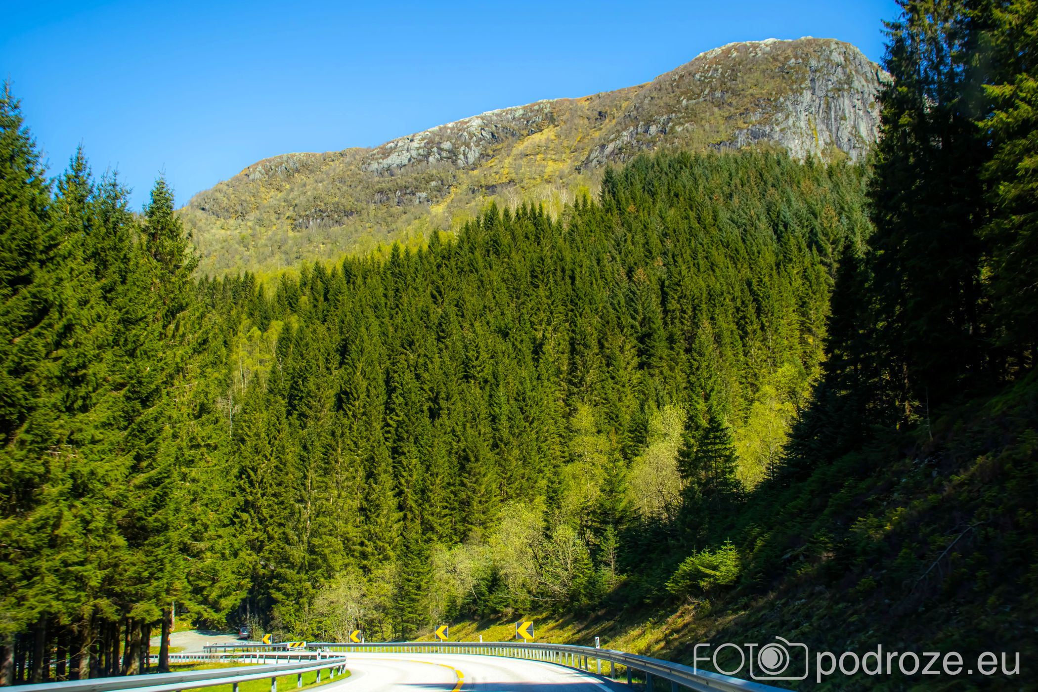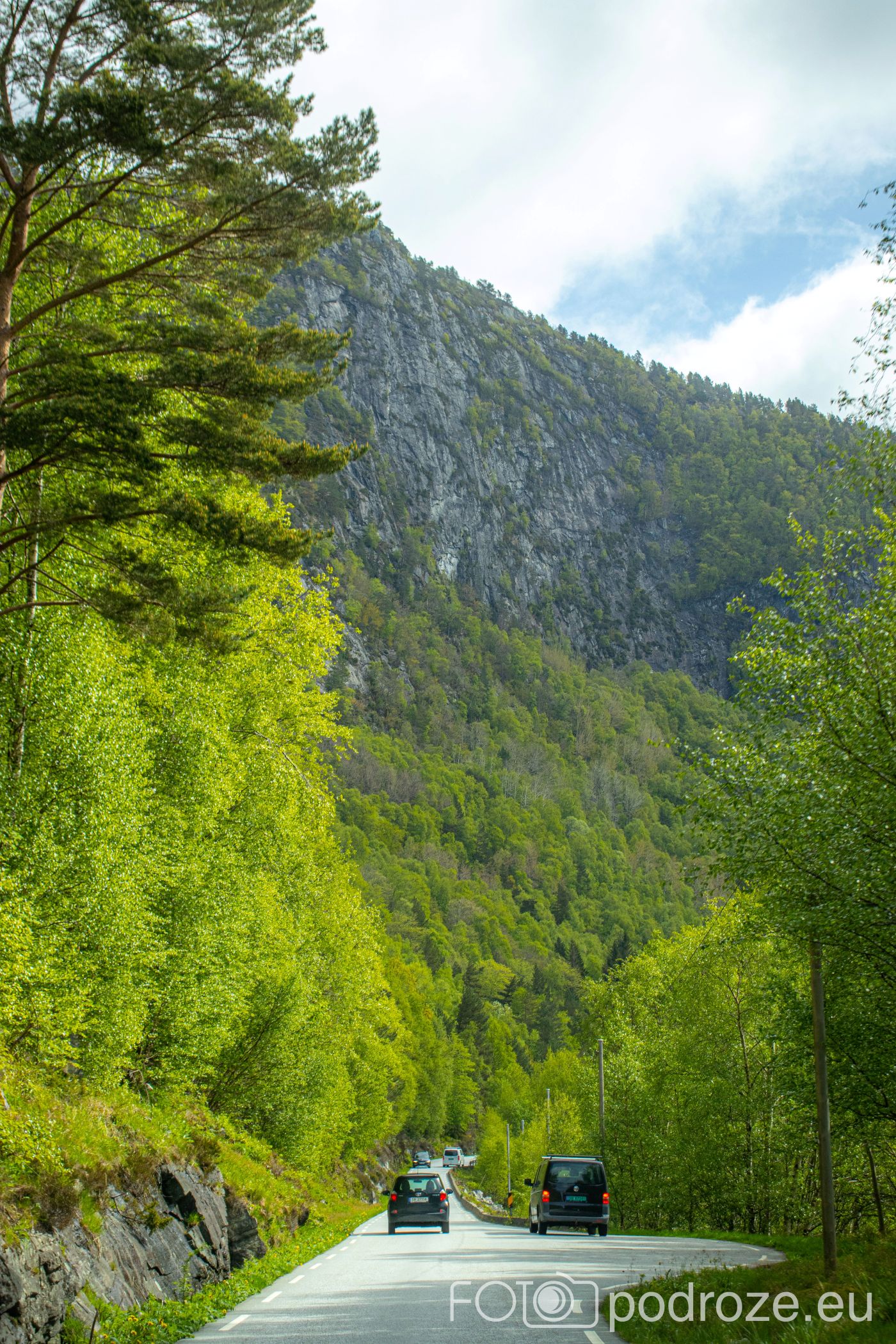 Ostatni odcinek drogi dojazdowej do fiordu główną szosą łączącą Bergen z Forde jest wyjątkowo malowniczy i prawie całkowicie pozbawiony jakiejkolwiek zabudowy. Taki piękny, dziki, zielony krajobraz.
