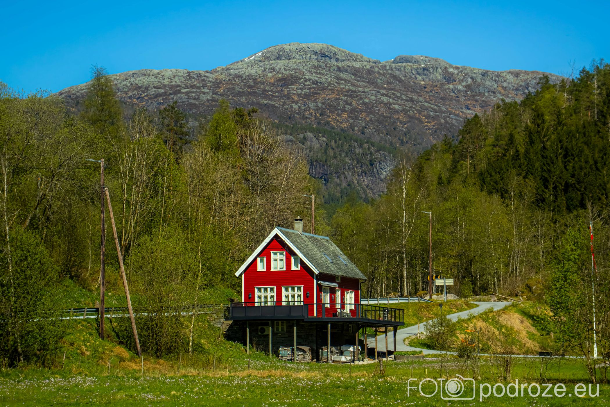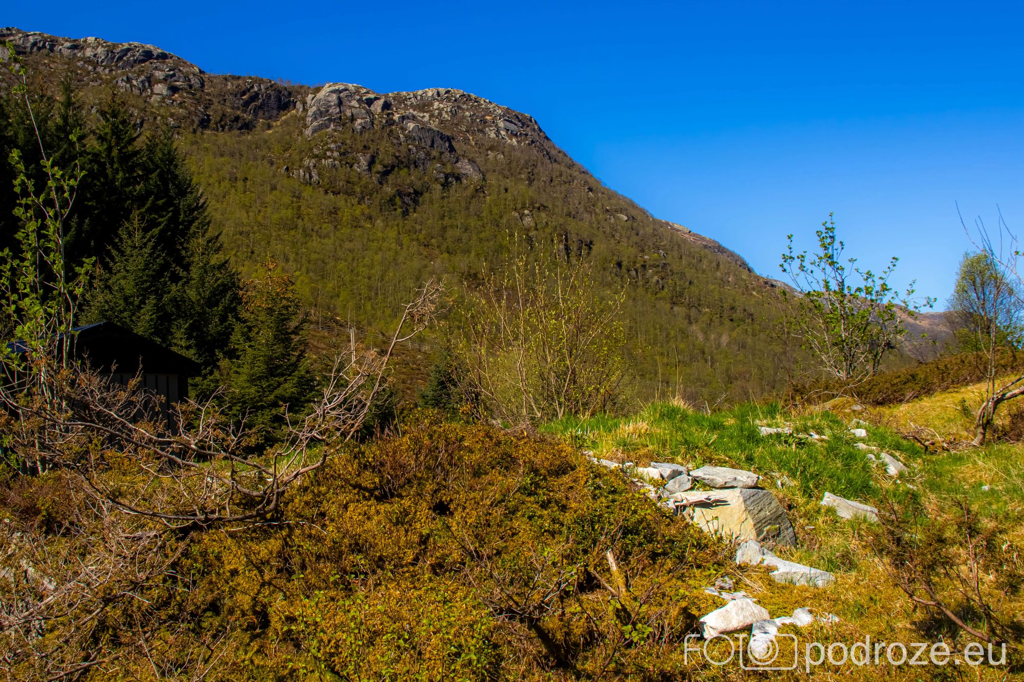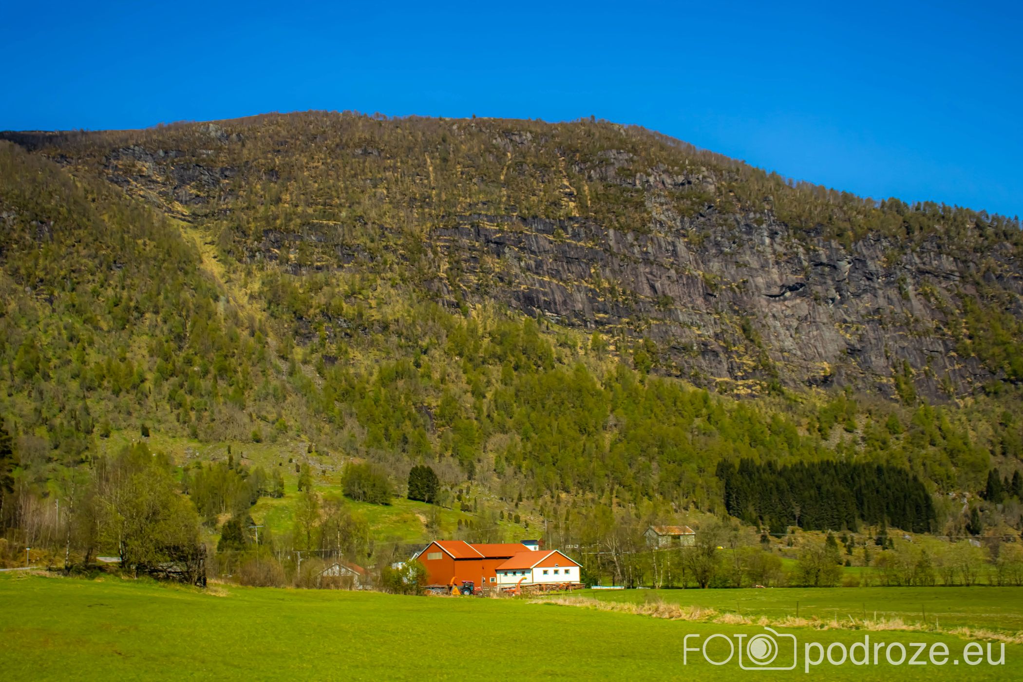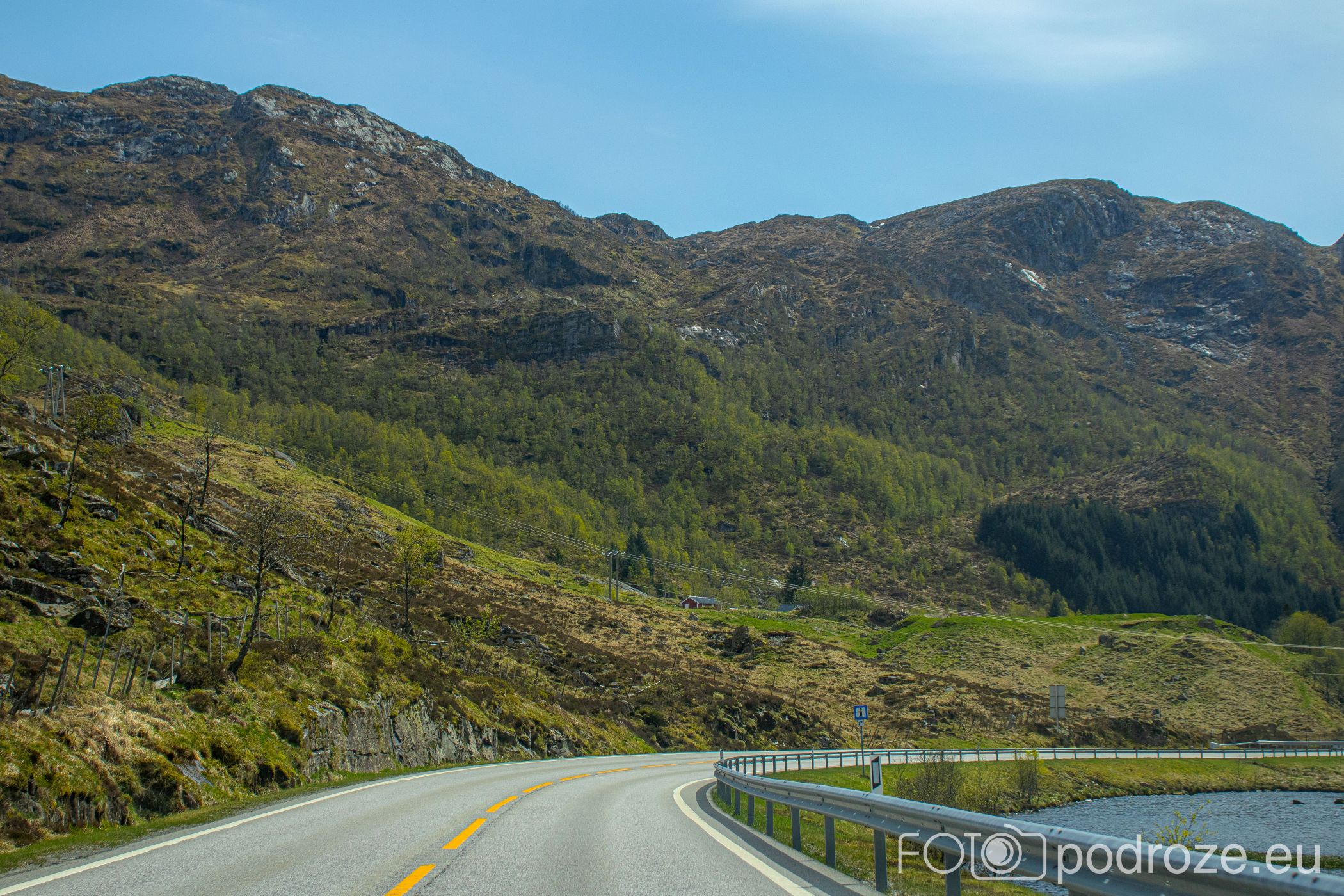 Ostatni odcinek drogi dojazdowej do fiordu główną szosą łączącą Bergen z Forde jest wyjątkowo malowniczy i prawie całkowicie pozbawiony jakiejkolwiek zabudowy. Taki piękny, dziki, zielony krajobraz.