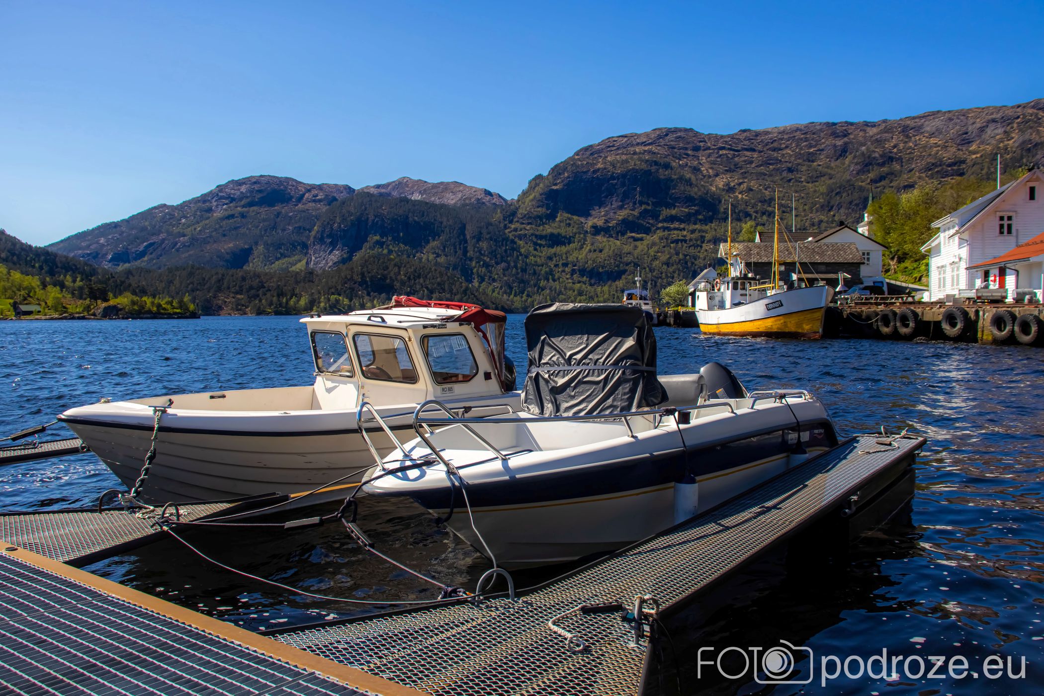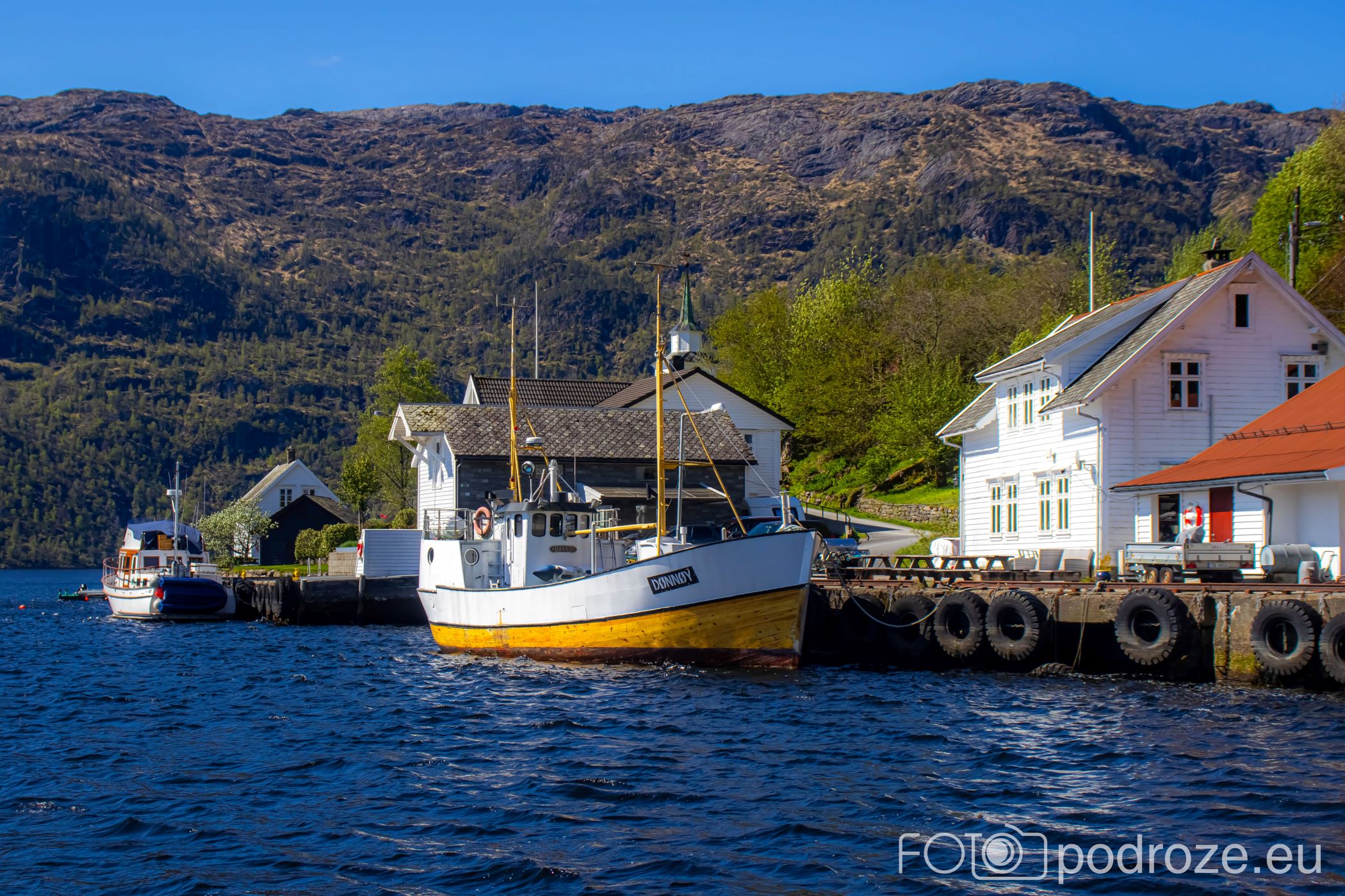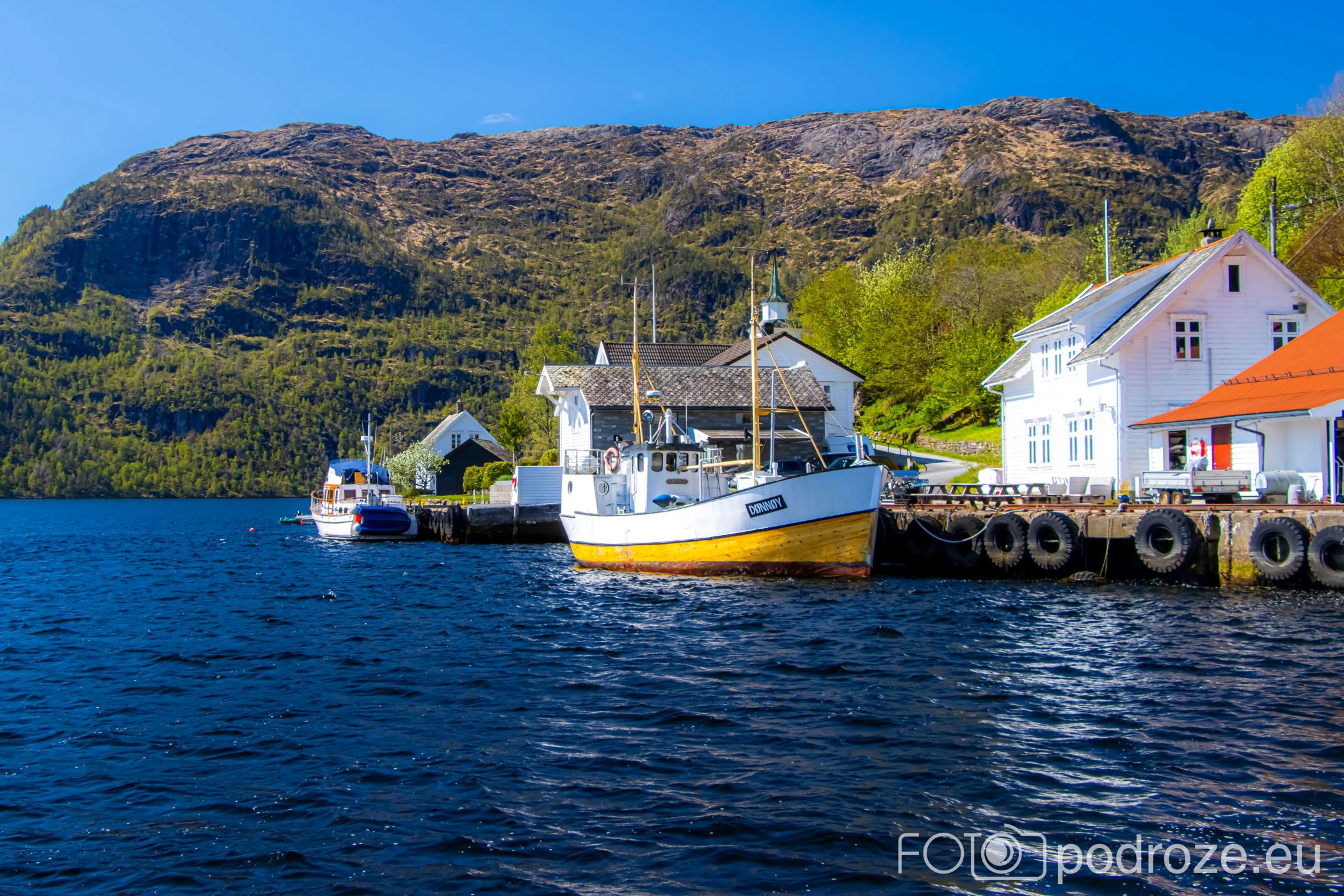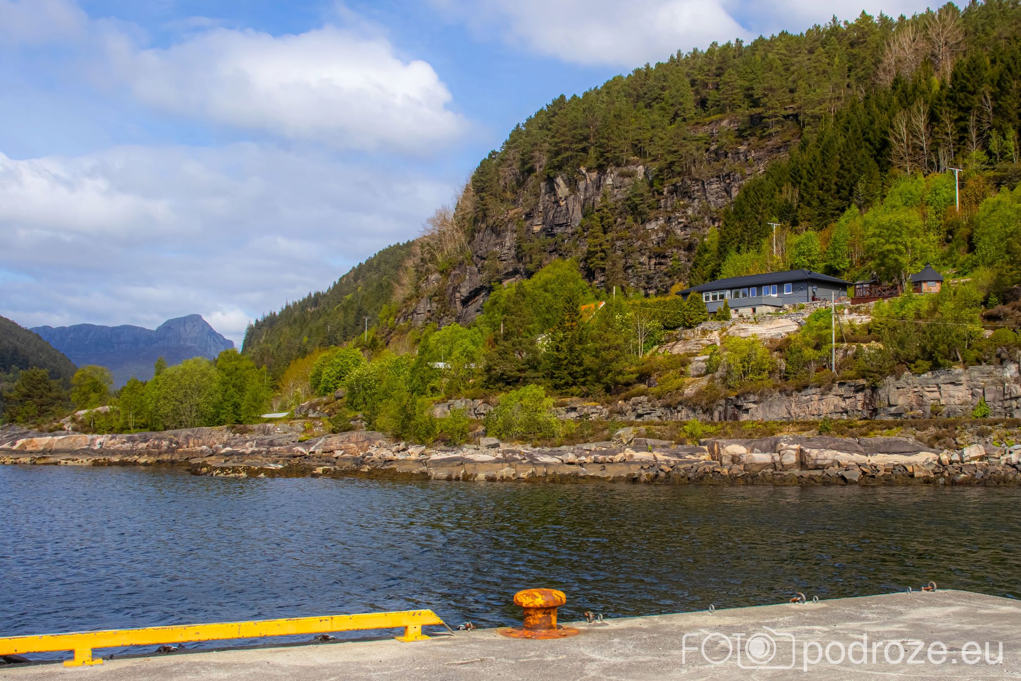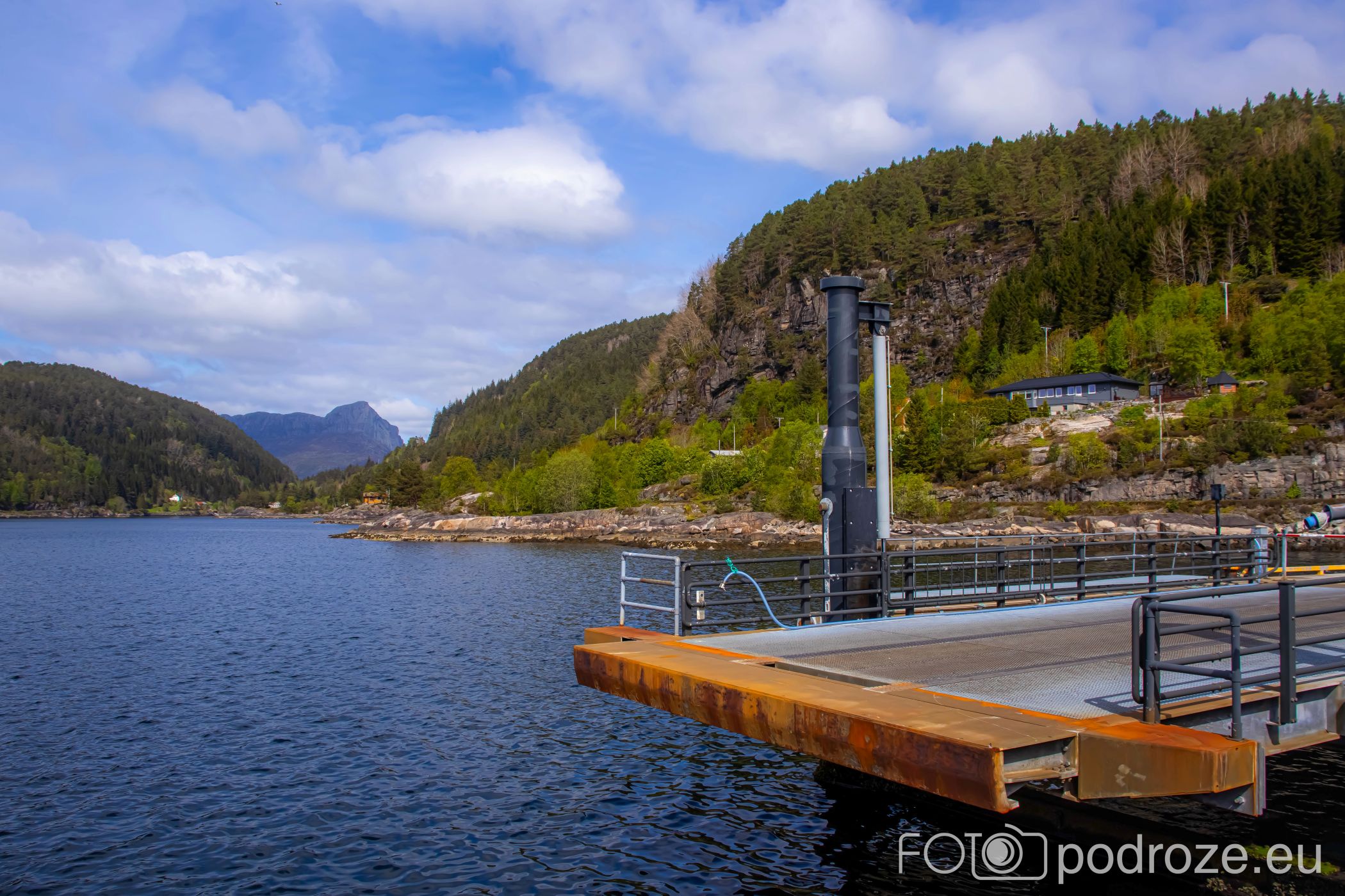 - Rysjedalsvika – Rutledal – Krakhella – droga 57 i dodatkowo rejs na wyspę Losna. Na zdjęciach pierwszy z wymienionych portów, z którego próbowaliśmy wypłynąć, ale w maju tego dnia akurat było to niemożliwe. Warto sprawdzić wcześniej wszystkie połączenia.