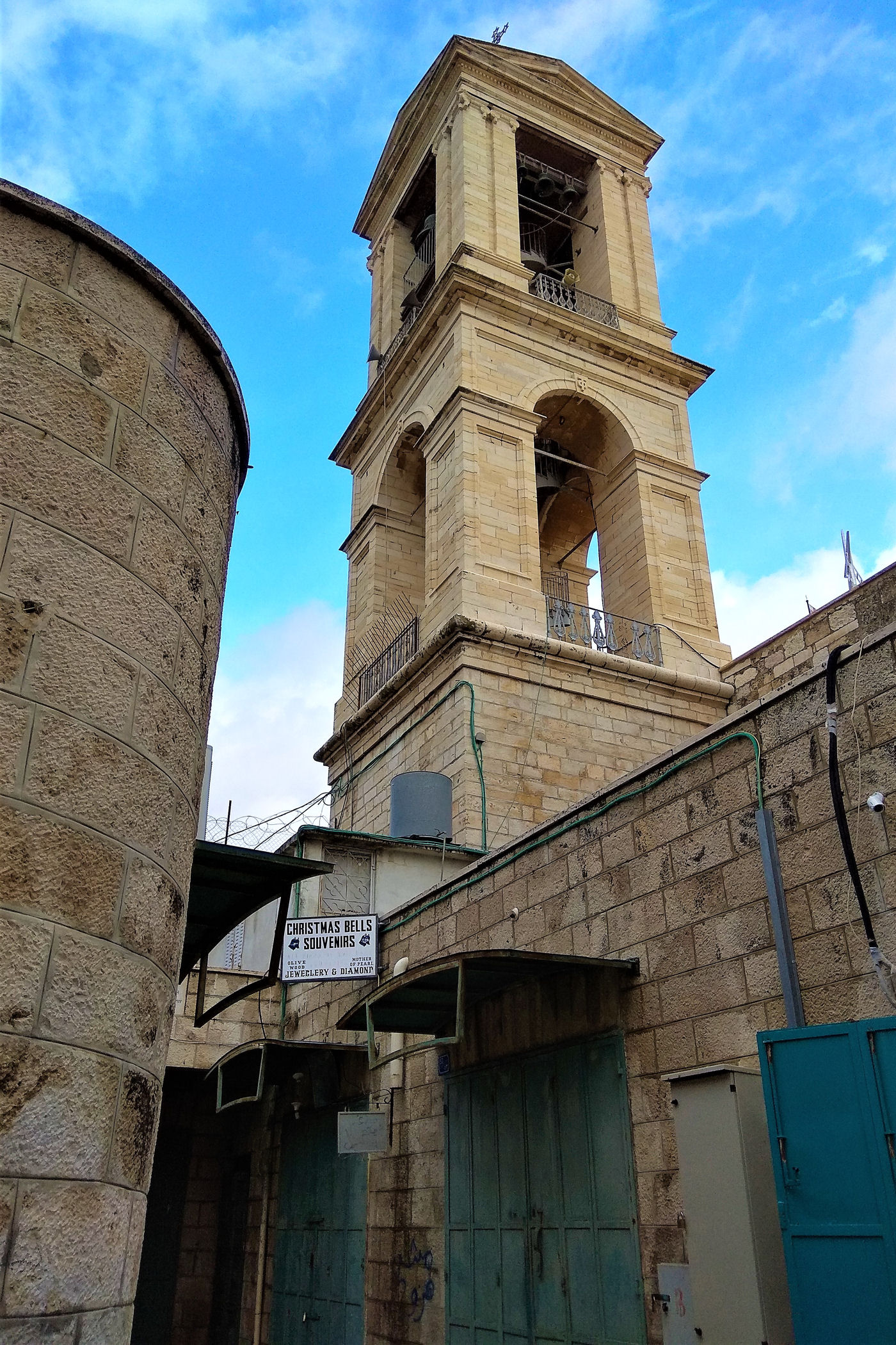 Jesteśmy tu w okresie bożonarodzeniowym, plac ozdabia więc ogromna, piękna szopka. Od północnej strony znajduje się budynek z centrum Informacji Turystycznej „Bethlehem Peace Centre”m a naprzeciwko Bazyliki meczet. Niestety nie znalazłam nigdzie informacji o nim.