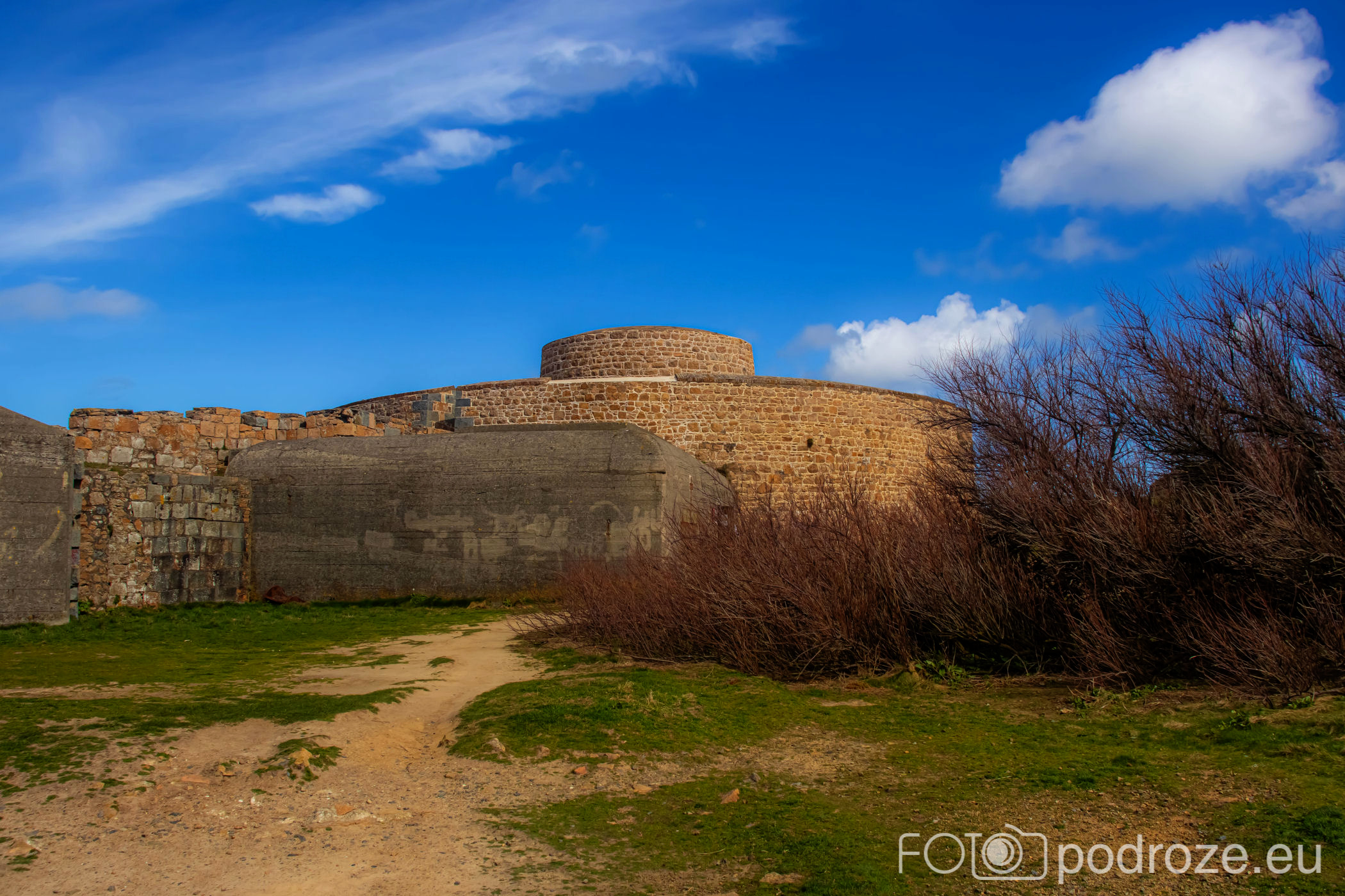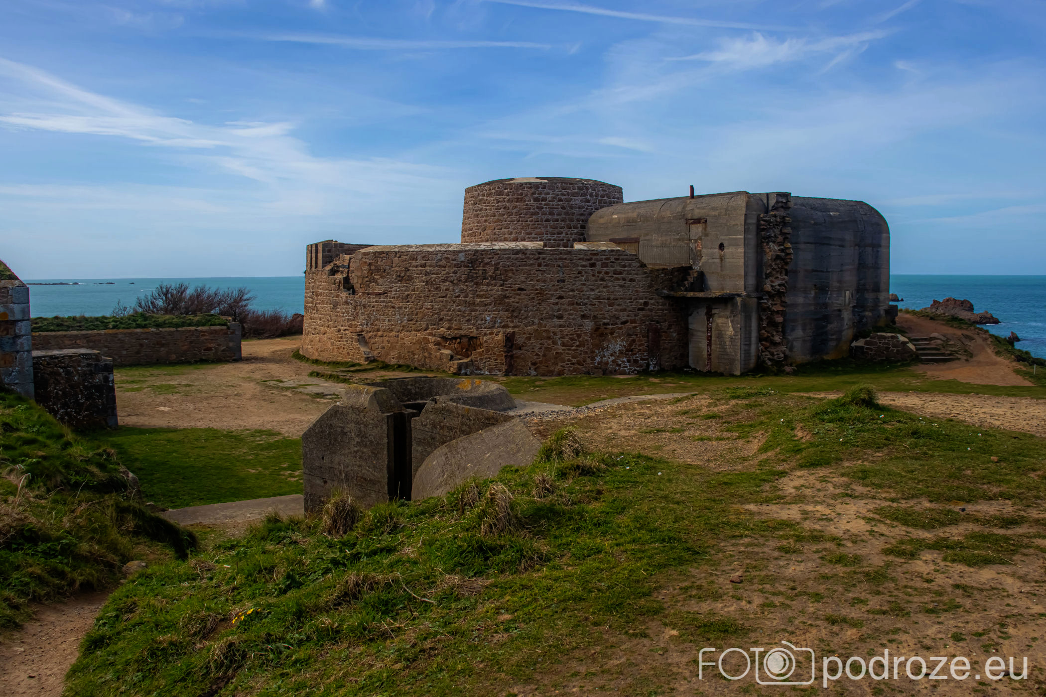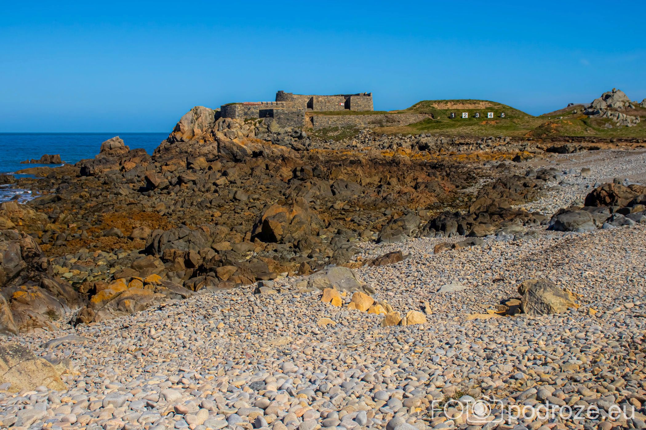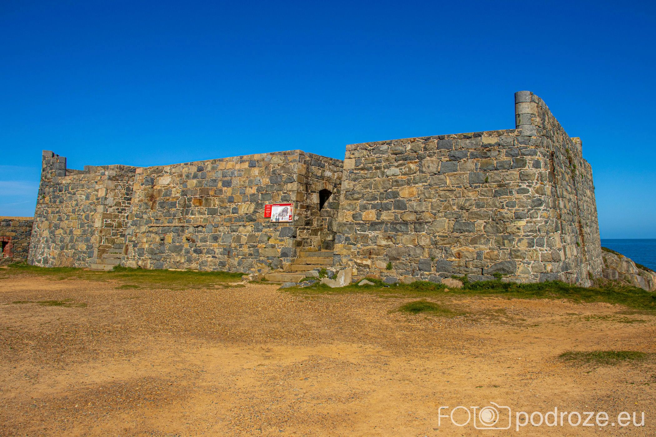 Mój przewodnik po tej części wybrzeża skończymy na kolejnym cyplu z największym fortem. Fort Hommet to jedna z najbardziej imponujących fortyfikacji na zachodnim wybrzeżu Guernsey, położona na skalistym cyplu między zatokami Vazon Bay i Cobo Bay. Jego historia sięga XIX wieku, kiedy zbudowano go jako część brytyjskiego systemu obronnego przeciwko potencjalnym atakom ze strony Francji. W czasie II wojny światowej fort został rozbudowany przez Niemców, którzy przekształcili go w silny punkt oporu, dodali betonowe bunkry, stanowiska artyleryjskie i tunele. Część tych umocnień zachowała się do dziś i można je zwiedzać.