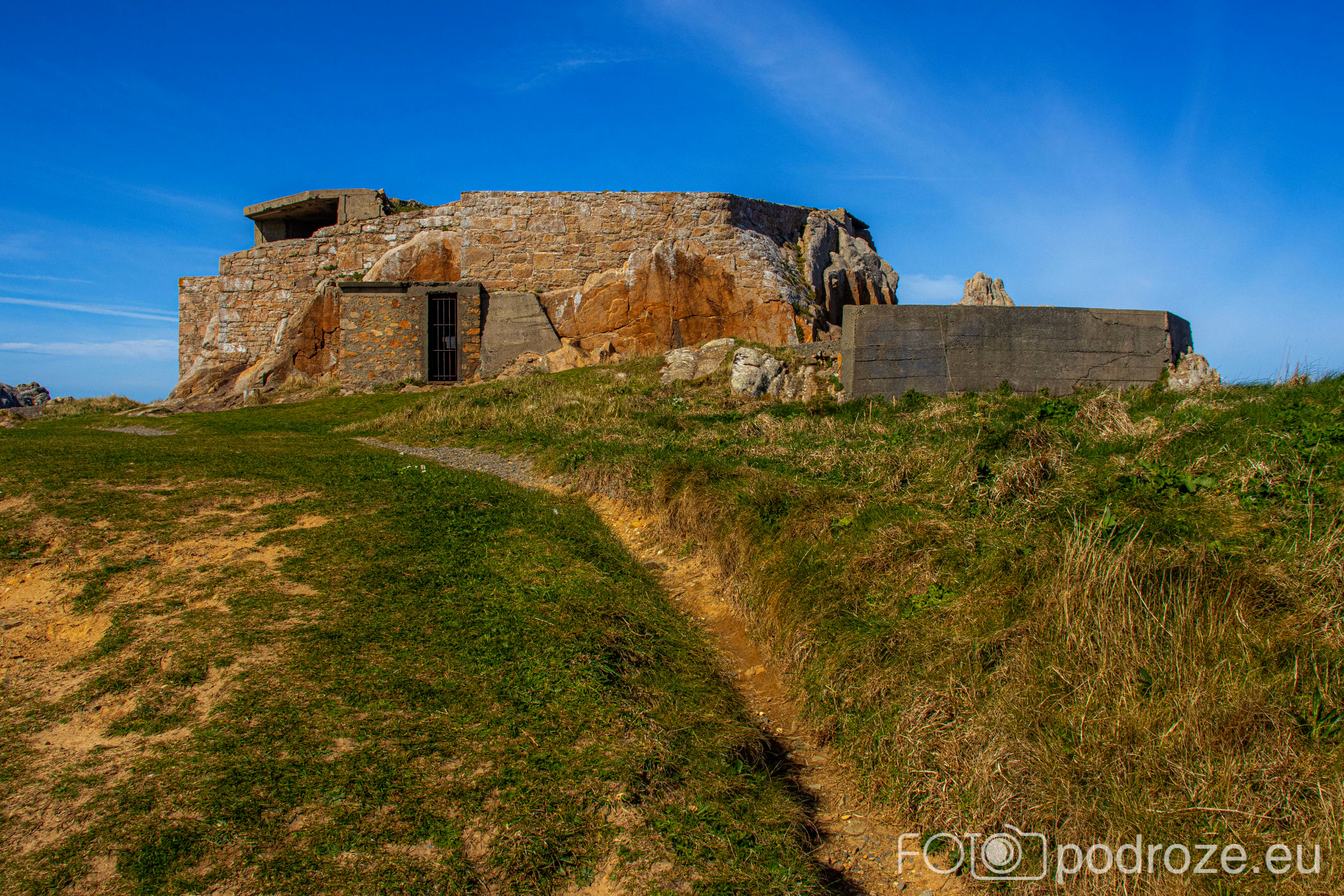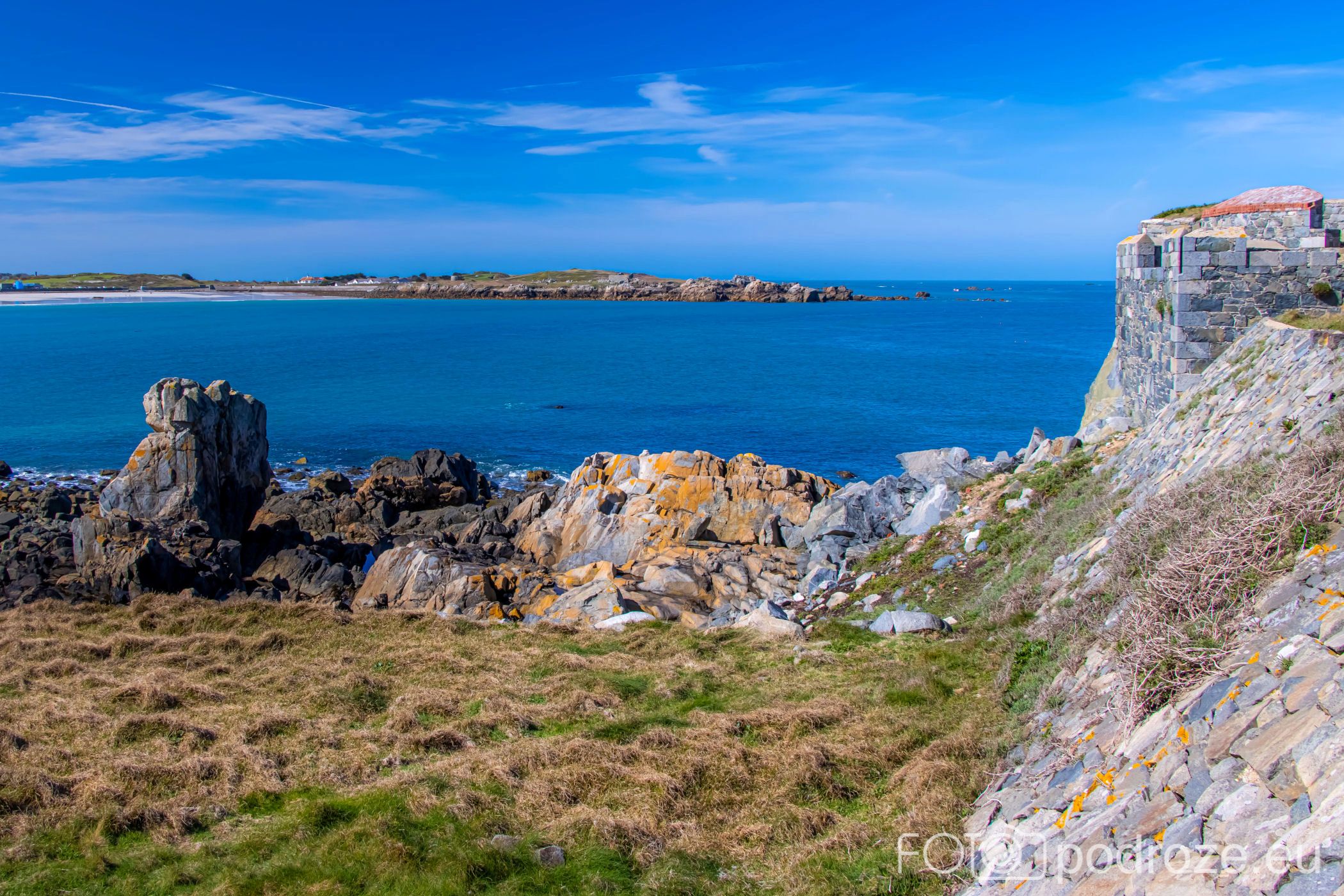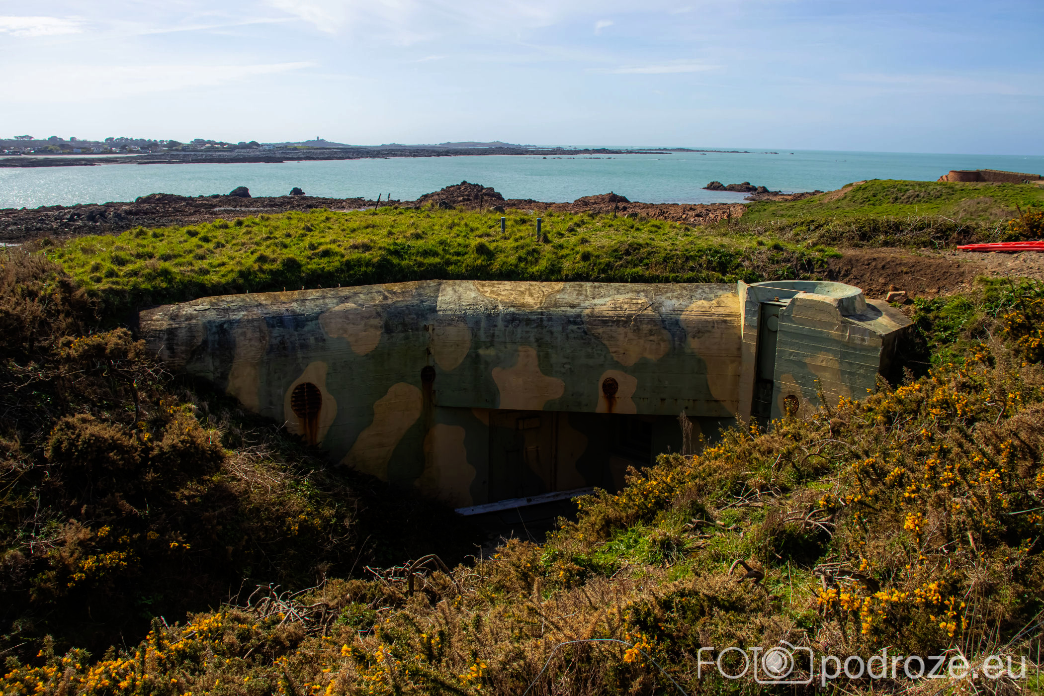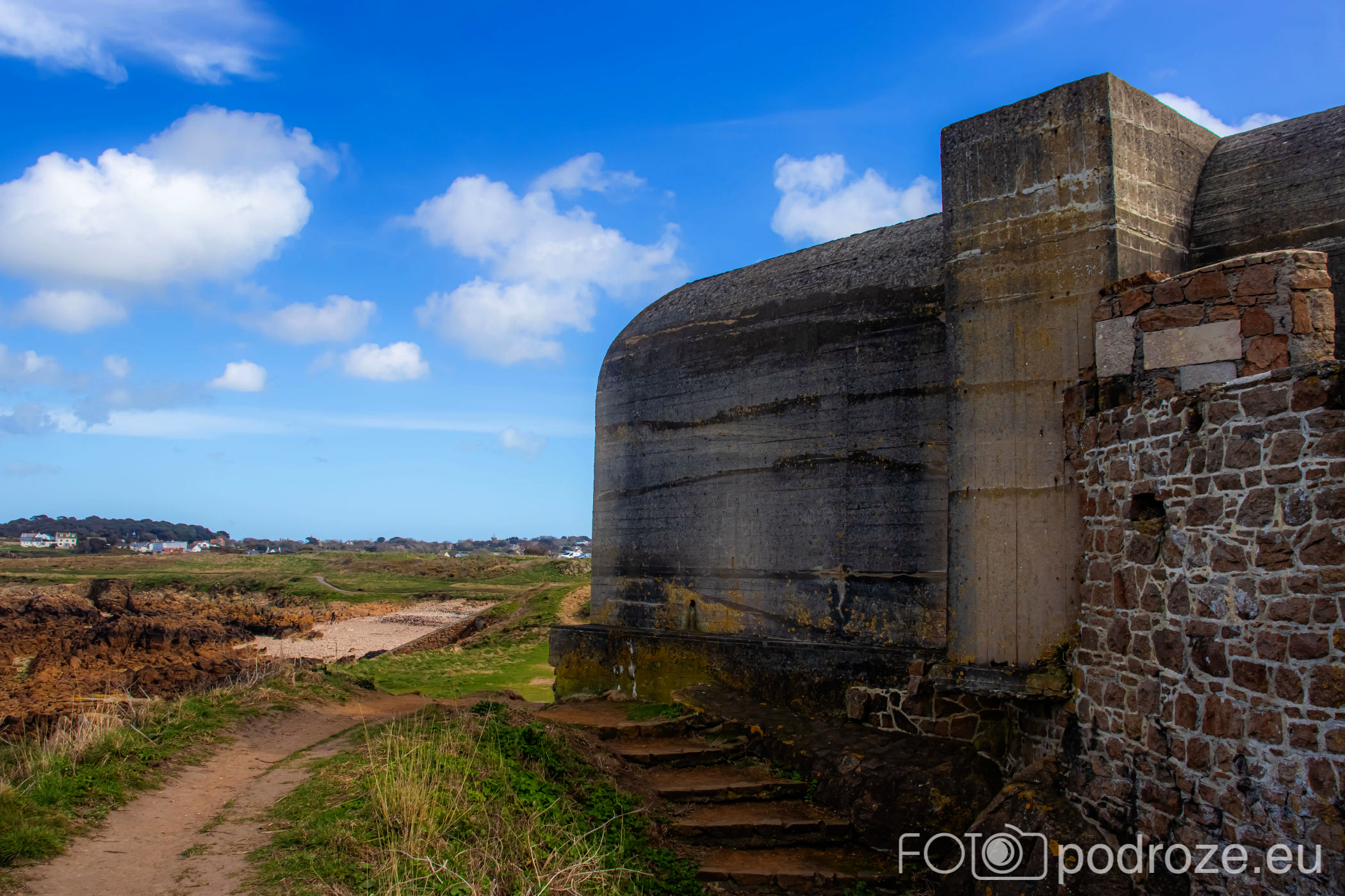 Mój przewodnik po tej części wybrzeża skończymy na kolejnym cyplu z największym fortem. Fort Hommet to jedna z najbardziej imponujących fortyfikacji na zachodnim wybrzeżu Guernsey, położona na skalistym cyplu między zatokami Vazon Bay i Cobo Bay. Jego historia sięga XIX wieku, kiedy zbudowano go jako część brytyjskiego systemu obronnego przeciwko potencjalnym atakom ze strony Francji. W czasie II wojny światowej fort został rozbudowany przez Niemców, którzy przekształcili go w silny punkt oporu, dodali betonowe bunkry, stanowiska artyleryjskie i tunele. Część tych umocnień zachowała się do dziś i można je zwiedzać.