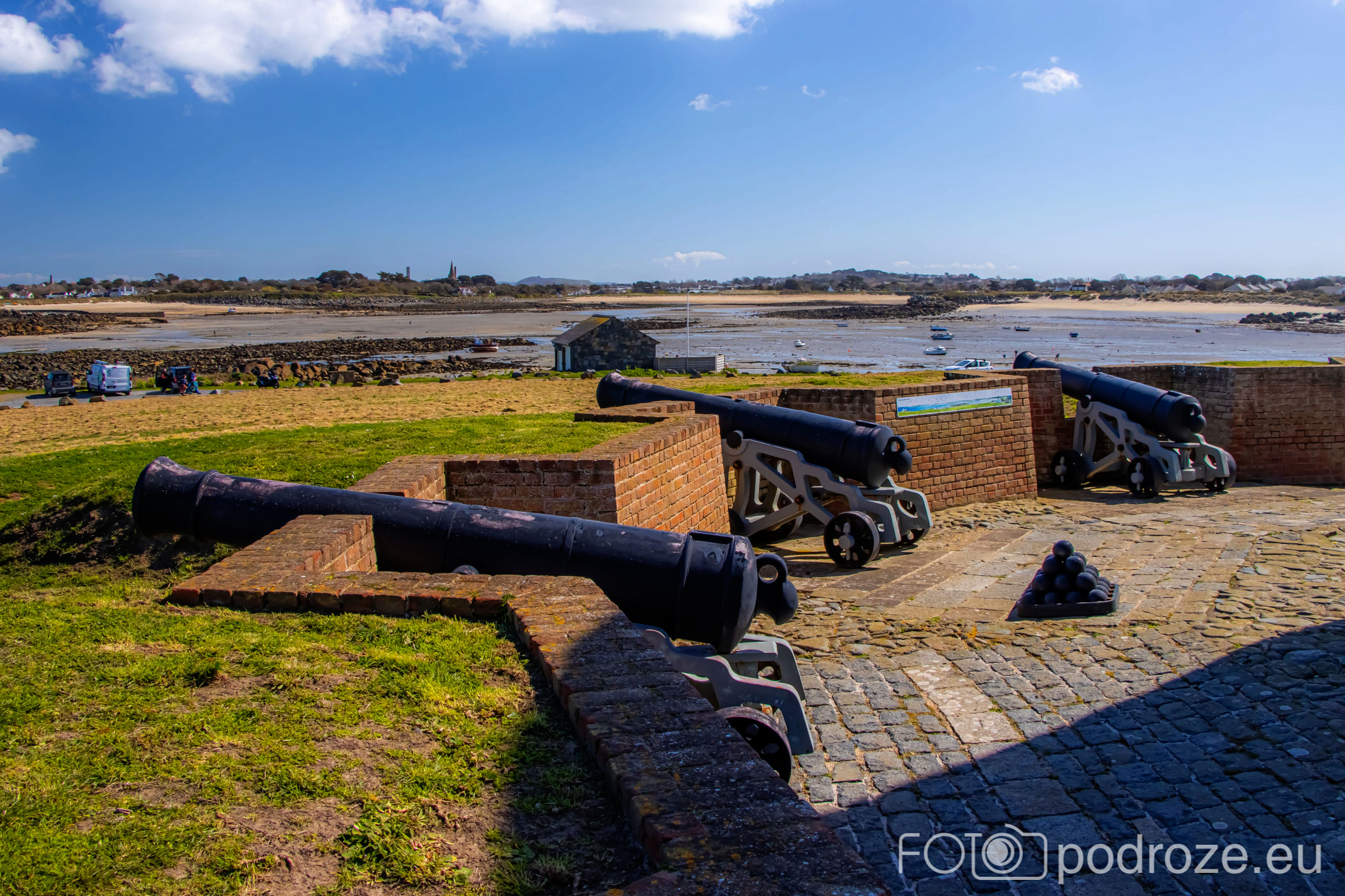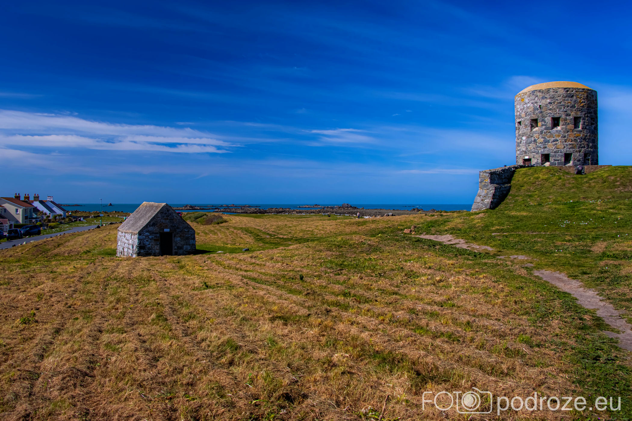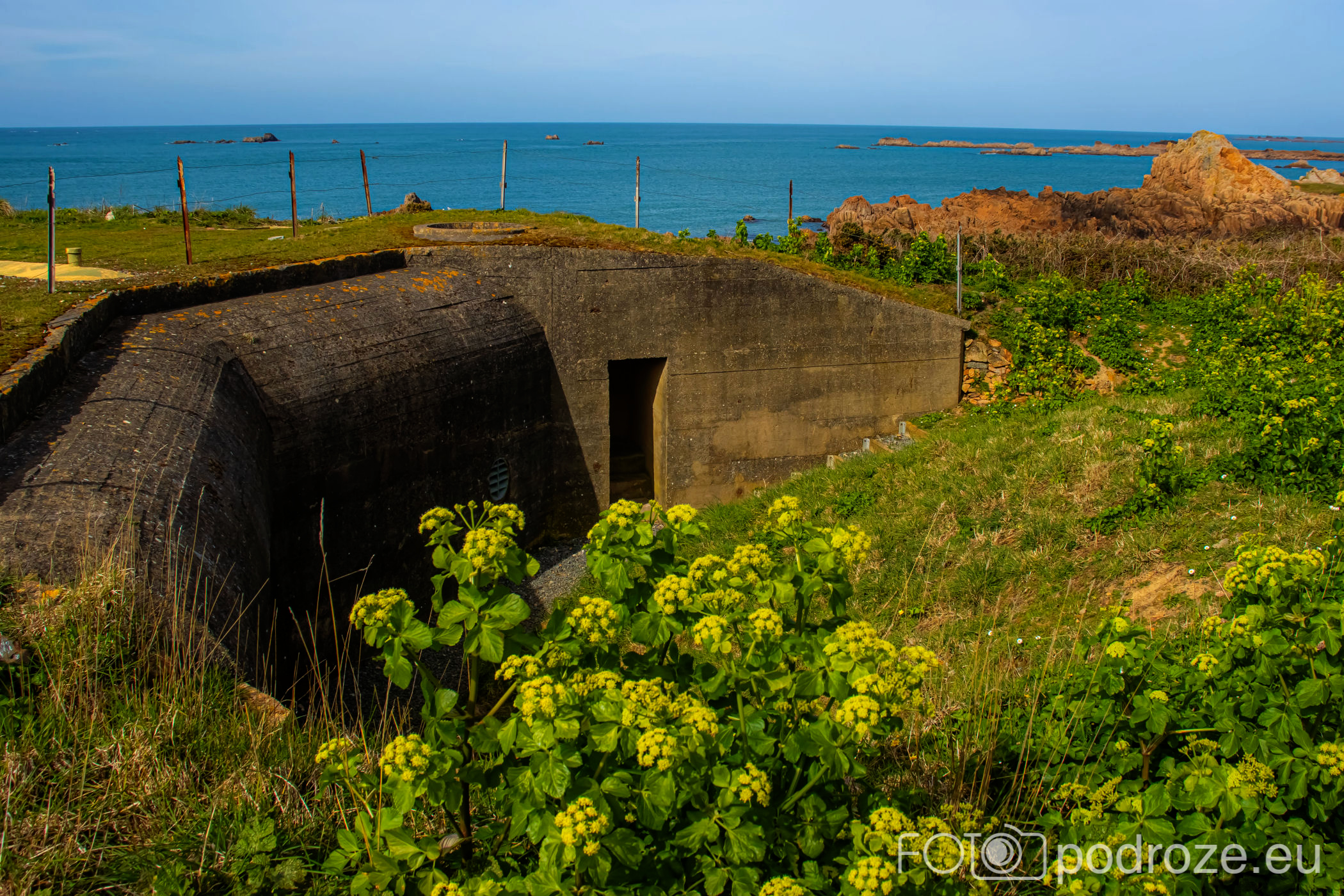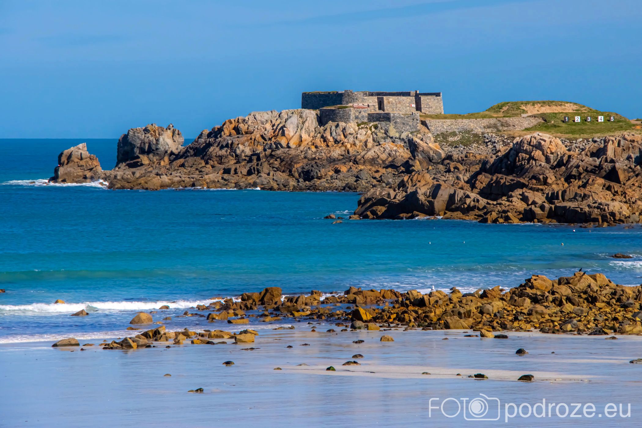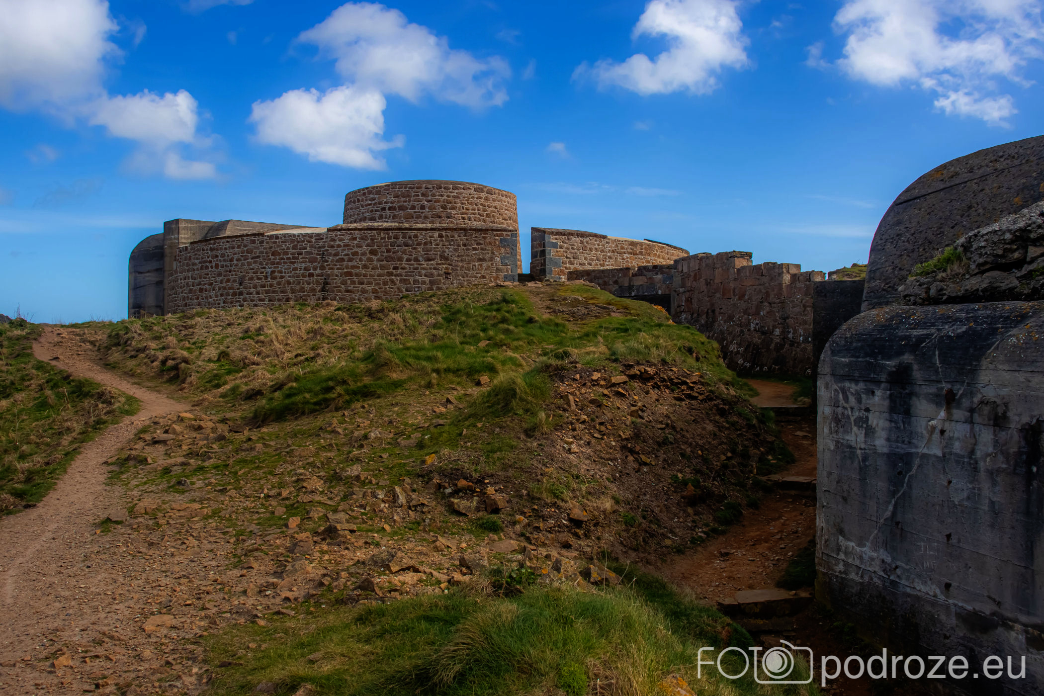 Mój przewodnik po tej części wybrzeża skończymy na kolejnym cyplu z największym fortem. Fort Hommet to jedna z najbardziej imponujących fortyfikacji na zachodnim wybrzeżu Guernsey, położona na skalistym cyplu między zatokami Vazon Bay i Cobo Bay. Jego historia sięga XIX wieku, kiedy zbudowano go jako część brytyjskiego systemu obronnego przeciwko potencjalnym atakom ze strony Francji. W czasie II wojny światowej fort został rozbudowany przez Niemców, którzy przekształcili go w silny punkt oporu, dodali betonowe bunkry, stanowiska artyleryjskie i tunele. Część tych umocnień zachowała się do dziś i można je zwiedzać.