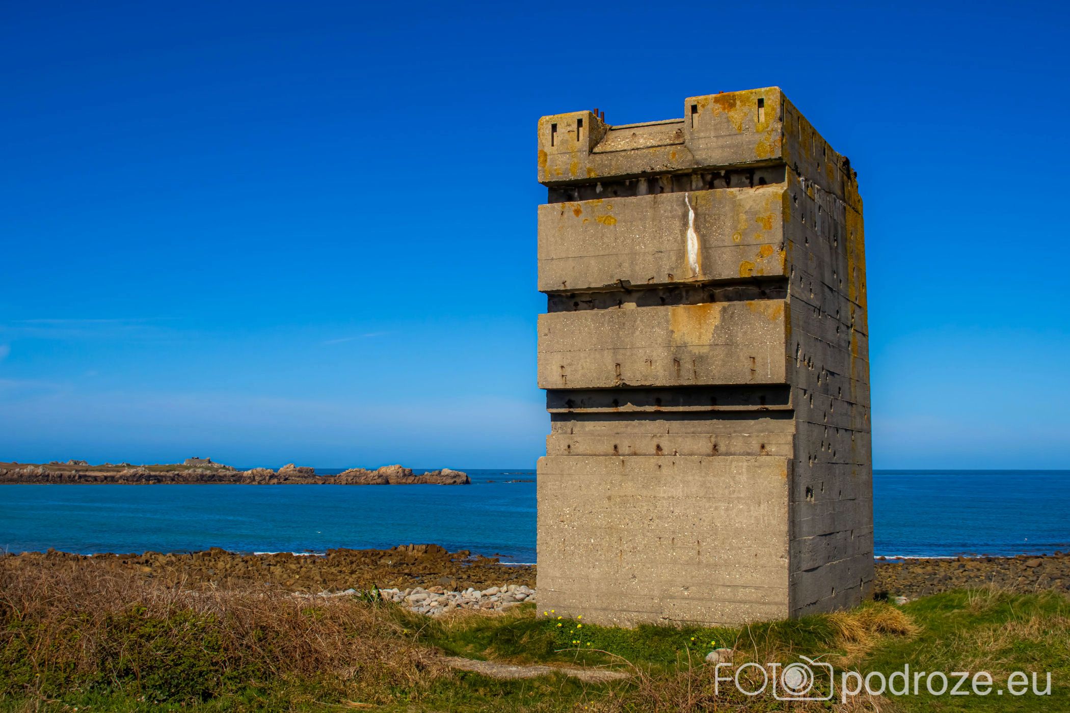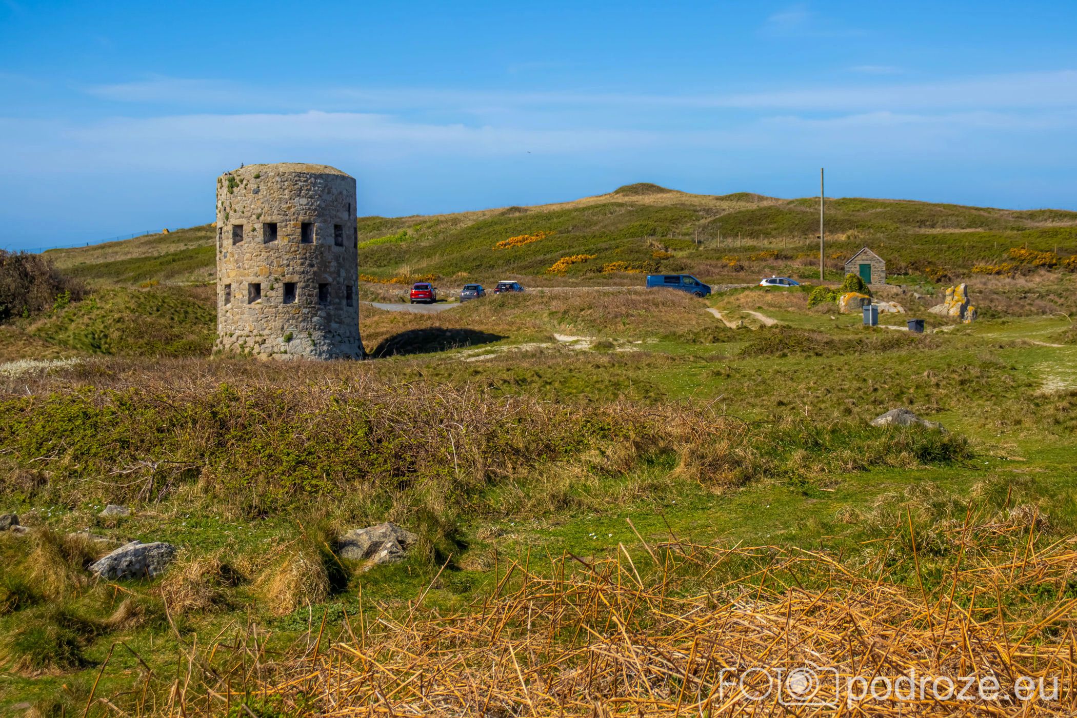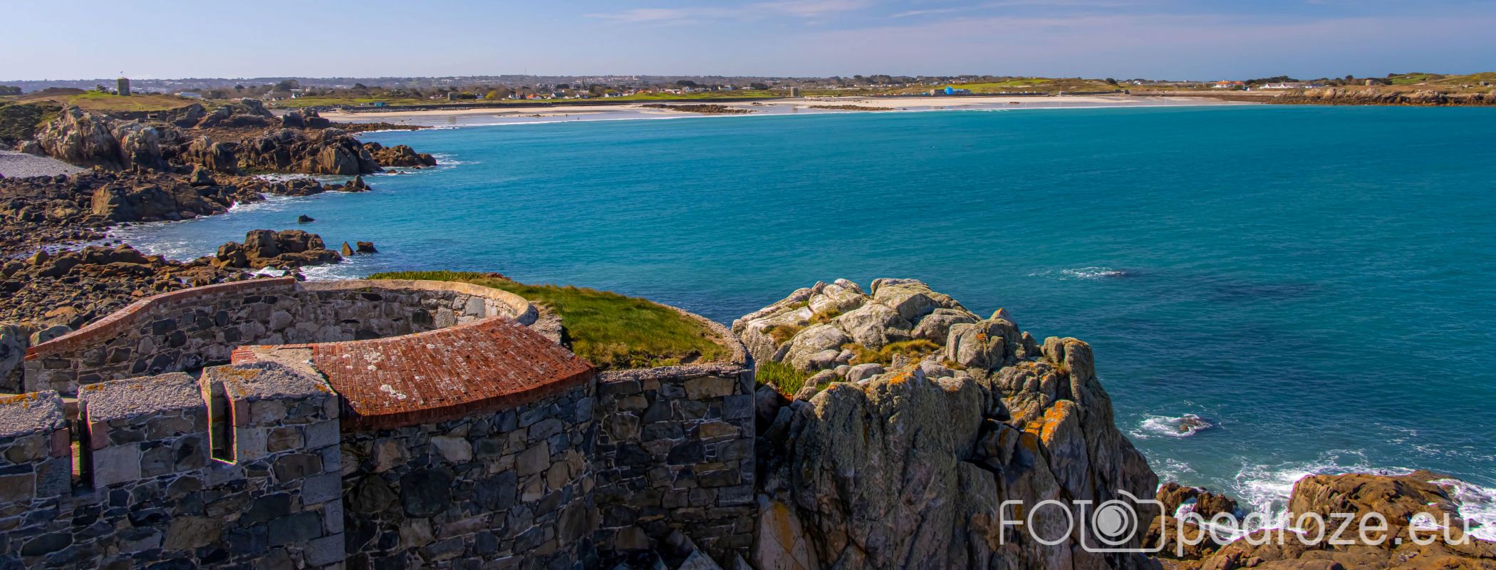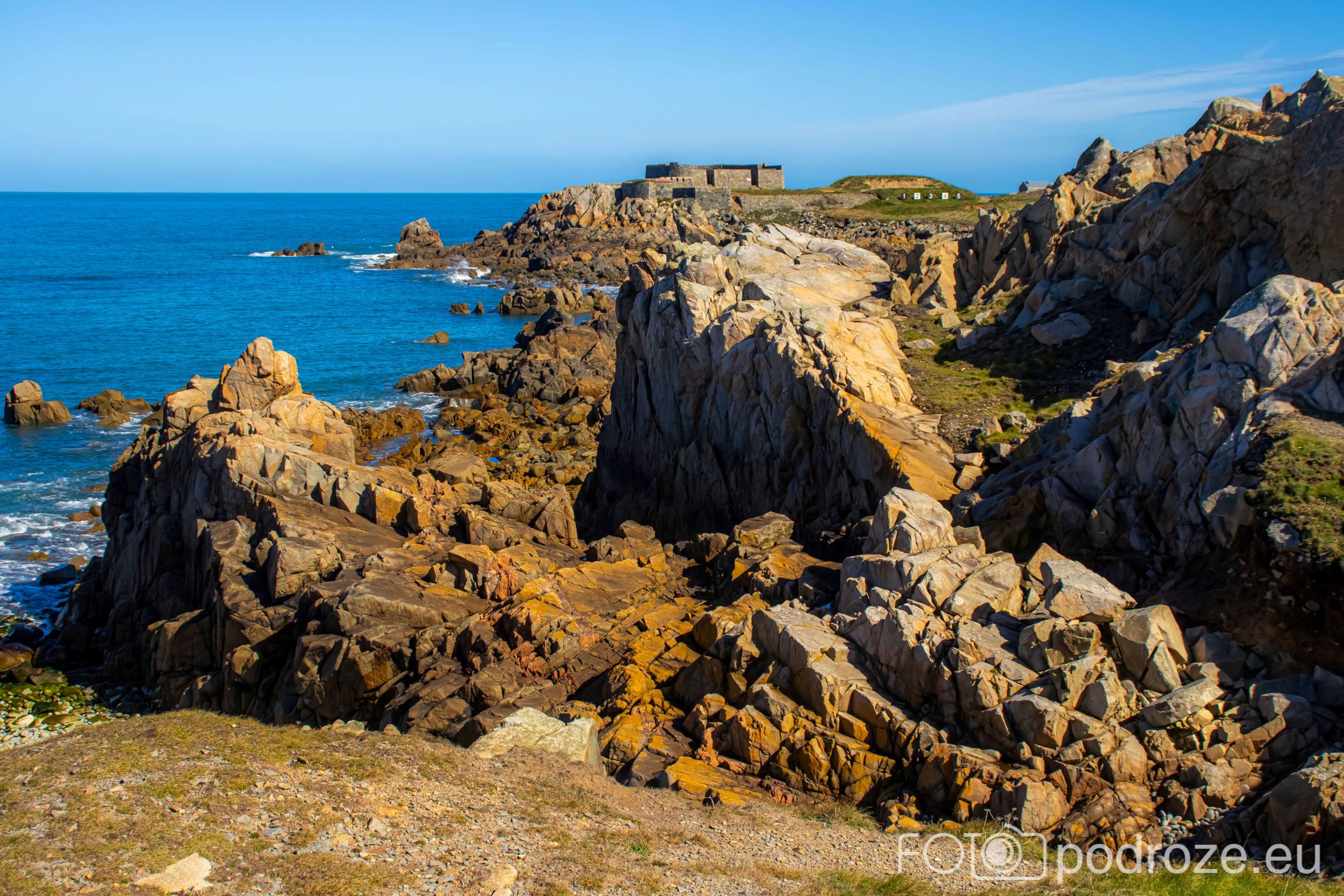 Mój przewodnik po tej części wybrzeża skończymy na kolejnym cyplu z największym fortem. Fort Hommet to jedna z najbardziej imponujących fortyfikacji na zachodnim wybrzeżu Guernsey, położona na skalistym cyplu między zatokami Vazon Bay i Cobo Bay. Jego historia sięga XIX wieku, kiedy zbudowano go jako część brytyjskiego systemu obronnego przeciwko potencjalnym atakom ze strony Francji. W czasie II wojny światowej fort został rozbudowany przez Niemców, którzy przekształcili go w silny punkt oporu, dodali betonowe bunkry, stanowiska artyleryjskie i tunele. Część tych umocnień zachowała się do dziś i można je zwiedzać.