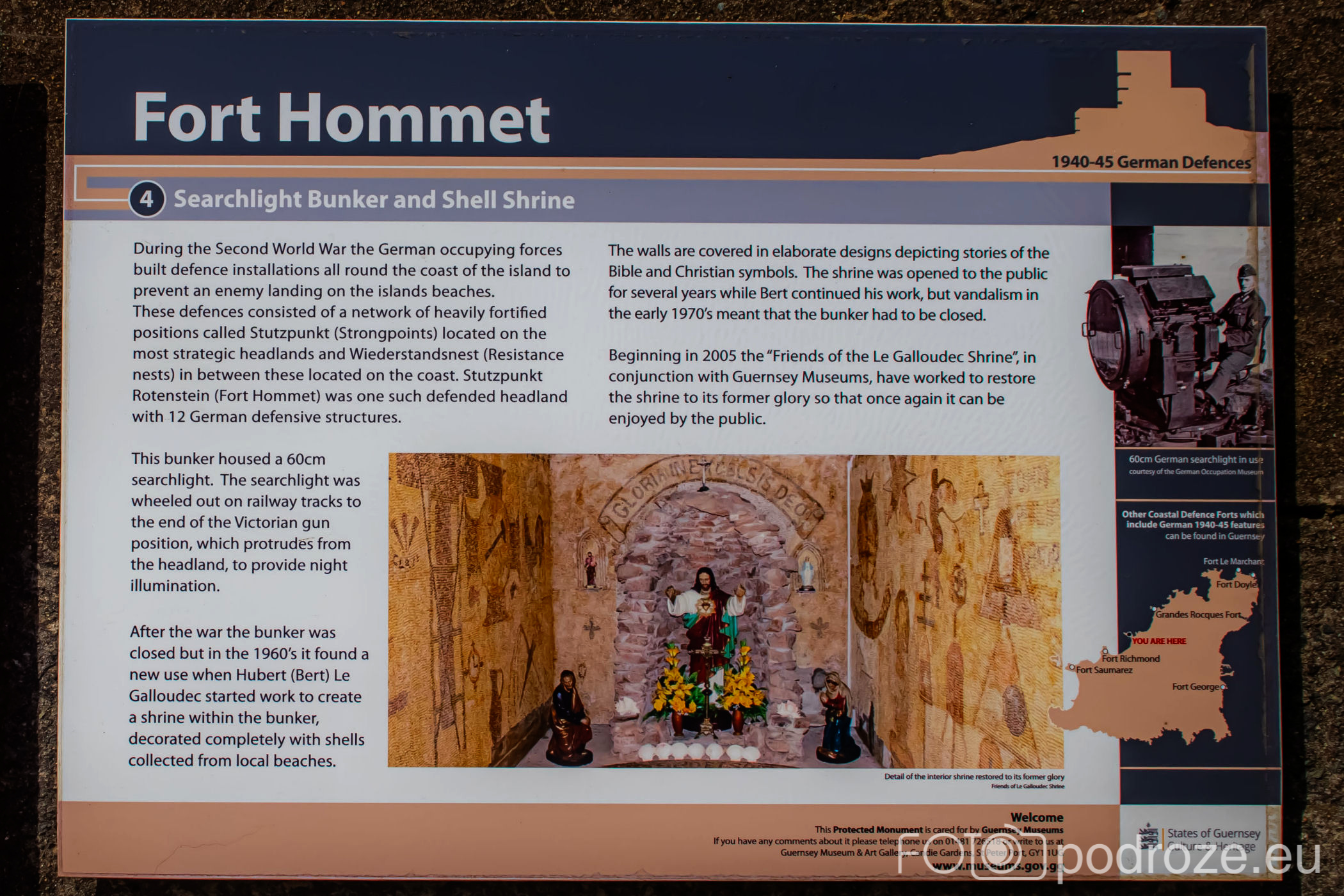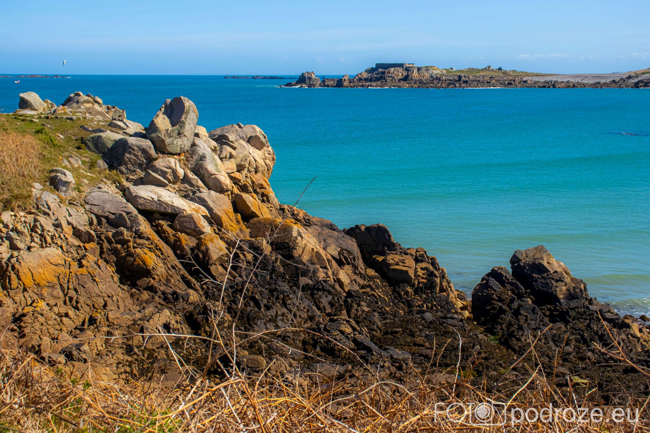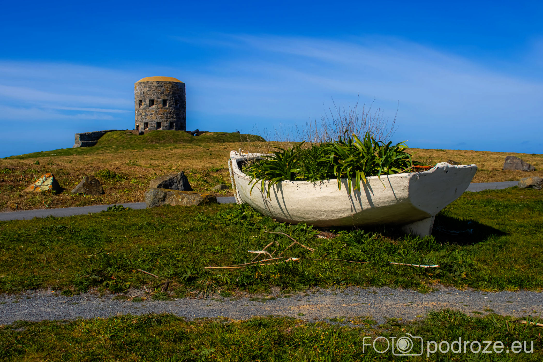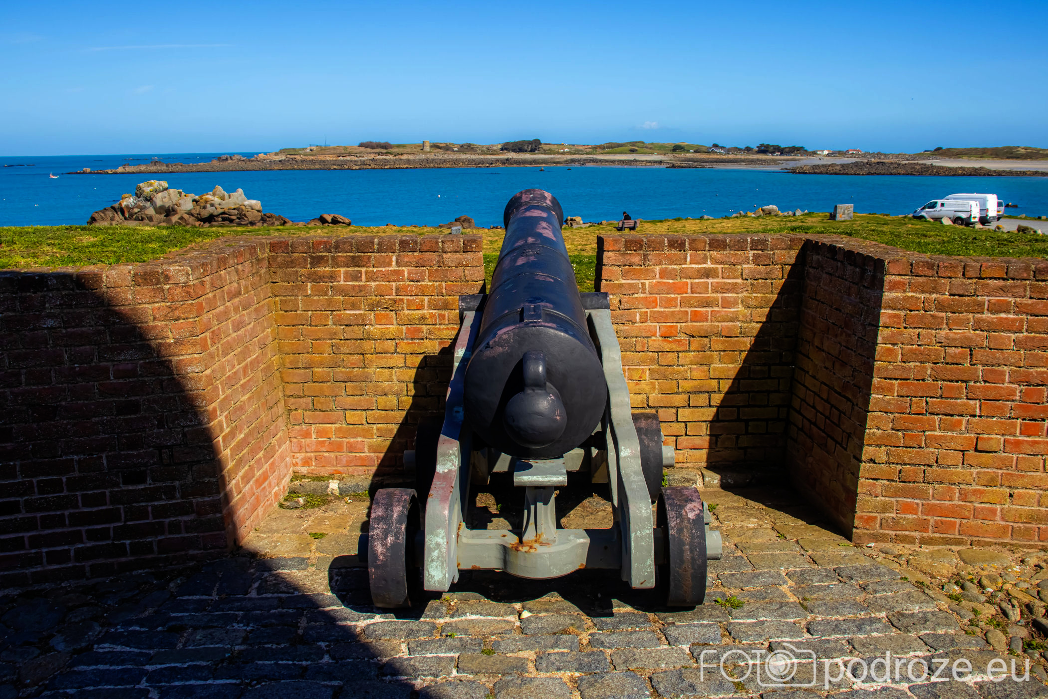 Mój przewodnik po tej części wybrzeża skończymy na kolejnym cyplu z największym fortem. Fort Hommet to jedna z najbardziej imponujących fortyfikacji na zachodnim wybrzeżu Guernsey, położona na skalistym cyplu między zatokami Vazon Bay i Cobo Bay. Jego historia sięga XIX wieku, kiedy zbudowano go jako część brytyjskiego systemu obronnego przeciwko potencjalnym atakom ze strony Francji. W czasie II wojny światowej fort został rozbudowany przez Niemców, którzy przekształcili go w silny punkt oporu, dodali betonowe bunkry, stanowiska artyleryjskie i tunele. Część tych umocnień zachowała się do dziś i można je zwiedzać.