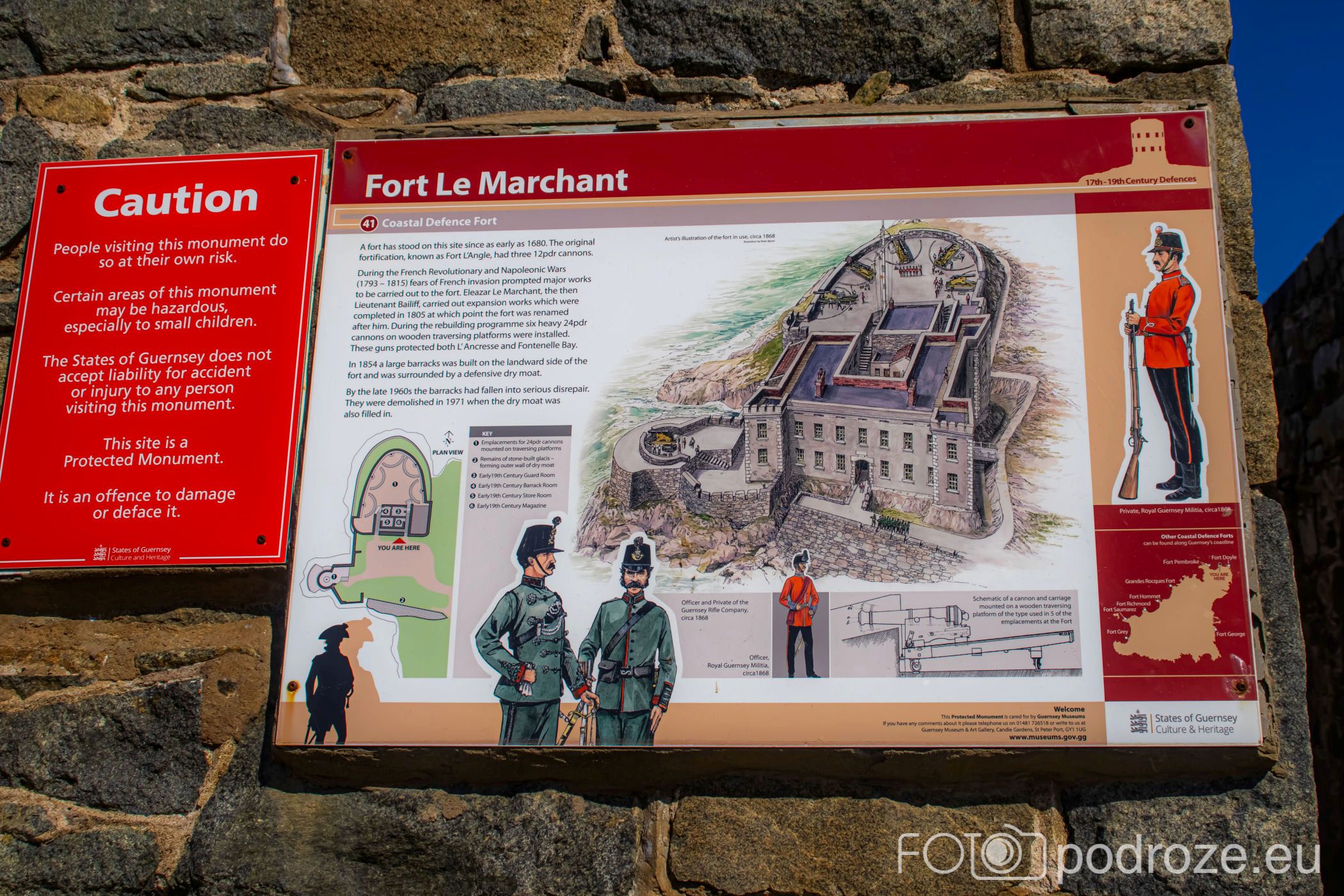 Fort Le Marchant to kolejna fortyfikacja na Guernsey, którą warto odwiedzić. Już w 1680 roku stał tu Fort L’Angle, a w 1805 rozbudowano go i nazwano na cześć Eleazara Le Marchanta. W 1854 dodano baraki i rów obronny, ale po demilitaryzacji je usunięto. Dziś z murów fortu roztaczają się piękne widoki na morze, klify i plaże. To idealne miejsce na spacer, zdjęcia i odkrywanie historii Guernsey.