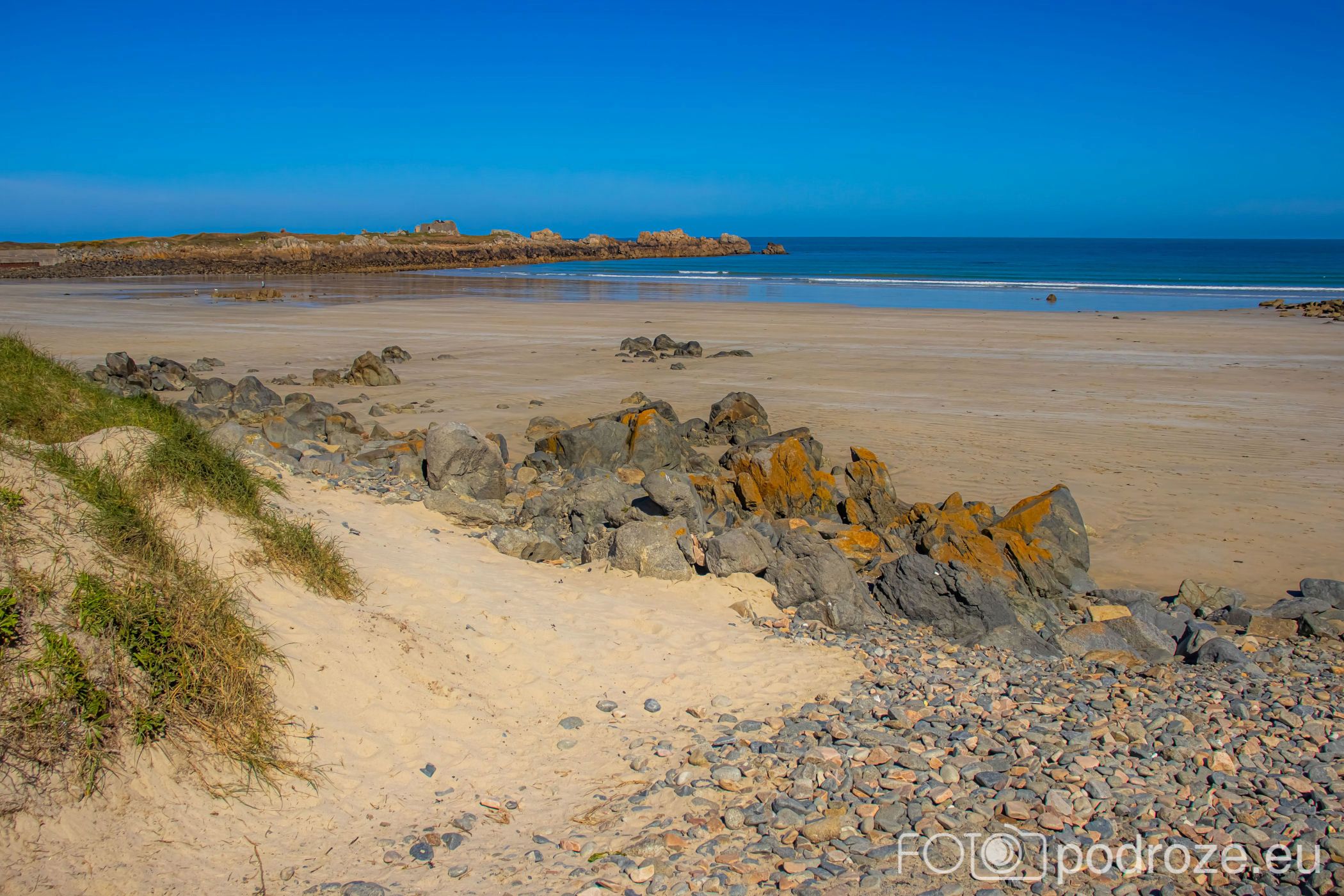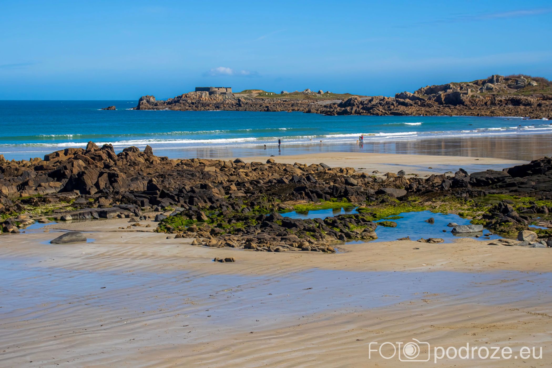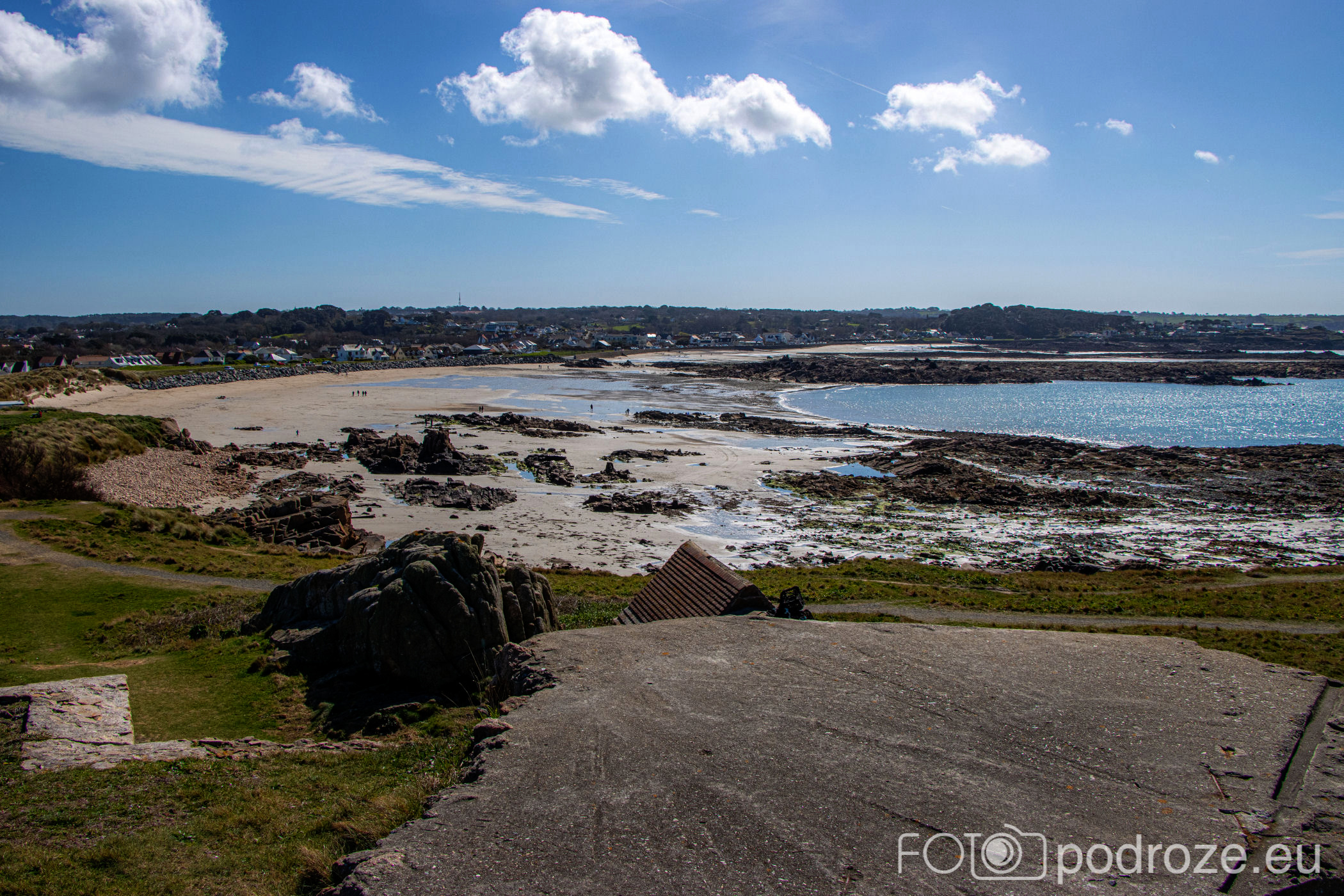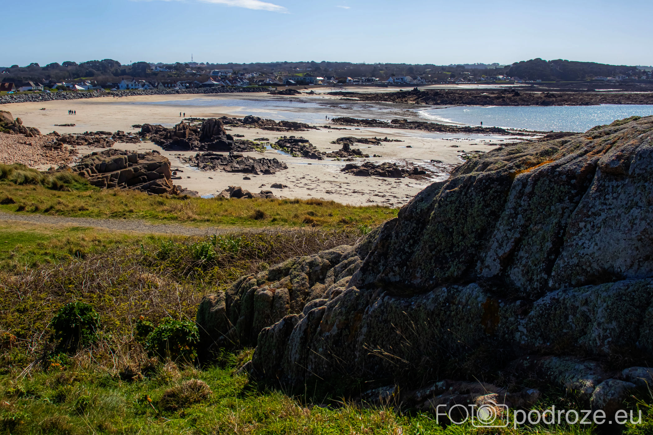 Mijamy kolejne zatoczki, pole golfowe i wydmy, ale zatrzymujemy się dopiero w okolicy Grandes Rocques. To jedna z najbardziej malowniczych zatok na północno – zachodnim wybrzeżu Guernsey. Słynie z szerokiej, piaszczystej plaży, granitowych skał wystających z piasku oraz krystalicznie czystej wody, która przyciąga zarówno plażowiczów, jak i fotografów.