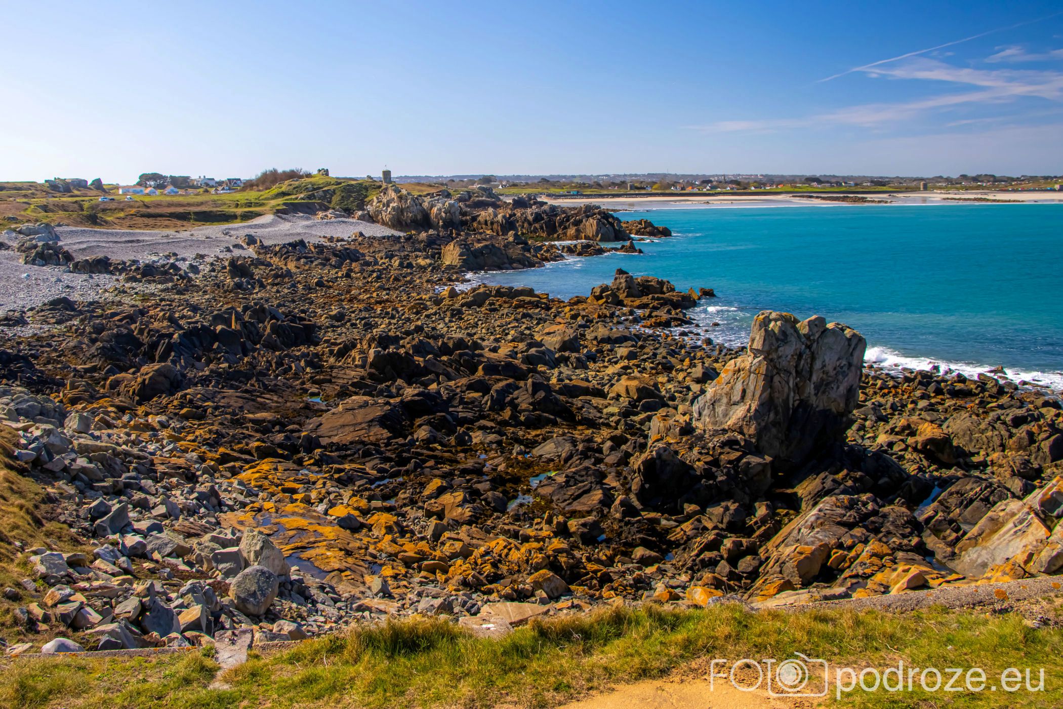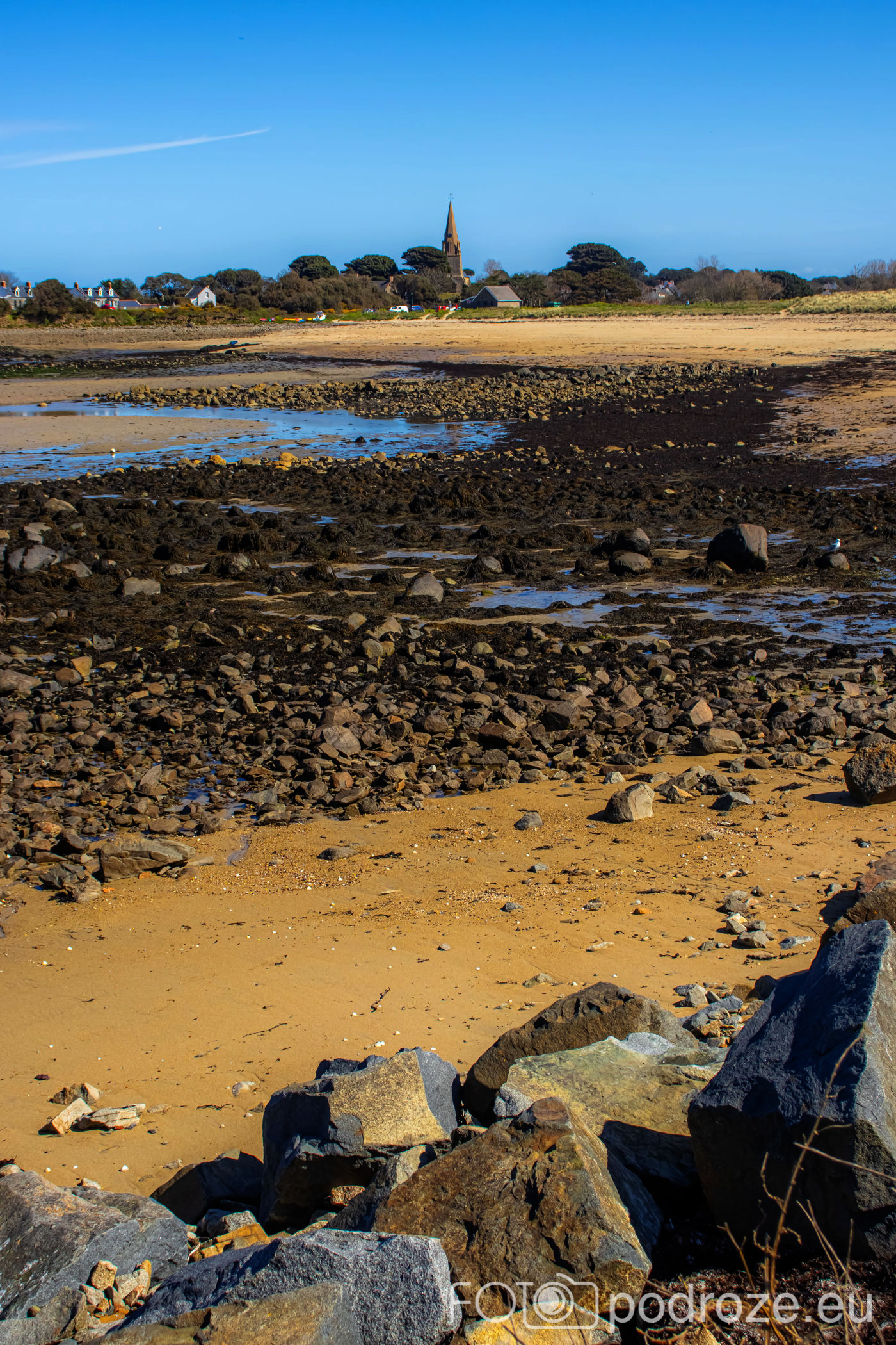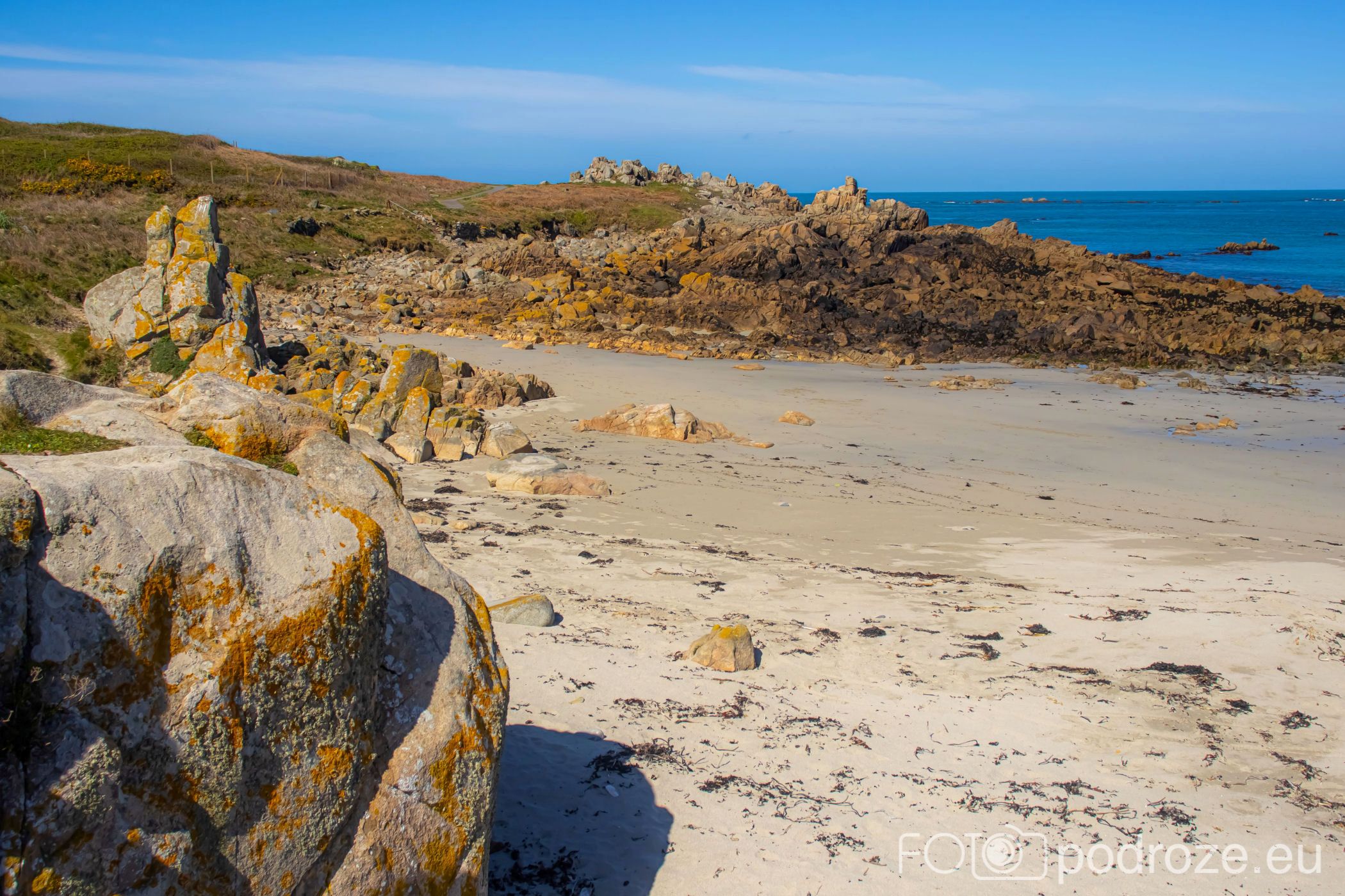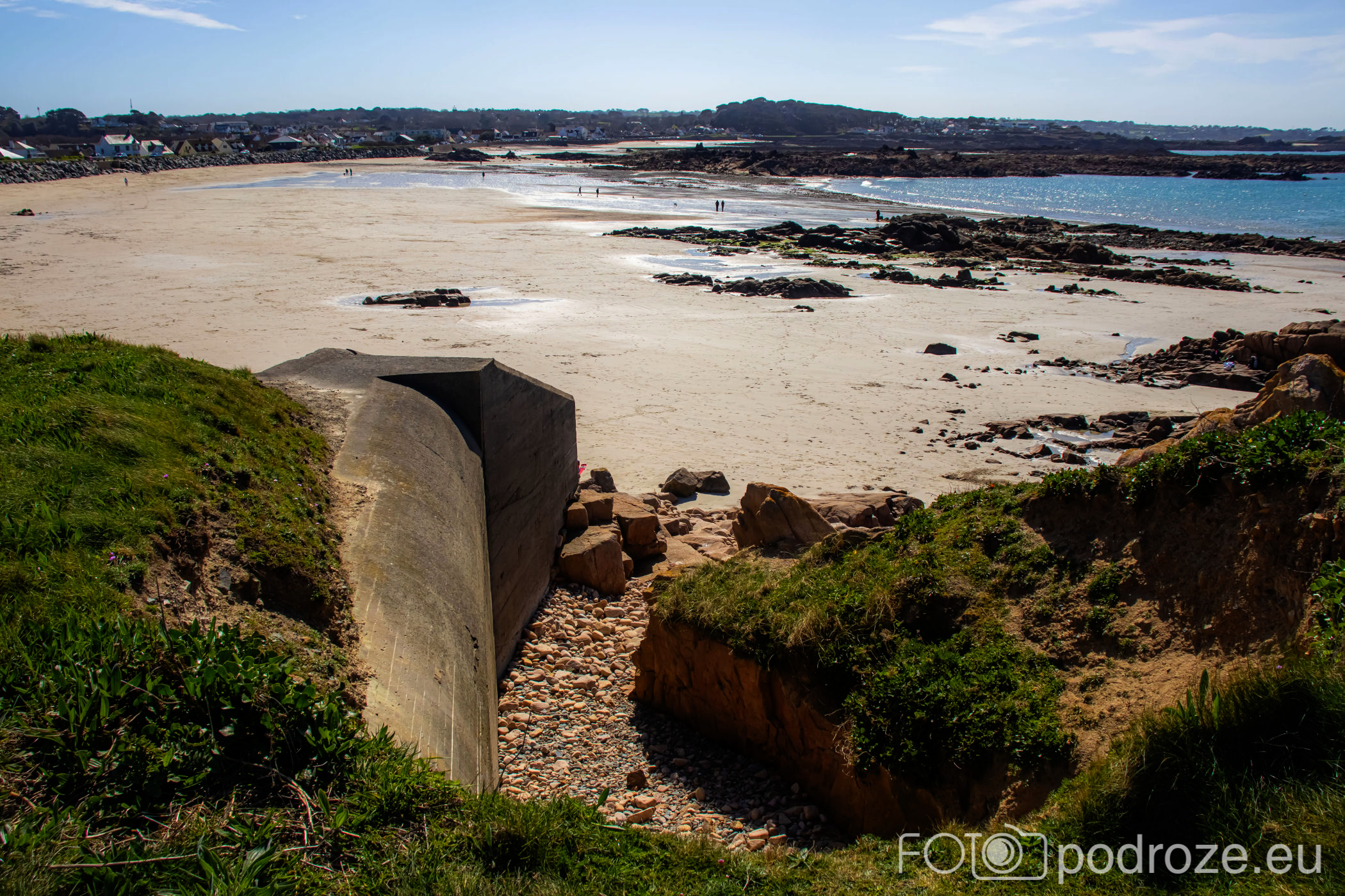 Mijamy kolejne zatoczki, pole golfowe i wydmy, ale zatrzymujemy się dopiero w okolicy Grandes Rocques. To jedna z najbardziej malowniczych zatok na północno – zachodnim wybrzeżu Guernsey. Słynie z szerokiej, piaszczystej plaży, granitowych skał wystających z piasku oraz krystalicznie czystej wody, która przyciąga zarówno plażowiczów, jak i fotografów.