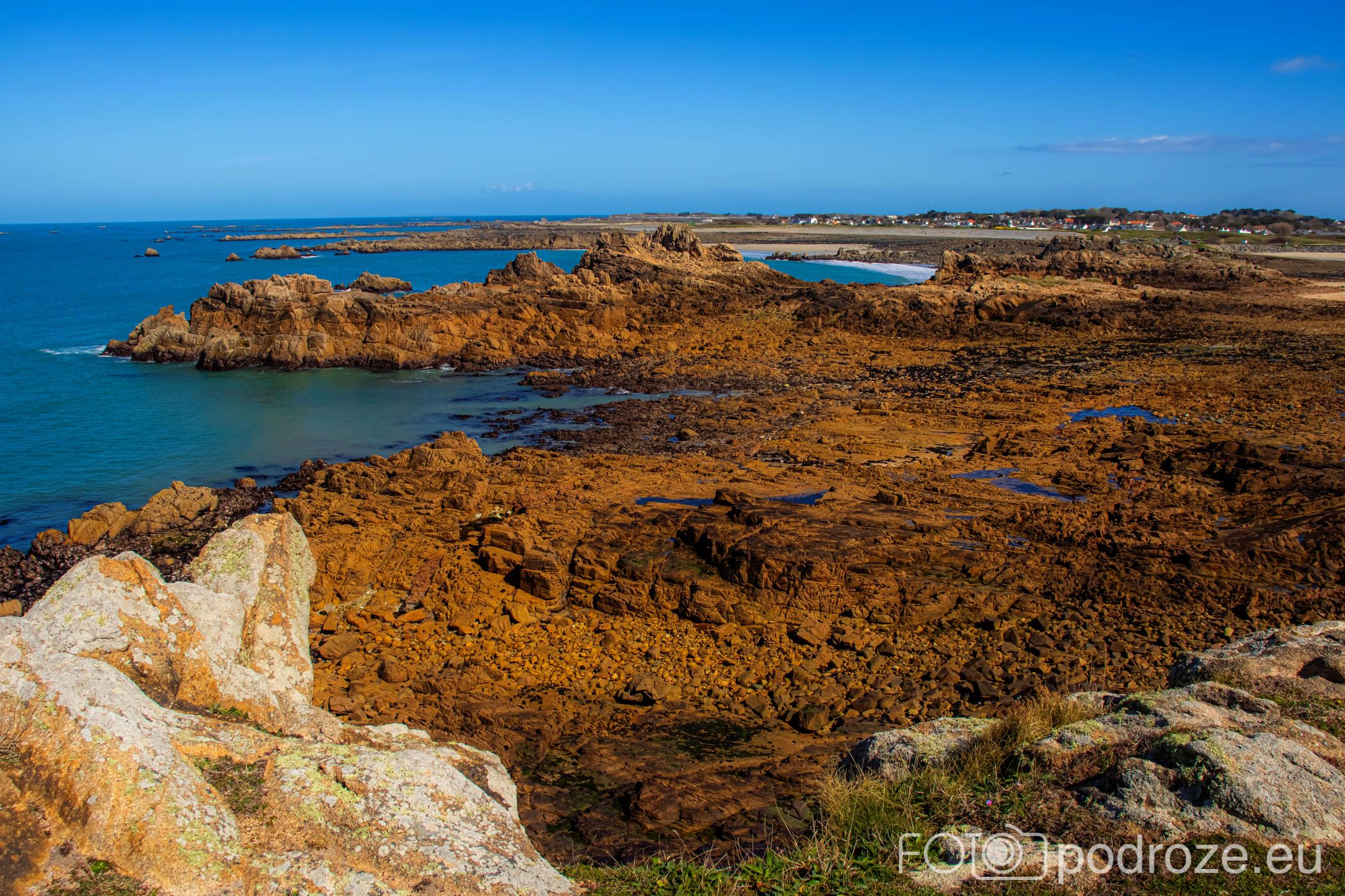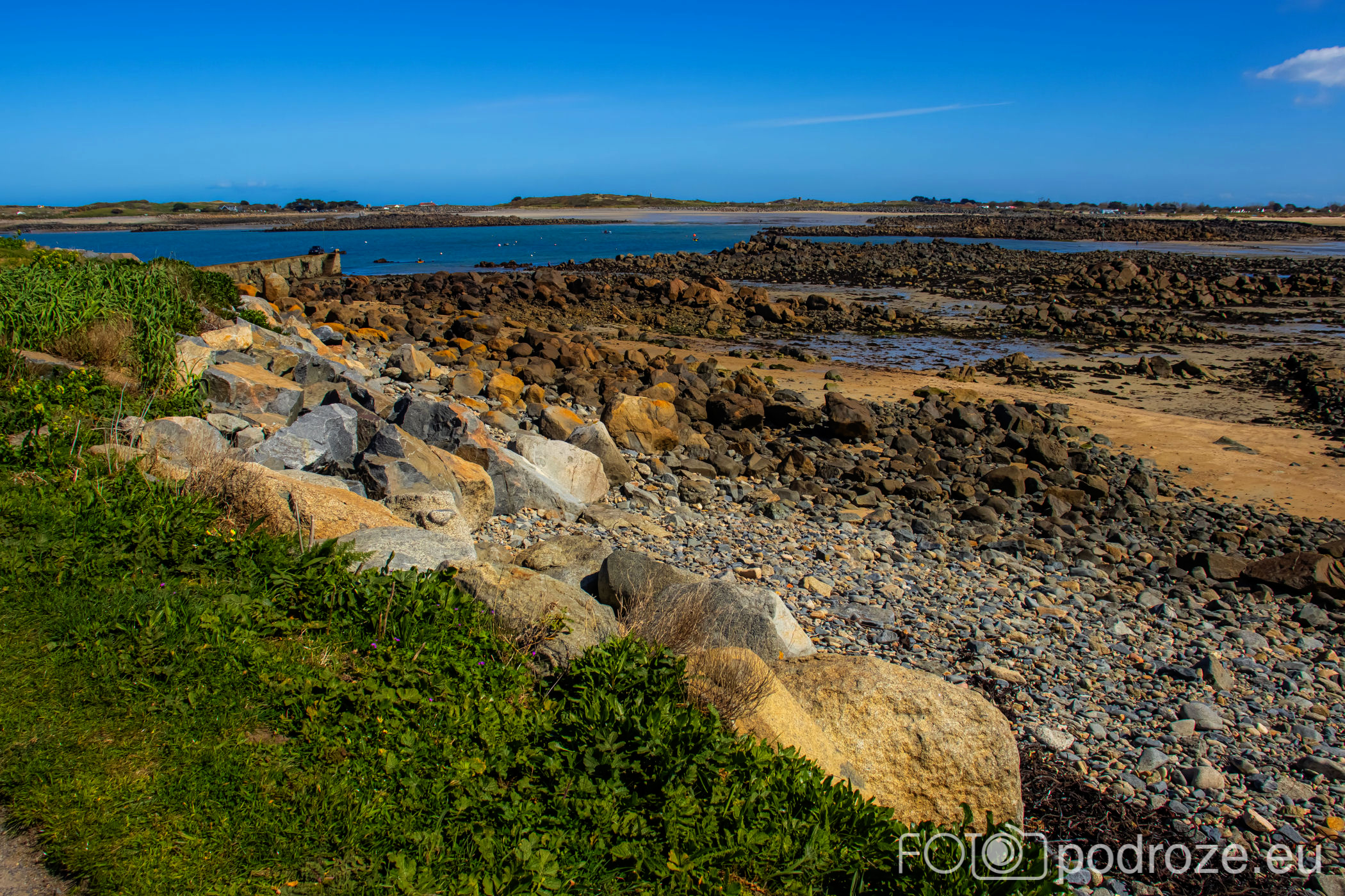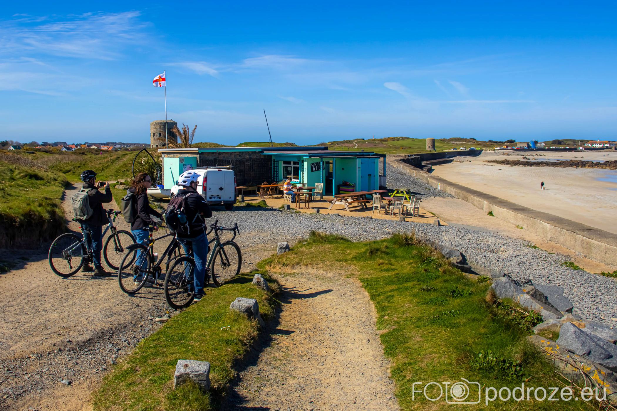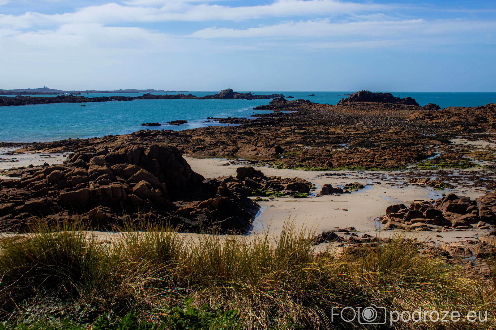 Mijamy kolejne zatoczki, pole golfowe i wydmy, ale zatrzymujemy się dopiero w okolicy Grandes Rocques. To jedna z najbardziej malowniczych zatok na północno – zachodnim wybrzeżu Guernsey. Słynie z szerokiej, piaszczystej plaży, granitowych skał wystających z piasku oraz krystalicznie czystej wody, która przyciąga zarówno plażowiczów, jak i fotografów.
