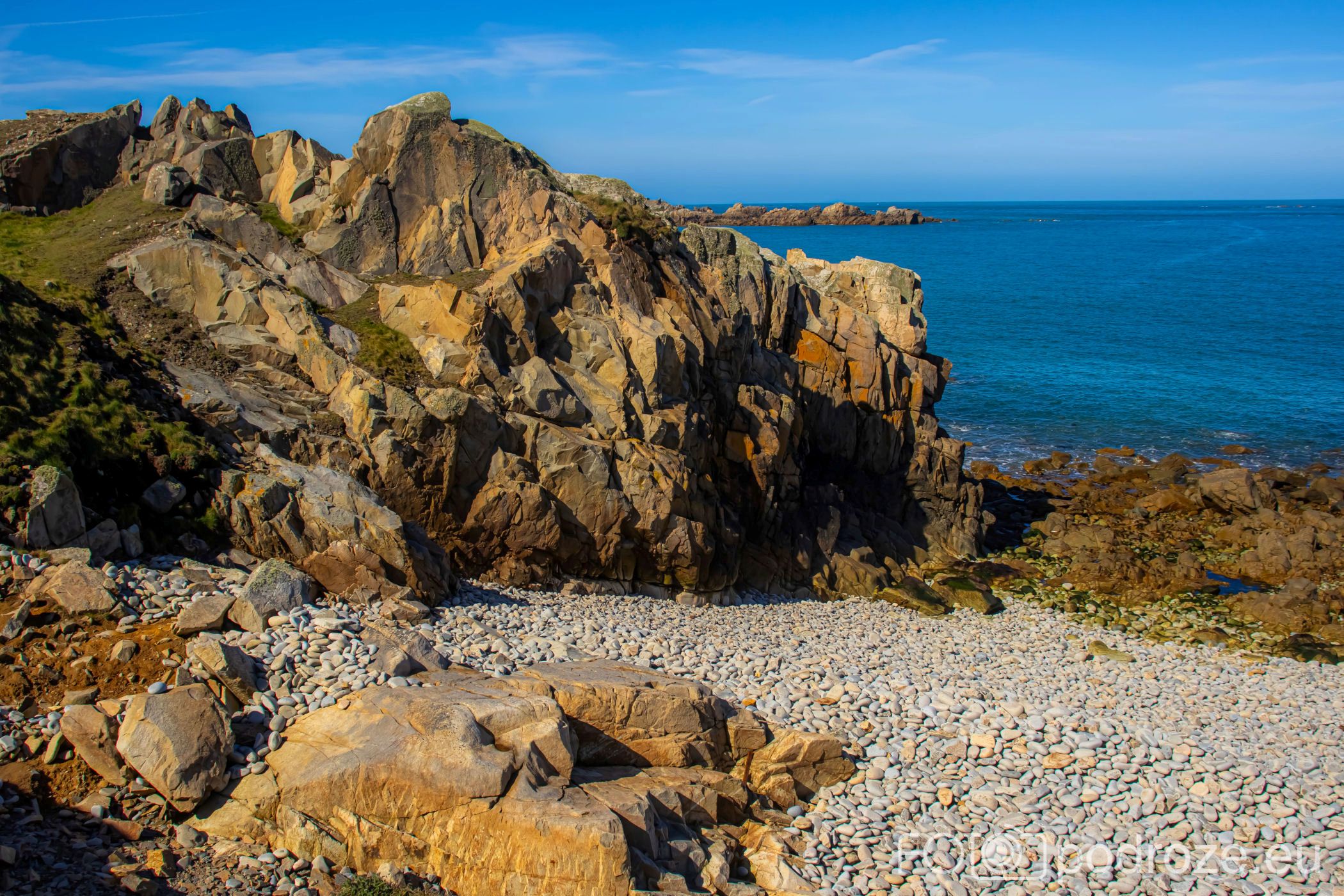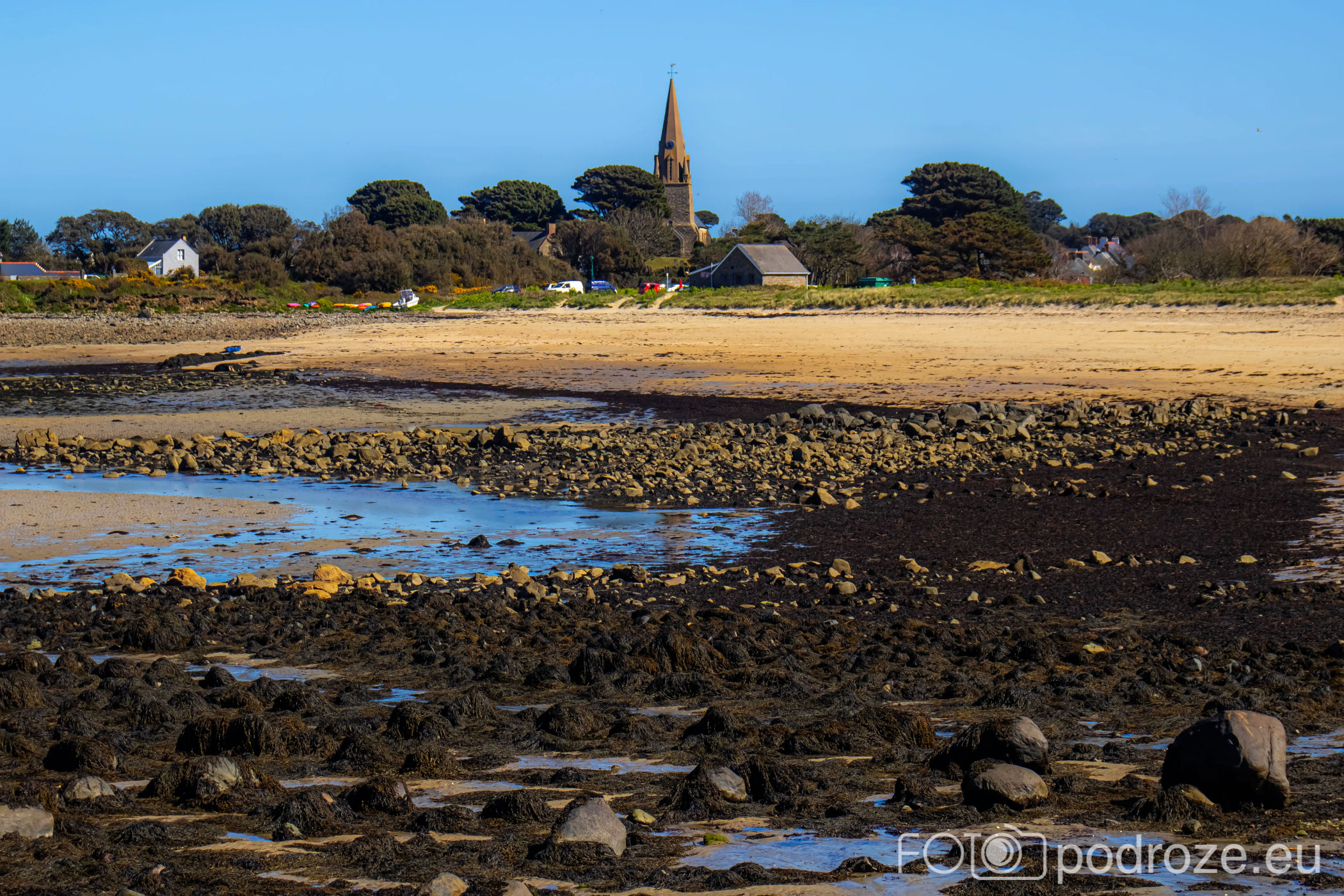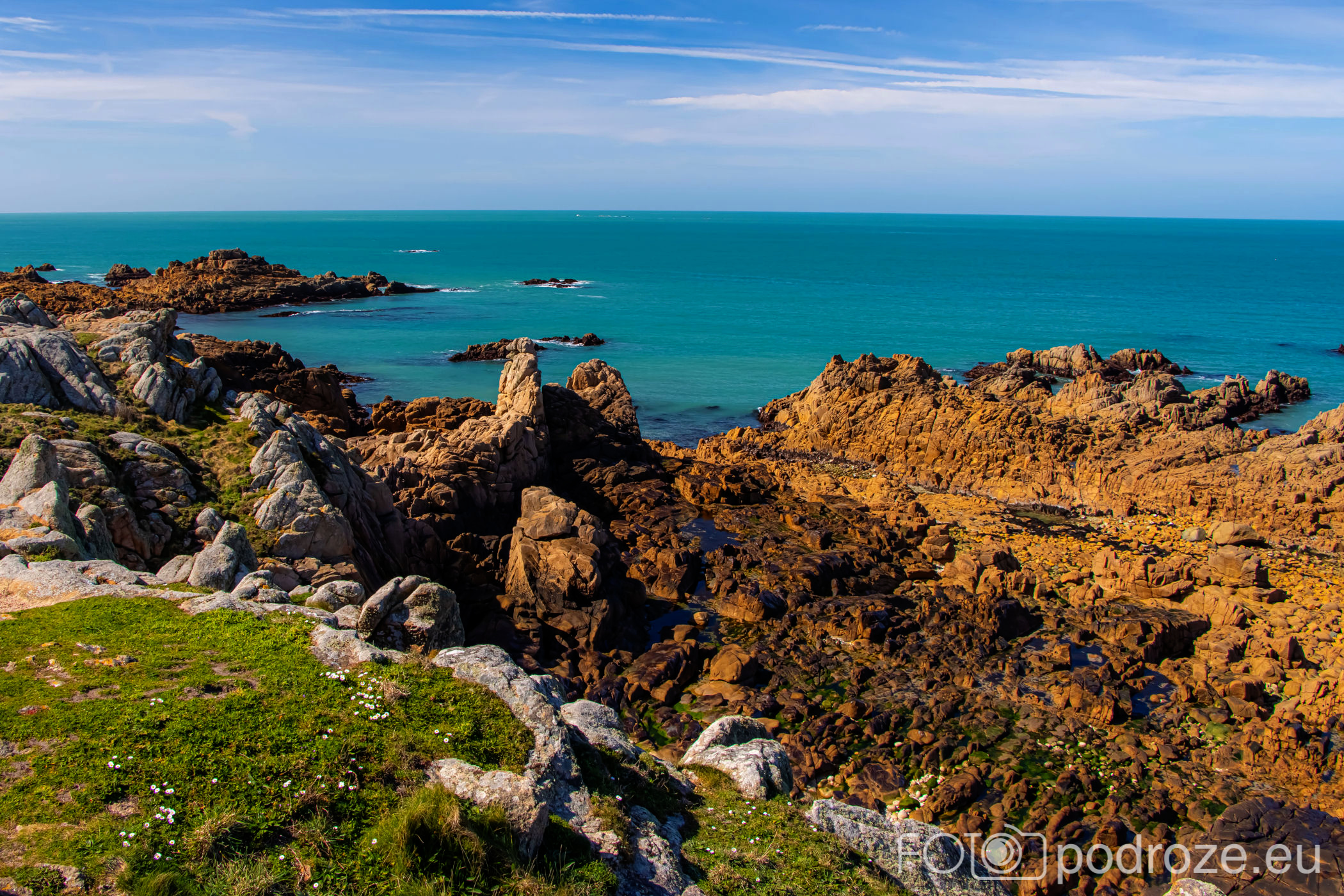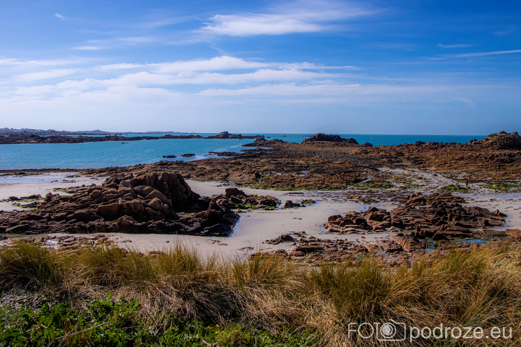 Mijamy kolejne zatoczki, pole golfowe i wydmy, ale zatrzymujemy się dopiero w okolicy Grandes Rocques. To jedna z najbardziej malowniczych zatok na północno – zachodnim wybrzeżu Guernsey. Słynie z szerokiej, piaszczystej plaży, granitowych skał wystających z piasku oraz krystalicznie czystej wody, która przyciąga zarówno plażowiczów, jak i fotografów.