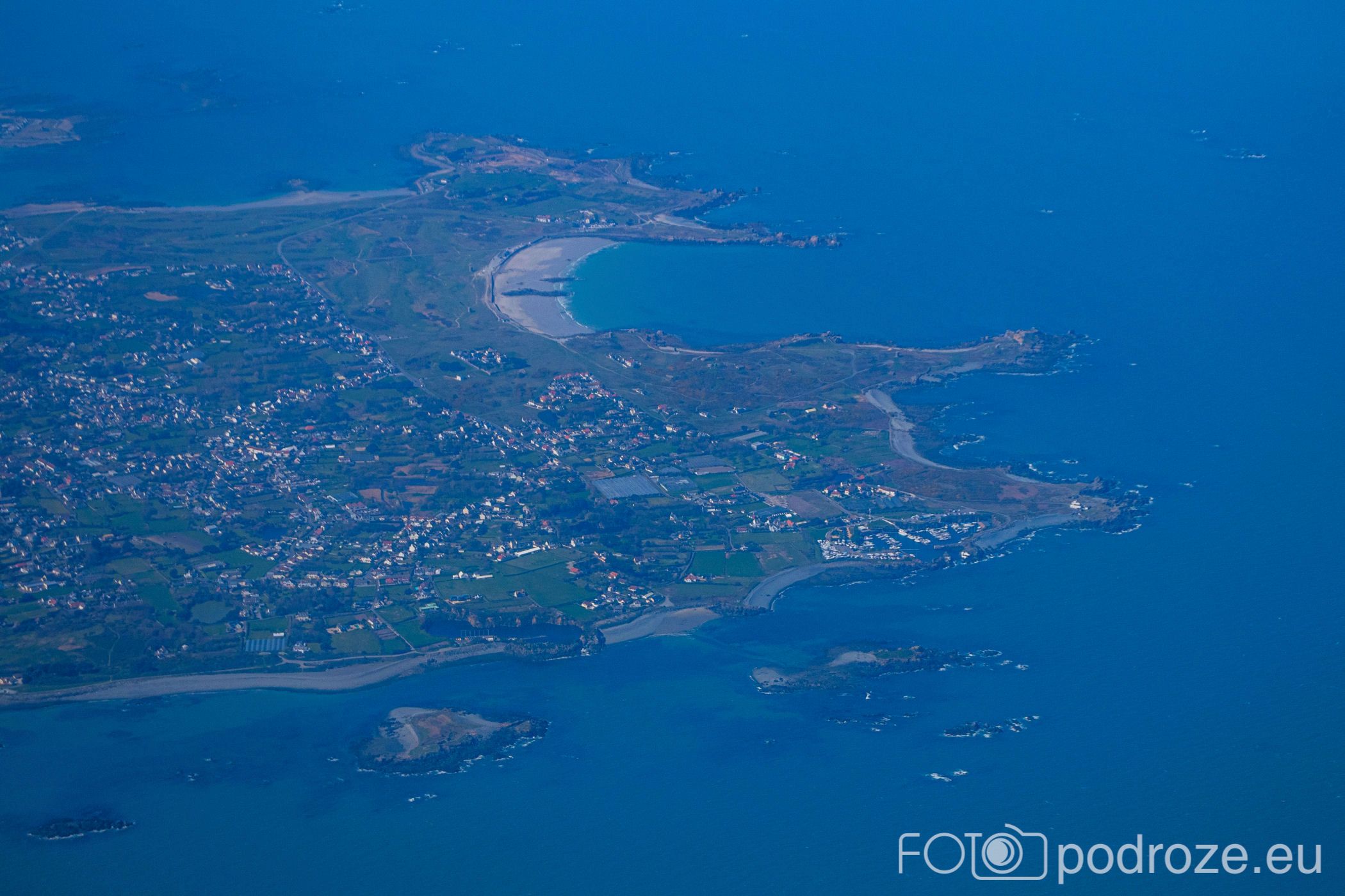 Północne Guernsey to idealne miejsce dla tych, którzy szukają bliskości natury, chcą odkrywać mniej uczęszczane ścieżki i poczuć prawdziwy rytm życia na wyspie. W tym przewodniku pokażę Wam najpiękniejsze i najciekawsze miejsca północnego wybrzeża, które udało nam się zobaczyć. Początkowo planowałam połączyć całe północno-zachodnie wybrzeże w jednym wpisie, ale gdy poznacie ilość atrakcji Guernsey, zrozumiecie, dlaczego przewodnik został podzielony na kilka części. Poniżej zdjęcie północnego cypla, które udało mi się uchwycić z samolotu.