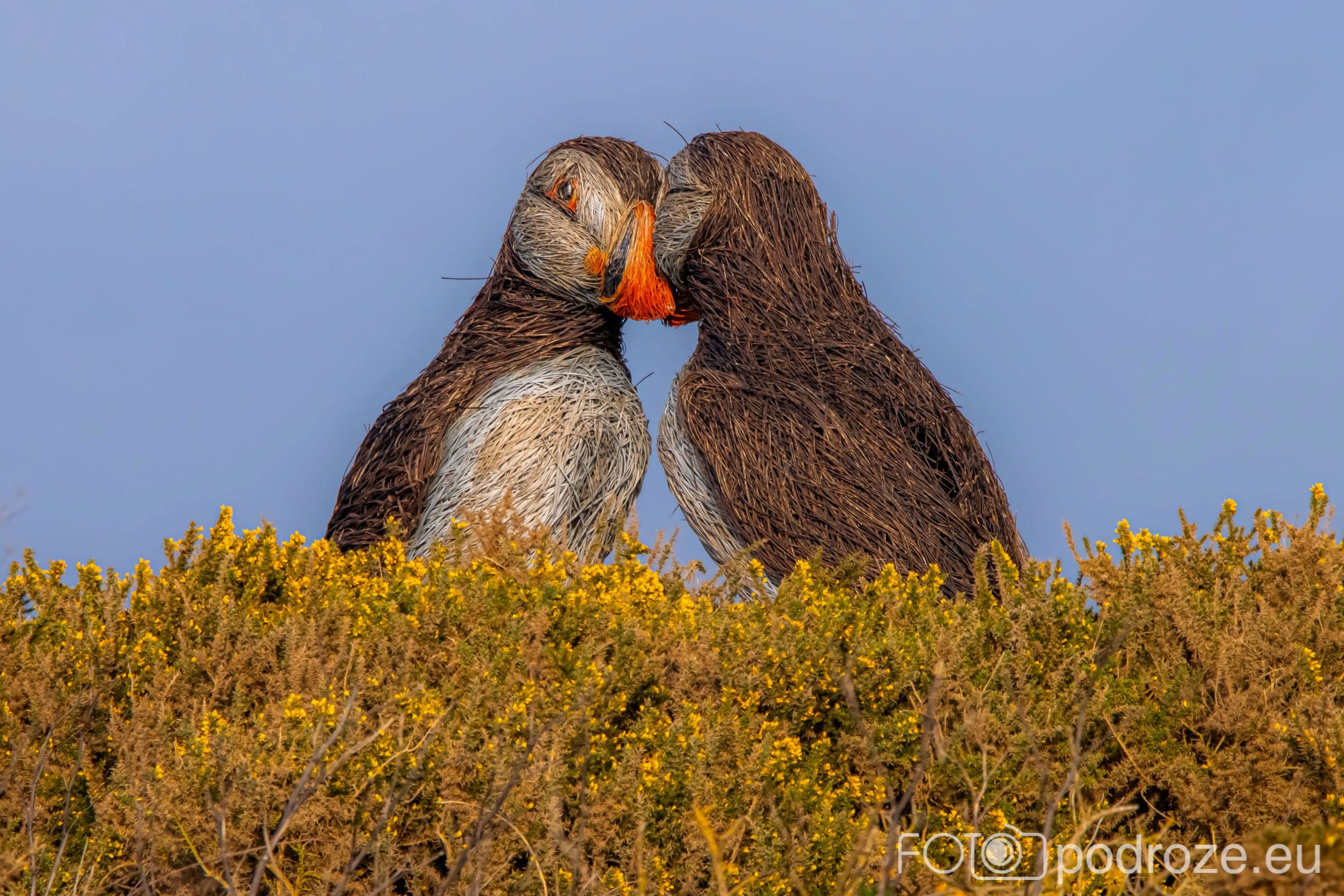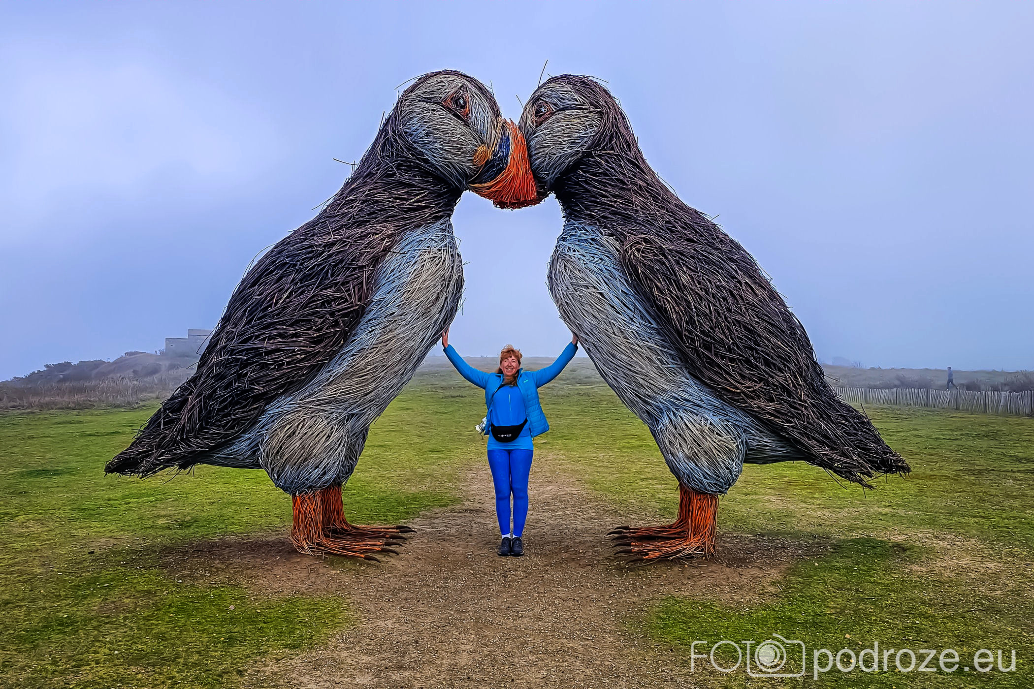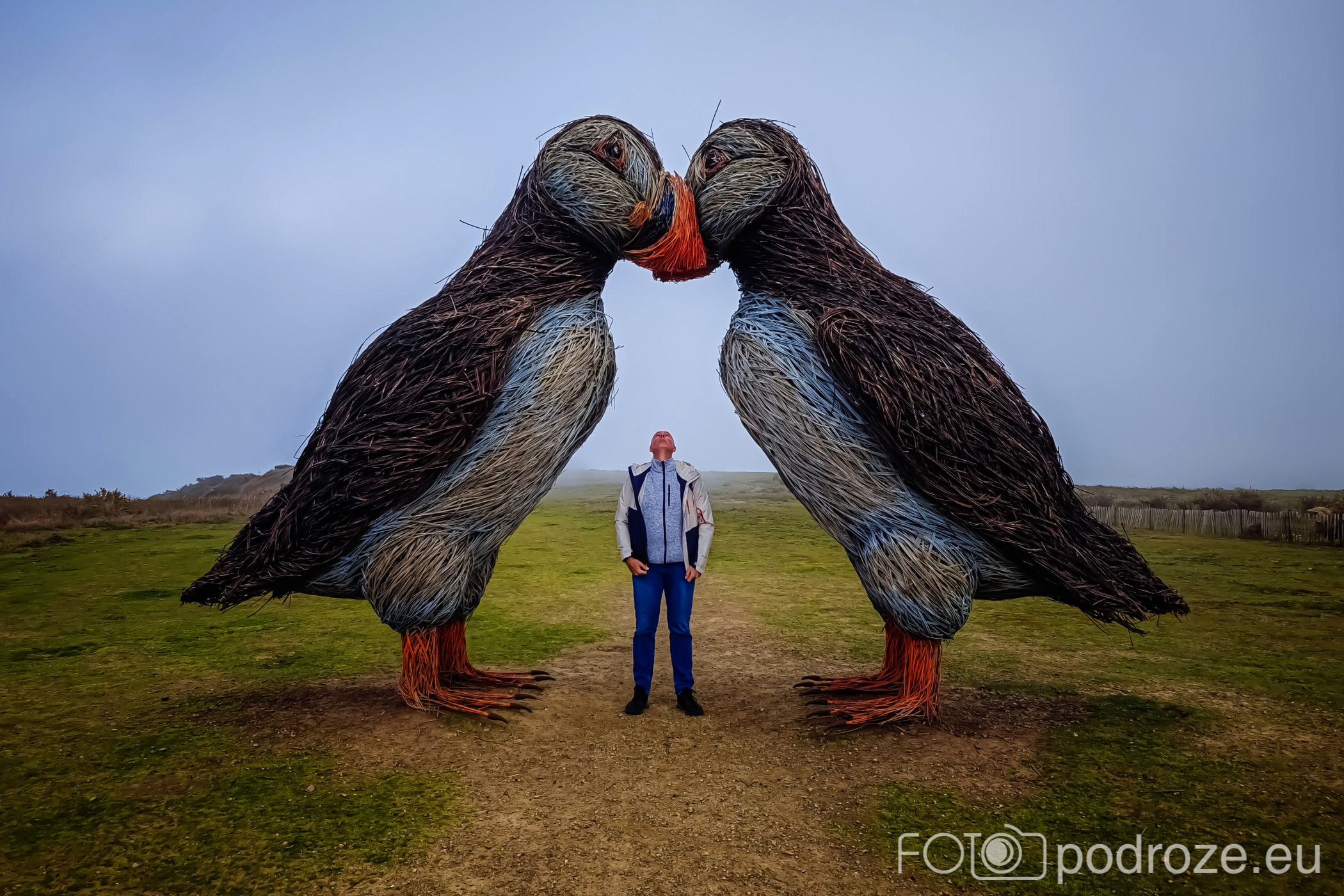 Plémont to jedno z ostatnich miejsc na Jersey, gdzie gniazdują maskonury . To urocze ptaki morskie o kolorowych dziobach, które przypominają miniaturowe papugi w czarno-białych garniturach. Mieliśmy okazje widzieć je wcześniej Na Islandii, w Szkocji i w Walii więc nie czulismy się rozczarowani, ze tu było na nie prostu za wcześnie. Maskonury pojawiają się bowiem na wybrzeżu w kwietniu i gniazdują do lipca. Ale oprócz maskonurów można tu zaobserwować również fulmary, kormorany, mewy trójpalczaste i czajki morskie. W meijscu występowania maskonurów na górze klifów ostawiono fantastyczne figury tych ptaków.