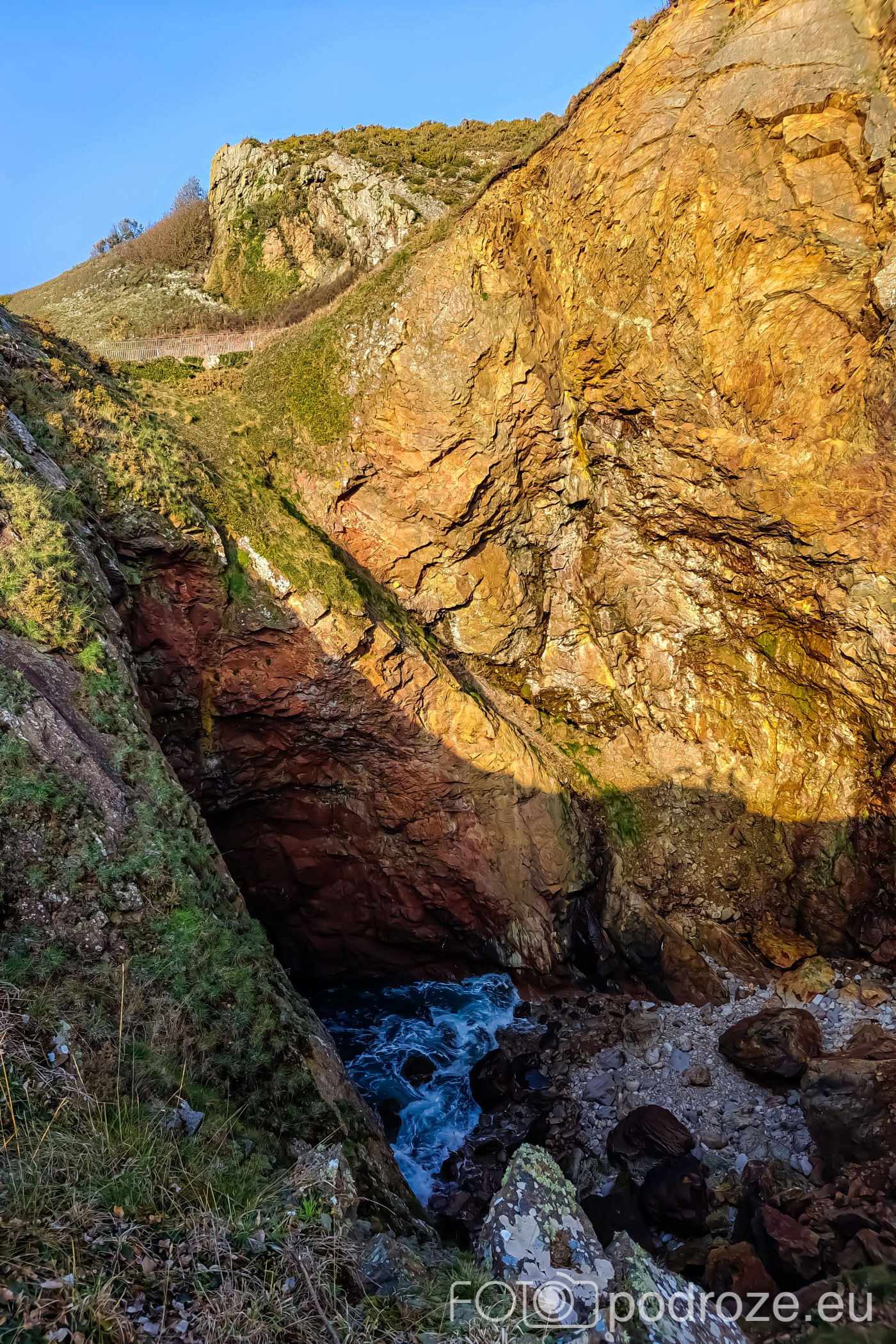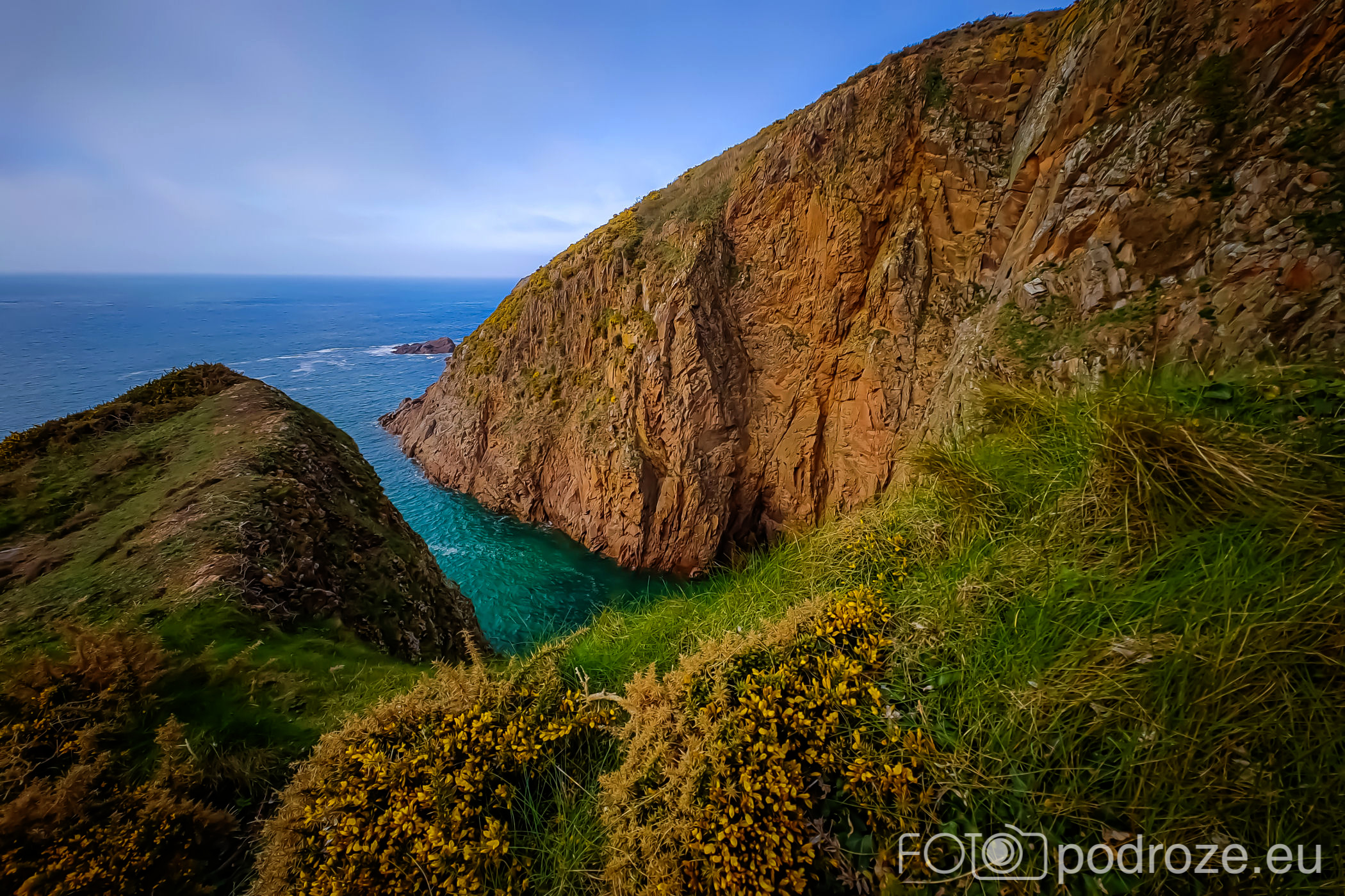 Do Plémont trafiamy już kolejnego dnia, niestety przy dużo gorszej pogodzie, gdy niebo zasnuły bardzo niskie chmury i większość klifów była we mgle. Ale nawet w takiej aurze miejsce okazało się jednym z najbardziej fascynujących miejsc na północnym wybrzeżu wyspy Jersey.