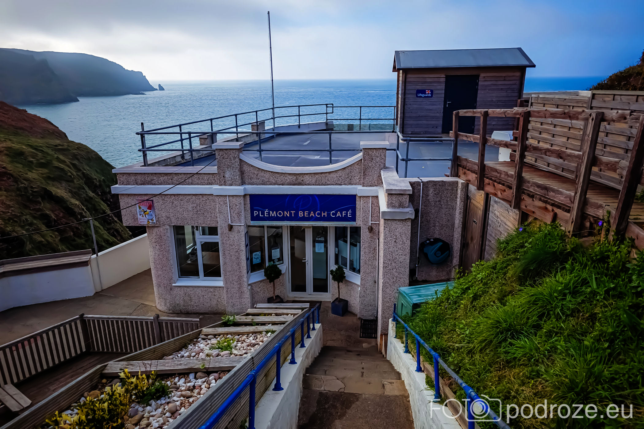 Przy plaży znajduje się parking oraz czynna niestety tylko do 16.00 godziny Plemont Beach Cafe .