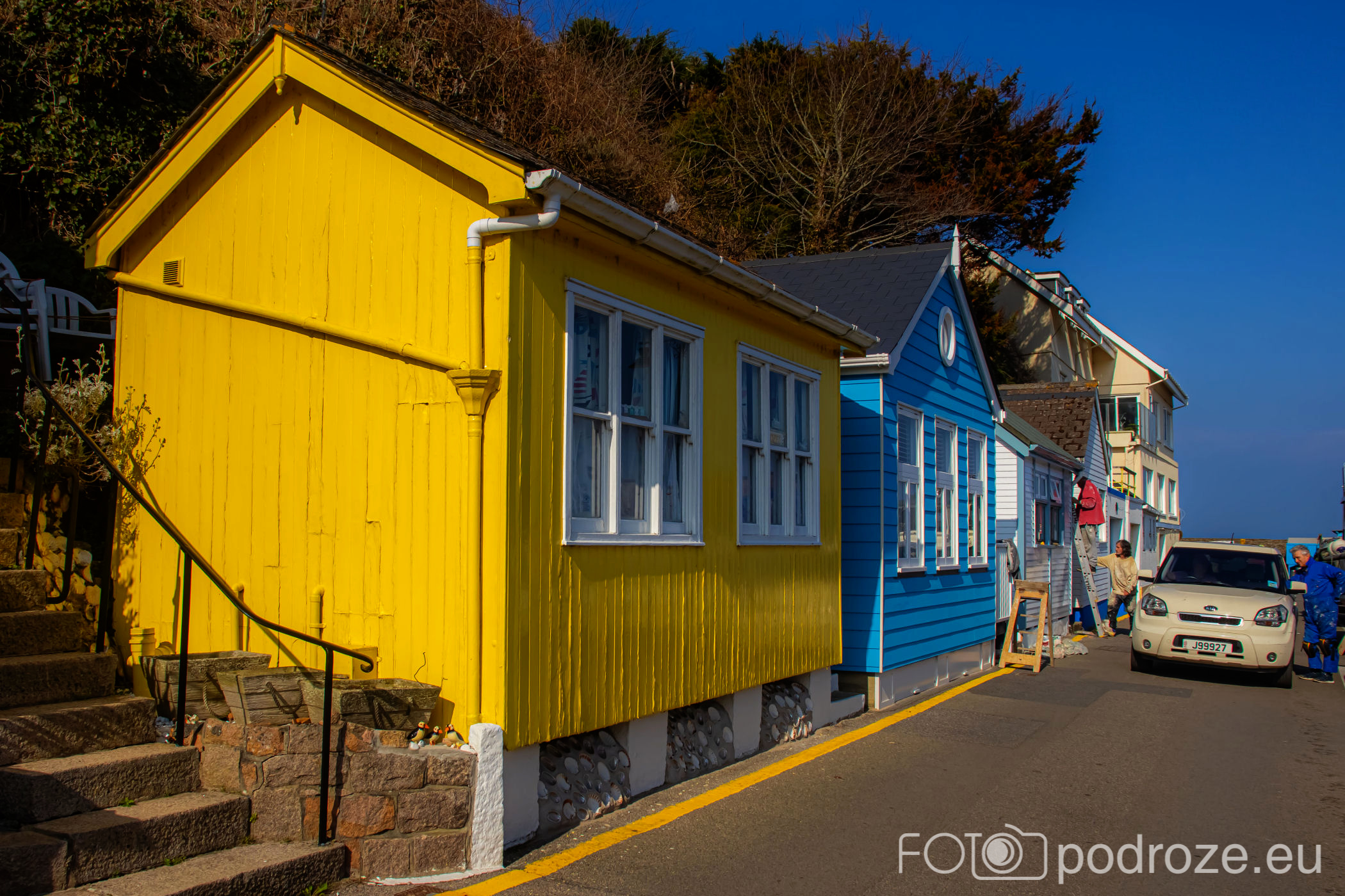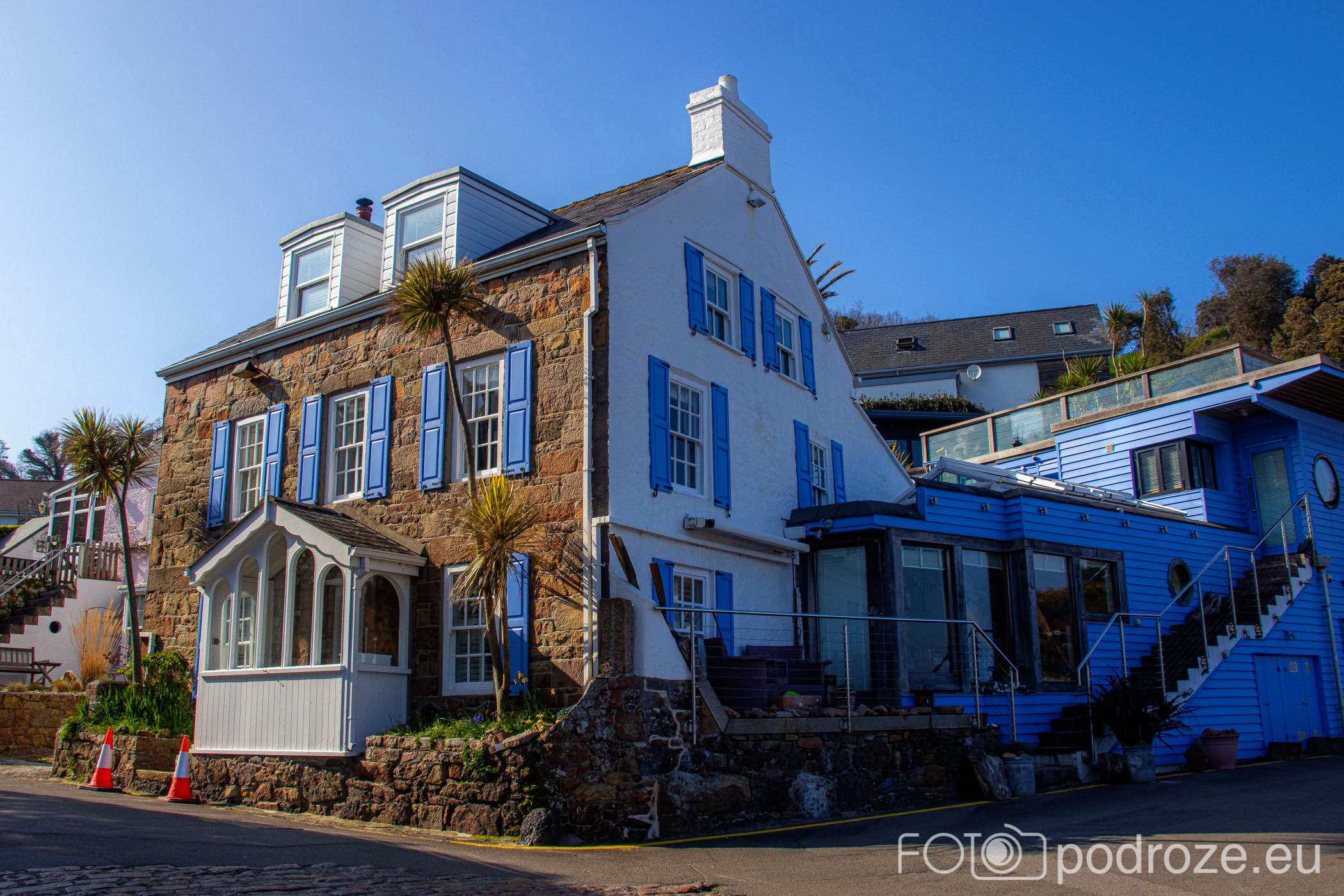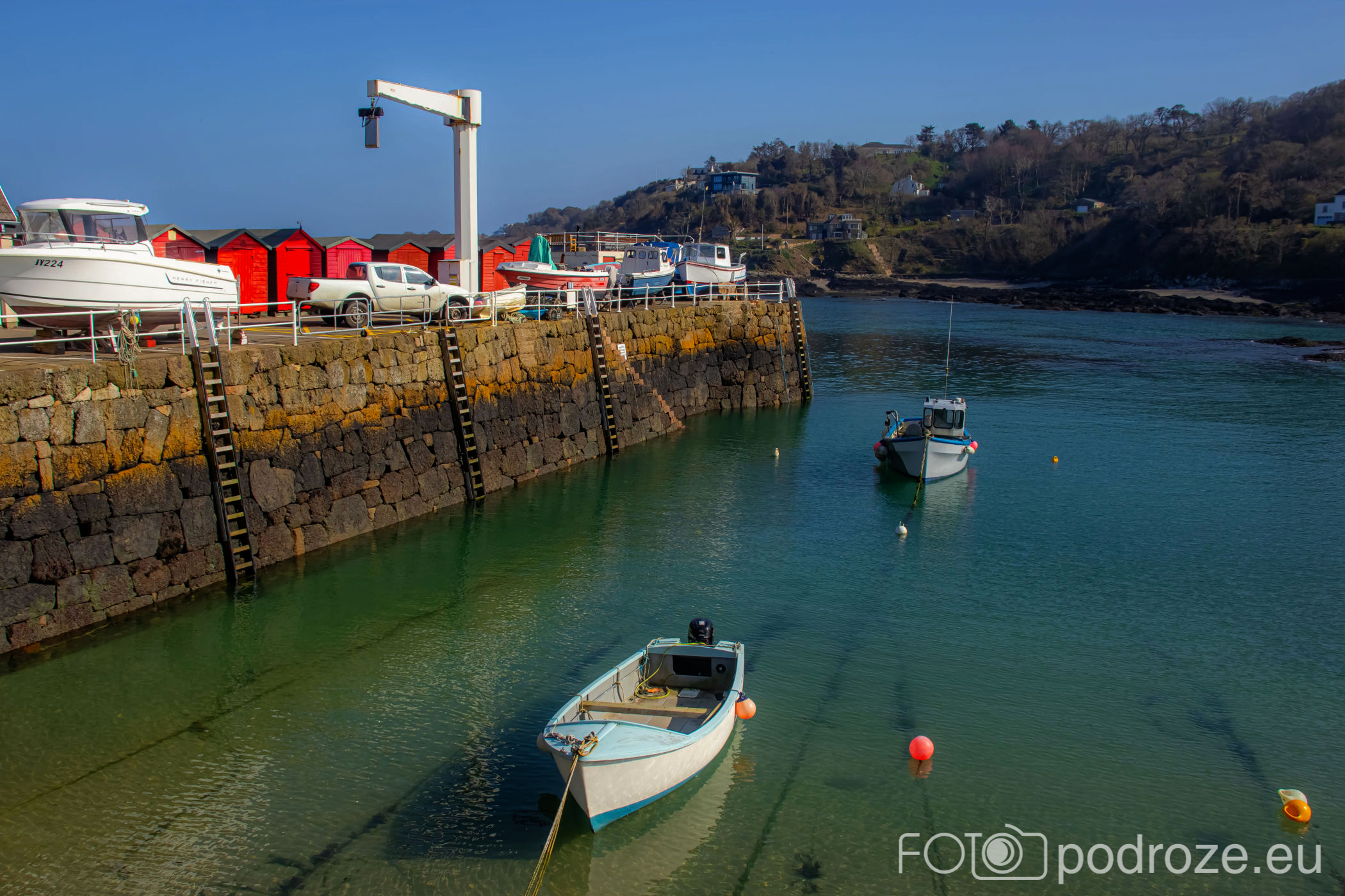 Nasz przewodnik po północnym wybrzeżu zacznę od maleńkiego porciku na wschodzie wybrzeża. Zatoka Rozel (Rozel Bay) to jedno z najbardziej malowniczych i spokojnych miejsc na północnym wybrzeżu Jersey. Ukryta między stromymi klifami, otoczona zielonymi wzgórzami i lasami, ma typową atmosferę małej rybackiej osady. To, co urzeka tu najbardziej to kolorowe, maleńkie drewniane domki przy nabrzeżu, jakże nie pasujące do obrazu bogatej wyspy.