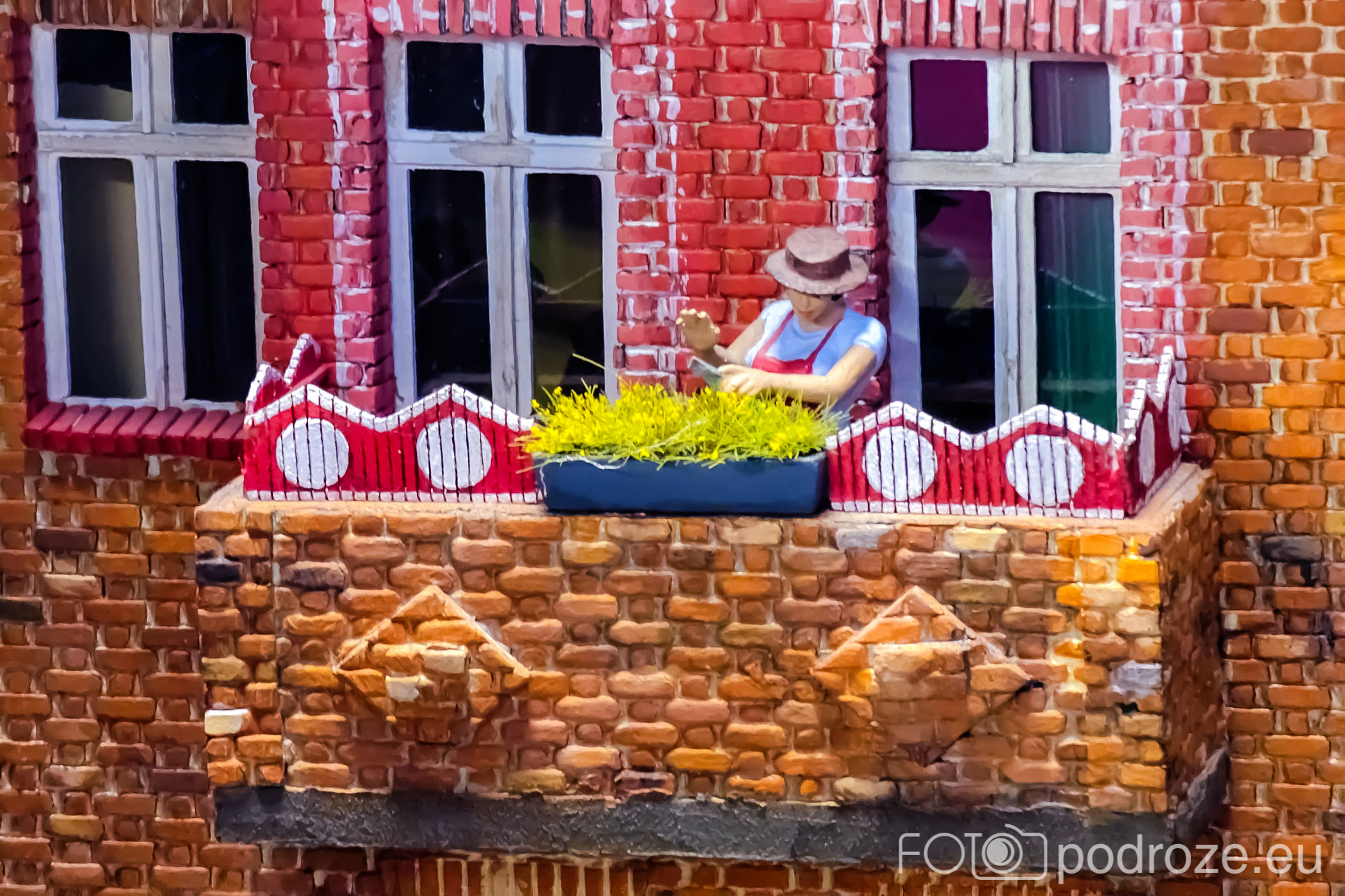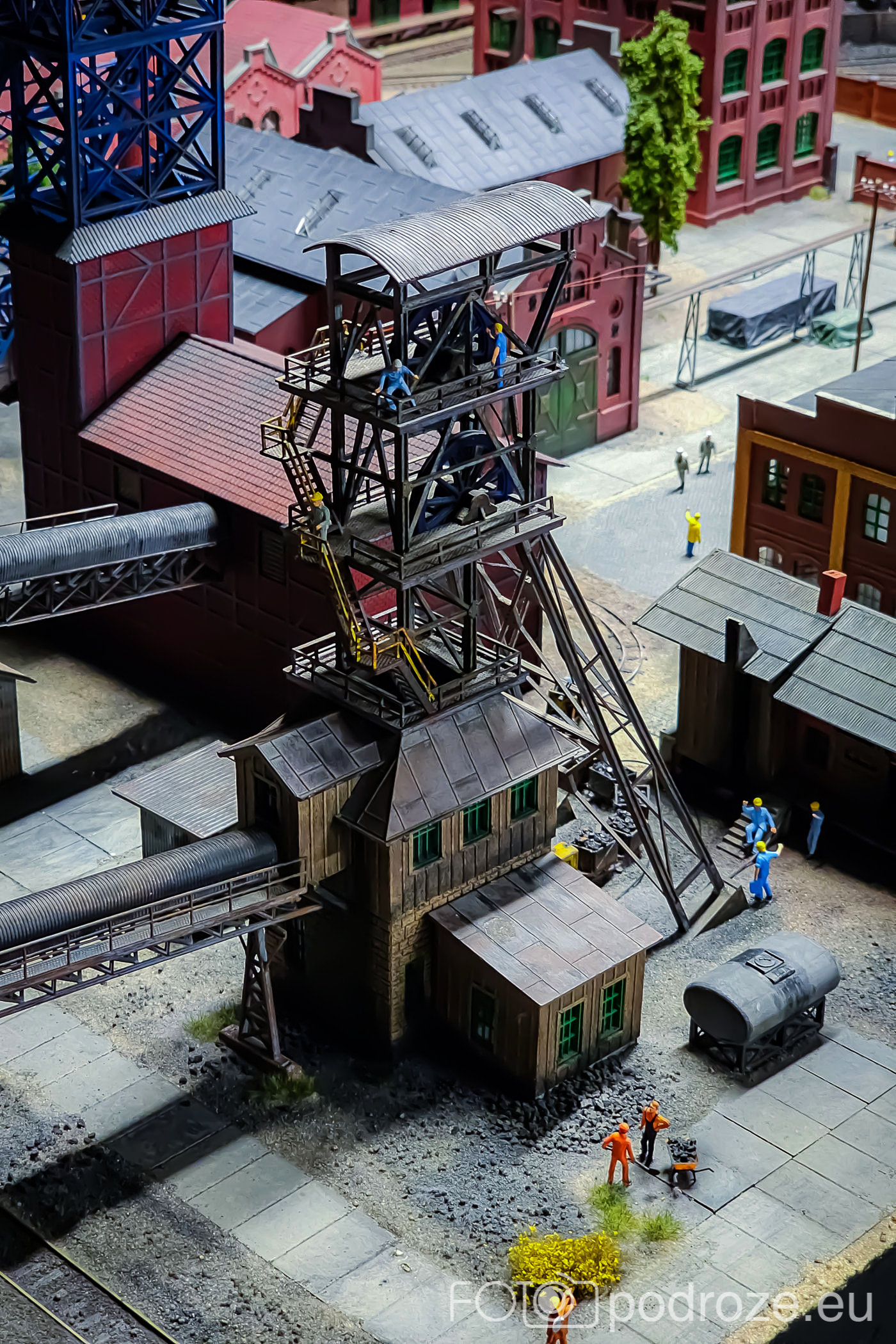 Tuż za centrum i dworcem stare tereny po hucie, wieża ciśnień i jakaś stara zabudowa. Te tereny obecnie wyglądają już zupełnie inaczej, ale faktycznie lata temu, kiedy tworzono Kolejkowo, tereny te były bardzo zaniedbane. W galerii też inna część makiety z familokami , a i siostra zakonna z Saint-Tropez znalazła tu swoje miejsce na hałdzie . Wizja twórców jest przyznam ciekawa.
