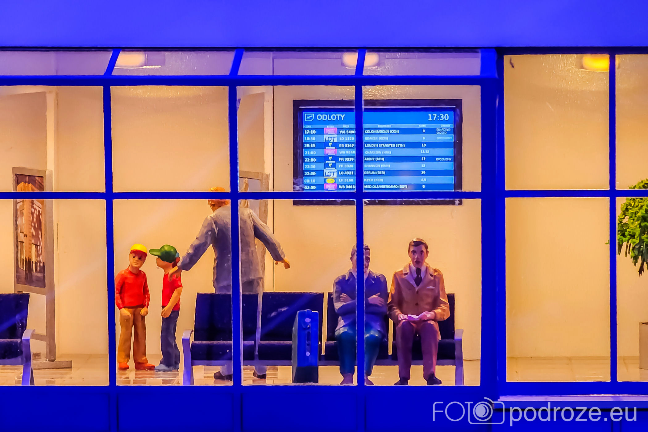 To teraz zapraszamy na lotnisko, które znajdziecie na lewo od górskiej makiety. Na wyświetlaczu wewnątrz hali zmienia się nawet rozkład odlotów.