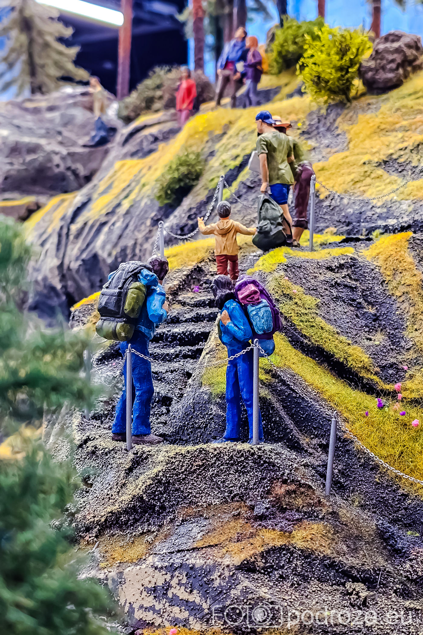 Wizytę na piętrze zaczynamy od górskiej wędrówki po Beskidzie Śląskim. Mamy tu pomieszaną Wisłę z jej słynnym wiaduktem kolejowym i wodospadem, stacje kolejową, Czantorię w Ustroniu, Trzy Kopce Wiślańskie ze słynnym garbusem, wieżę widokową na Baraniej Górze. urocze pomieszanie z poplątaniem.