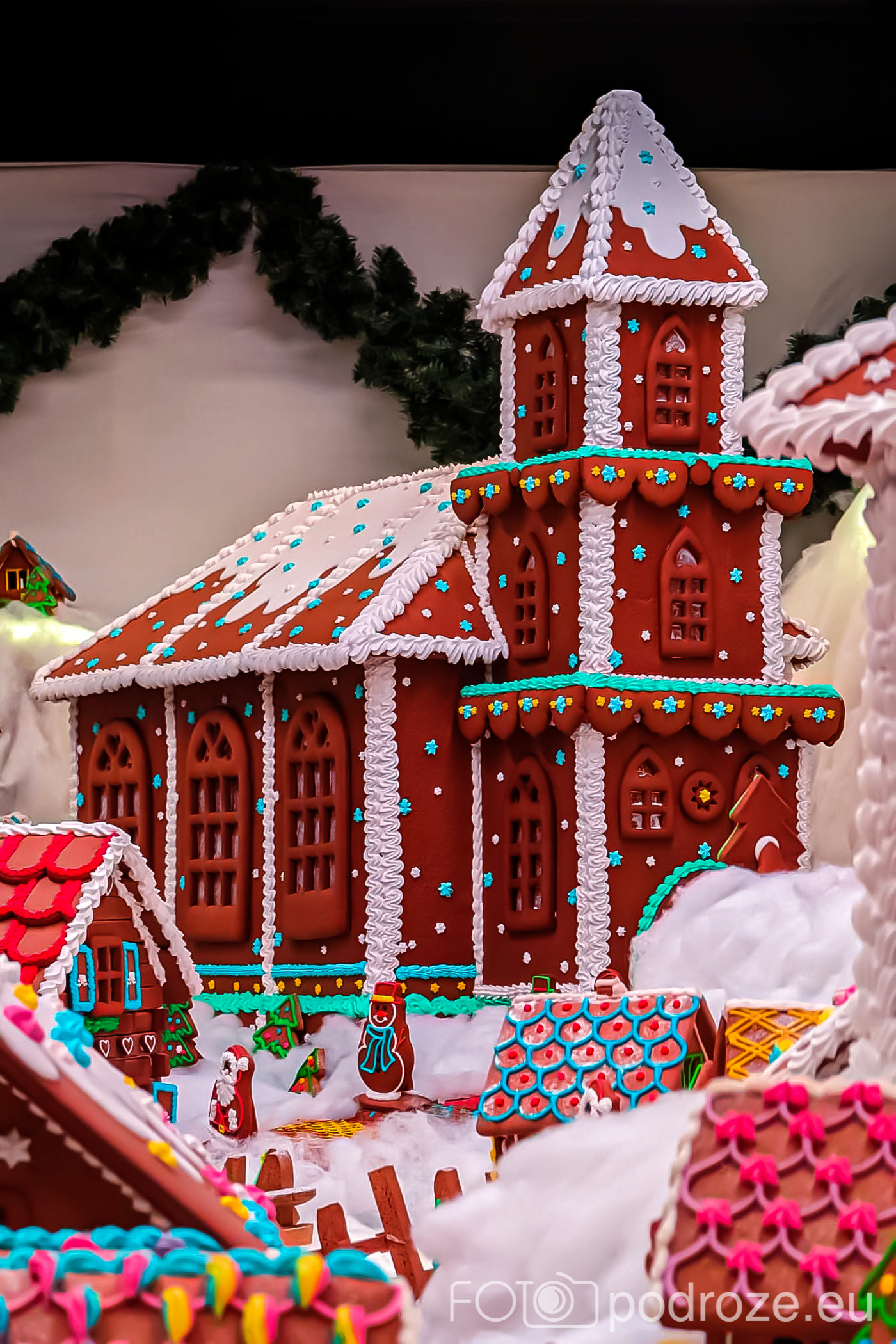Są domki, kościoły, zamek, kolorowe kamienice , piernikowe choinki. W Mieście z Piernika zobaczycie też bajkowe sceny stworzone przez Jowitę Woszczyńską, mistrzynię świata w dekoracji tortów. Są tu nawet Czerwony Kapturek i Wilk, a także Kaj i Królowa Śniegu. Szukanie postacie też może być niezłą zabawą.