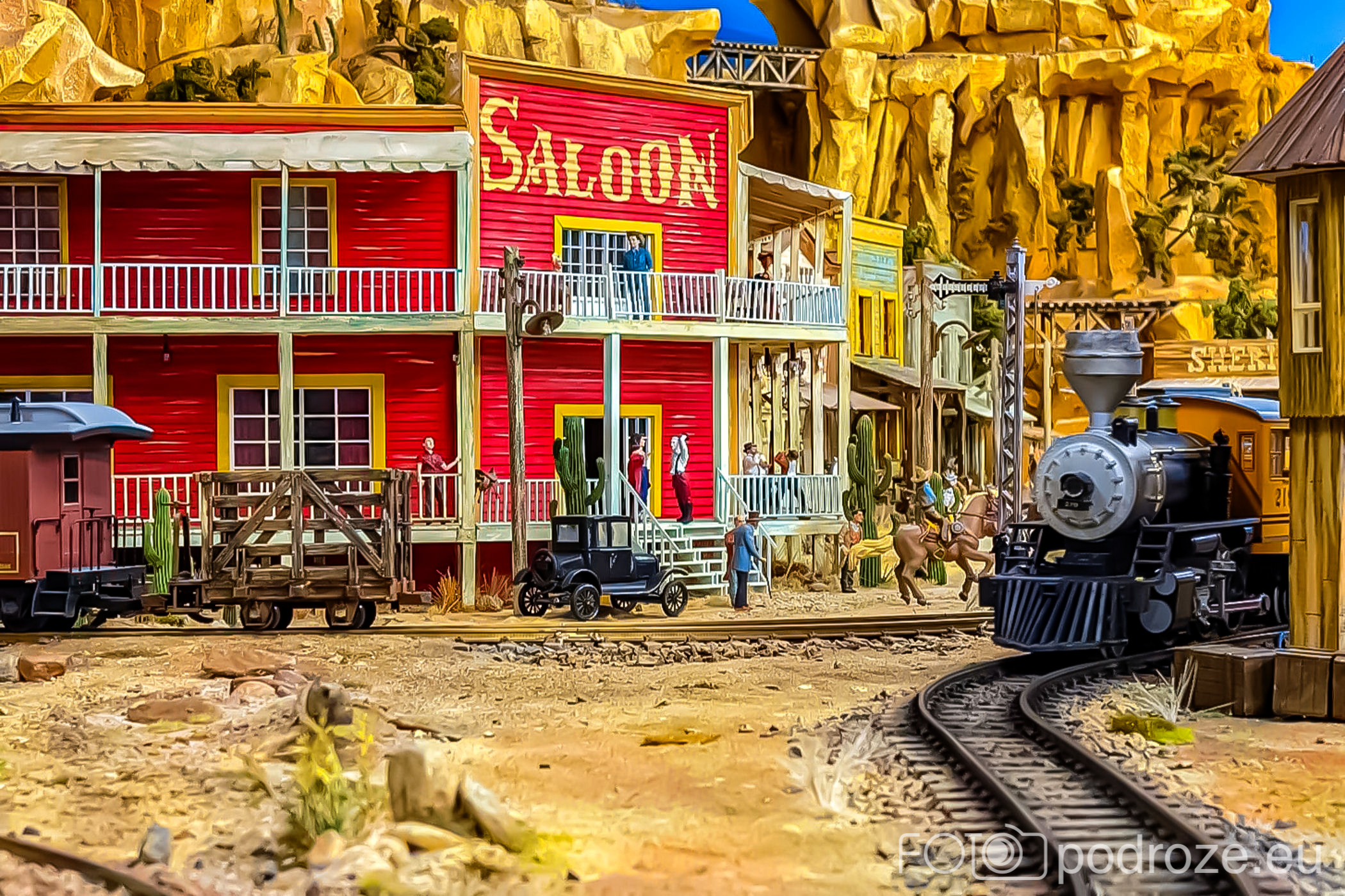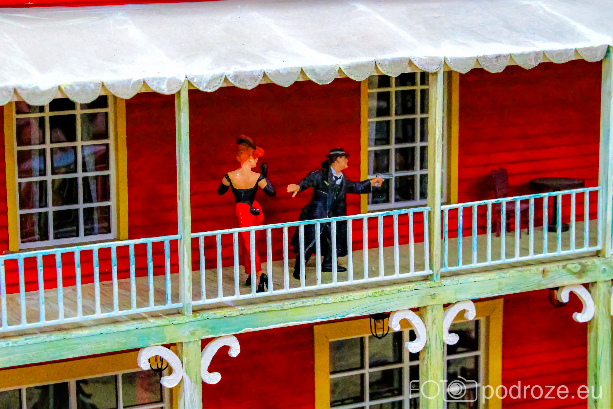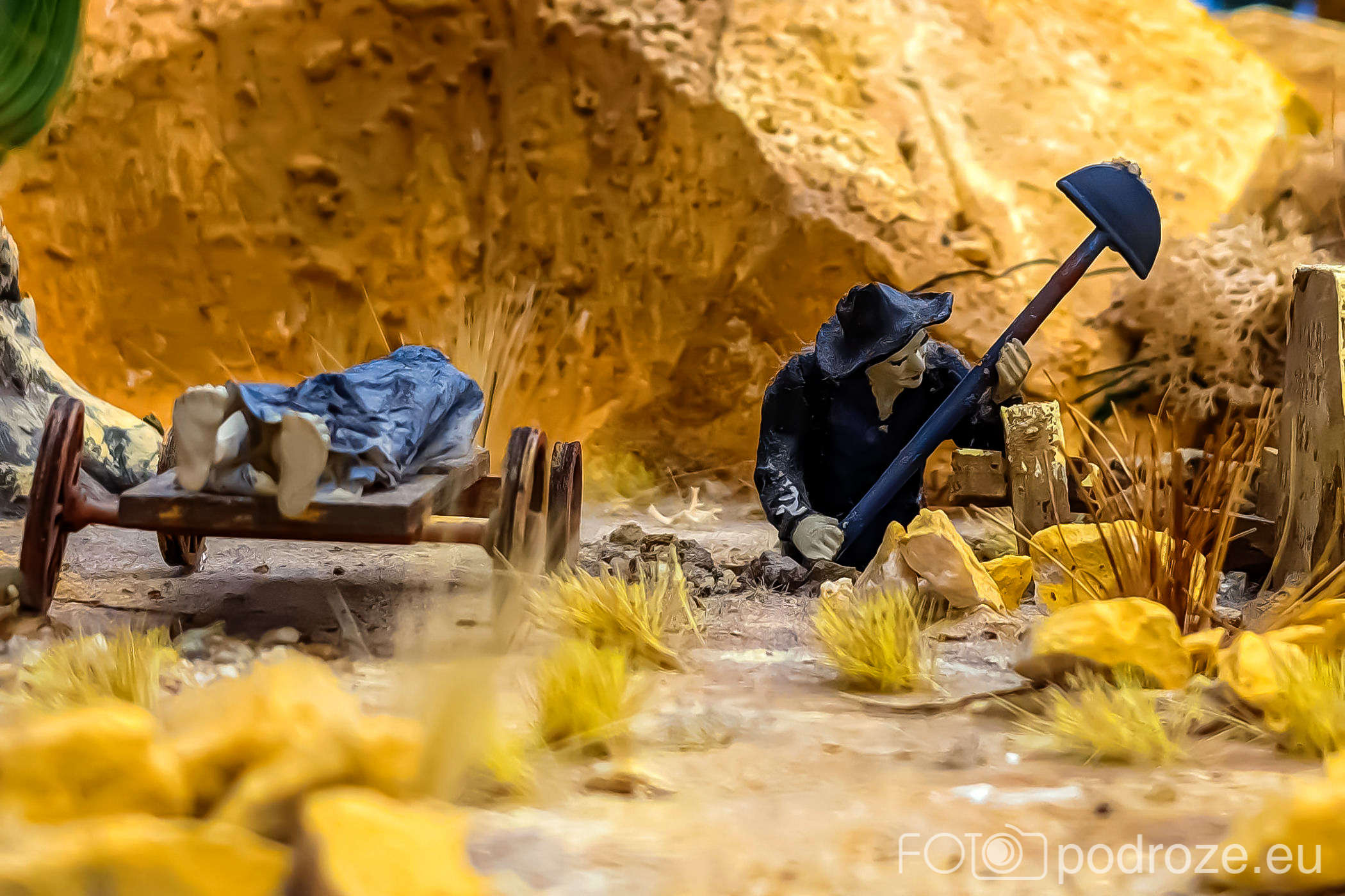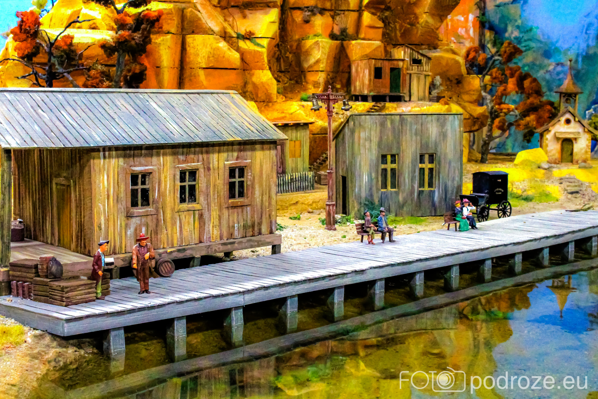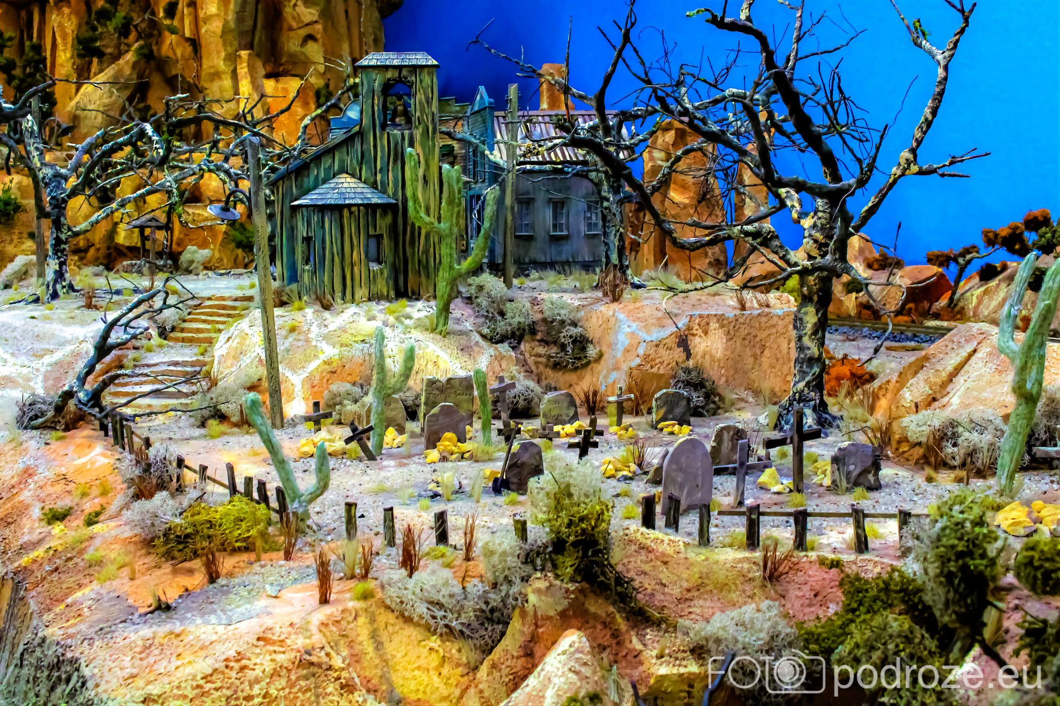 Po prawej stronie całe miasto z Dzikiego Zachodu, jest kopalnia, wioska indiańska, cmentarz .