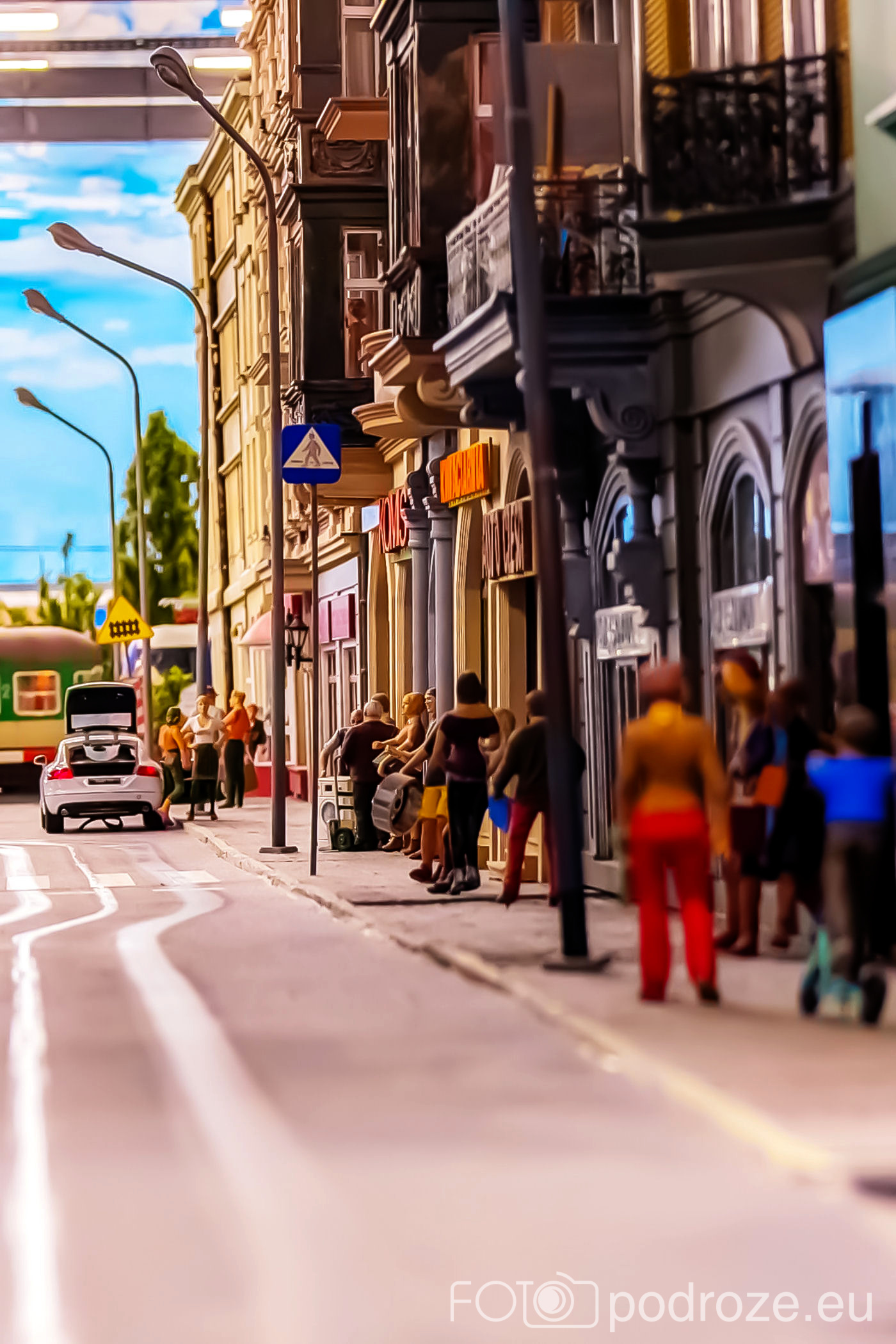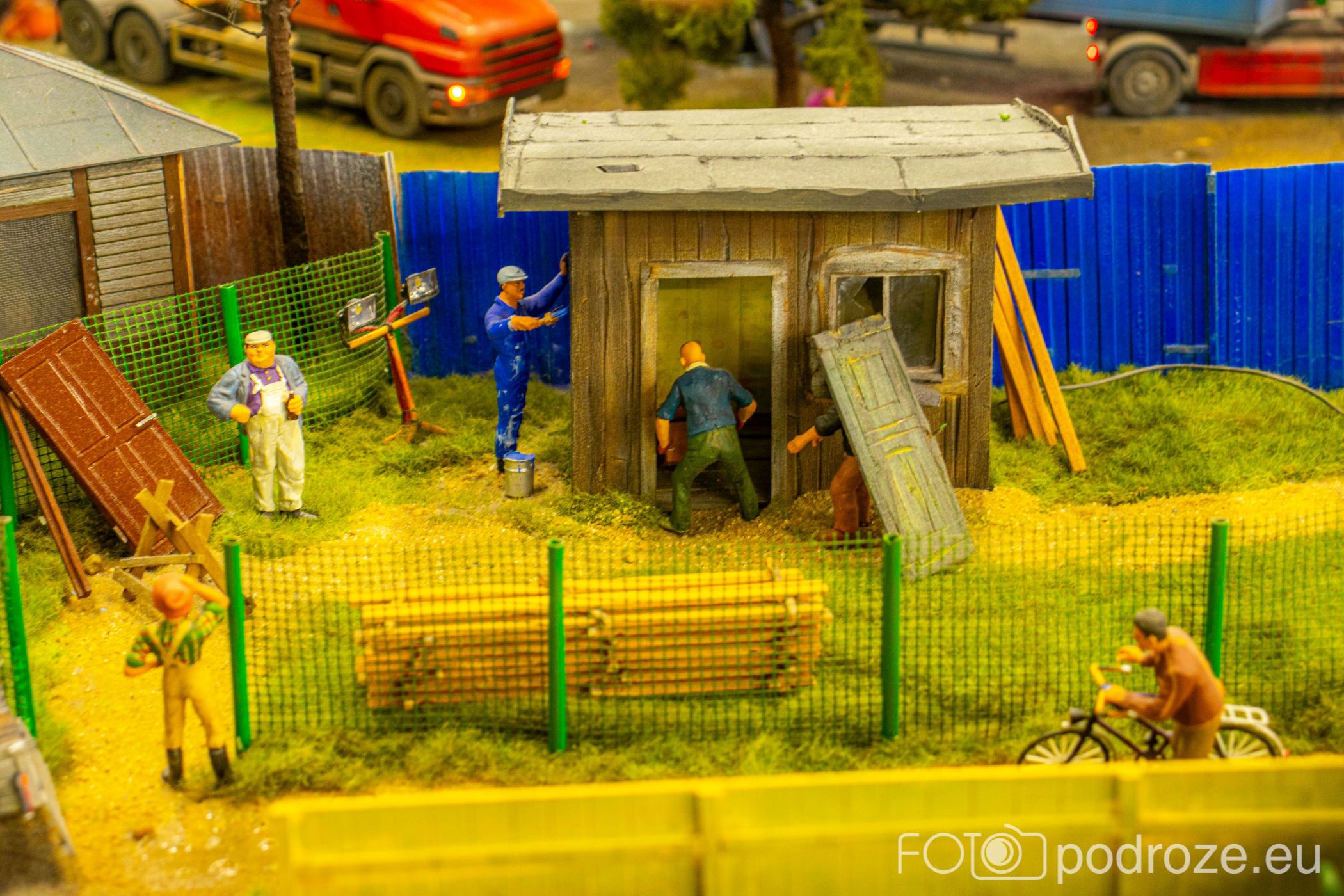 Kolejna makieta przedstawia scenki z różnych terenów. Są tu jakieś warsztaty, fabryczki, jest supersam i typowy polski blok.