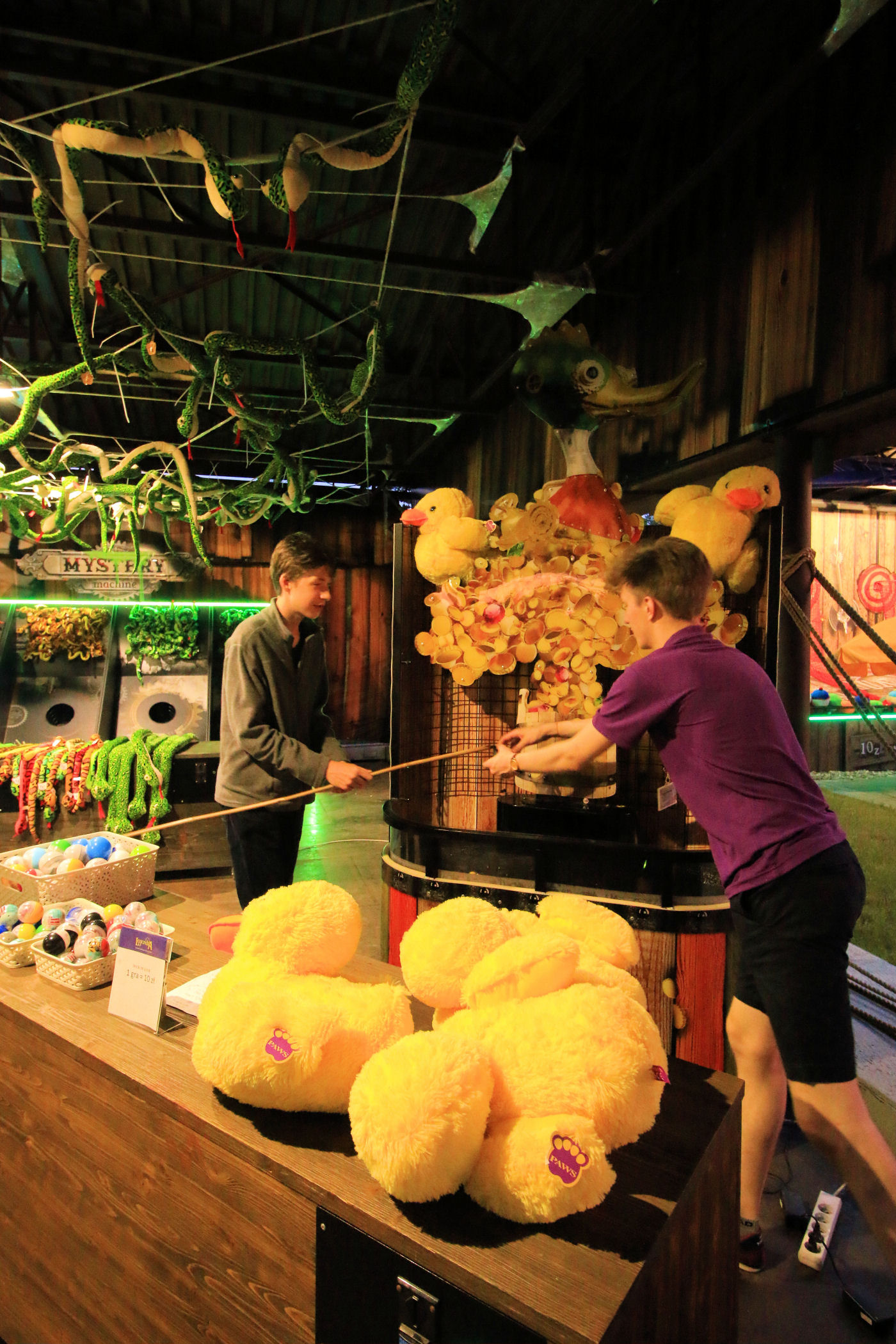 Nie ma tu limitów wiekowych, wszystko znajduje się w zamkniętym pomieszczeniu i kompletnie nie wiemy czego się spodziewać. Przez kilka pomieszczeń dostajemy się w końcu do wagoników, pistolety w dłoń i zaczyna się rodzinna rywalizacja – kto ustrzeli więcej potworków. Przygoda zaczyna się w pokoju Gildii Łowców Potworów, potem jedziemy przez starą wieś, mroczne jaskinie, lasy i ruiny. Oczywiście wygrywamy.